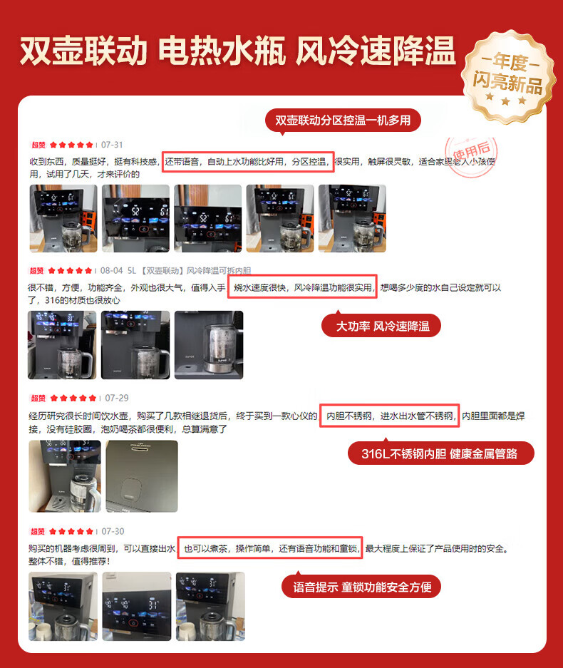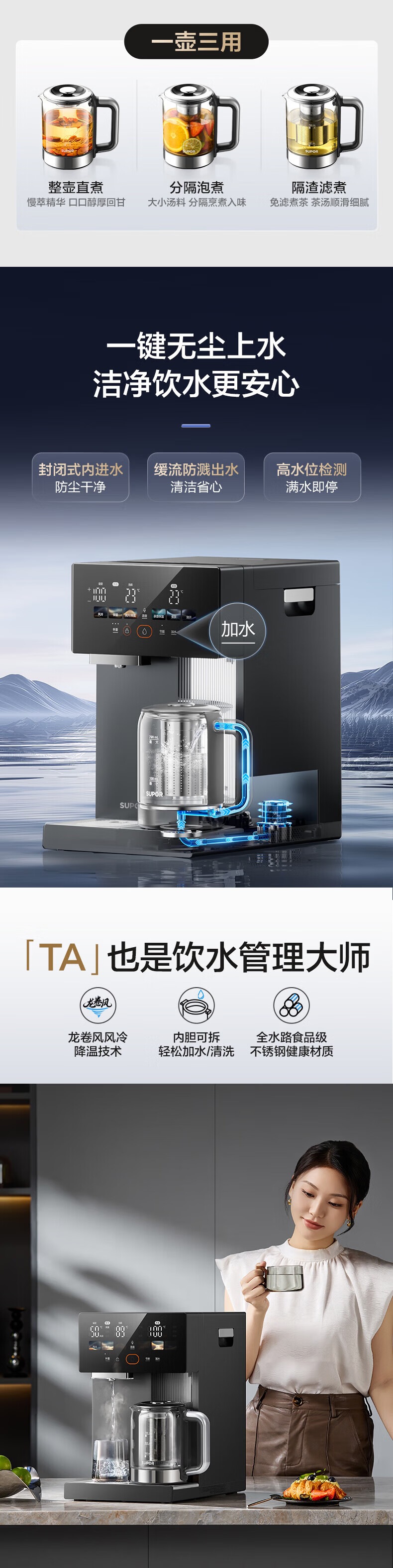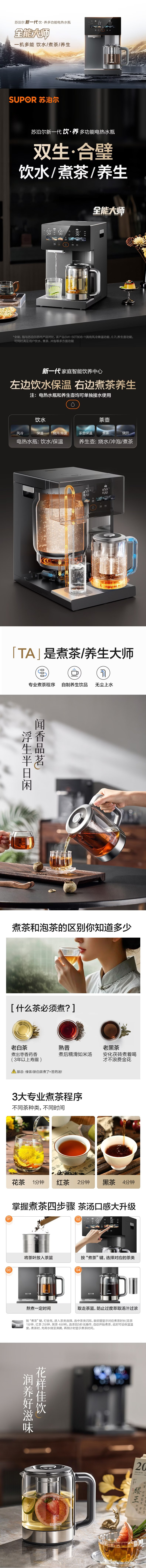苏泊尔(SUPOR)全能大师pro电热水瓶5L家用大容量电热水壶养生壶保温壶调奶器四合一 风冷饮水机316L可拆内胆 5L 【饮水/煮茶/养生】内胆可拆+风冷降温