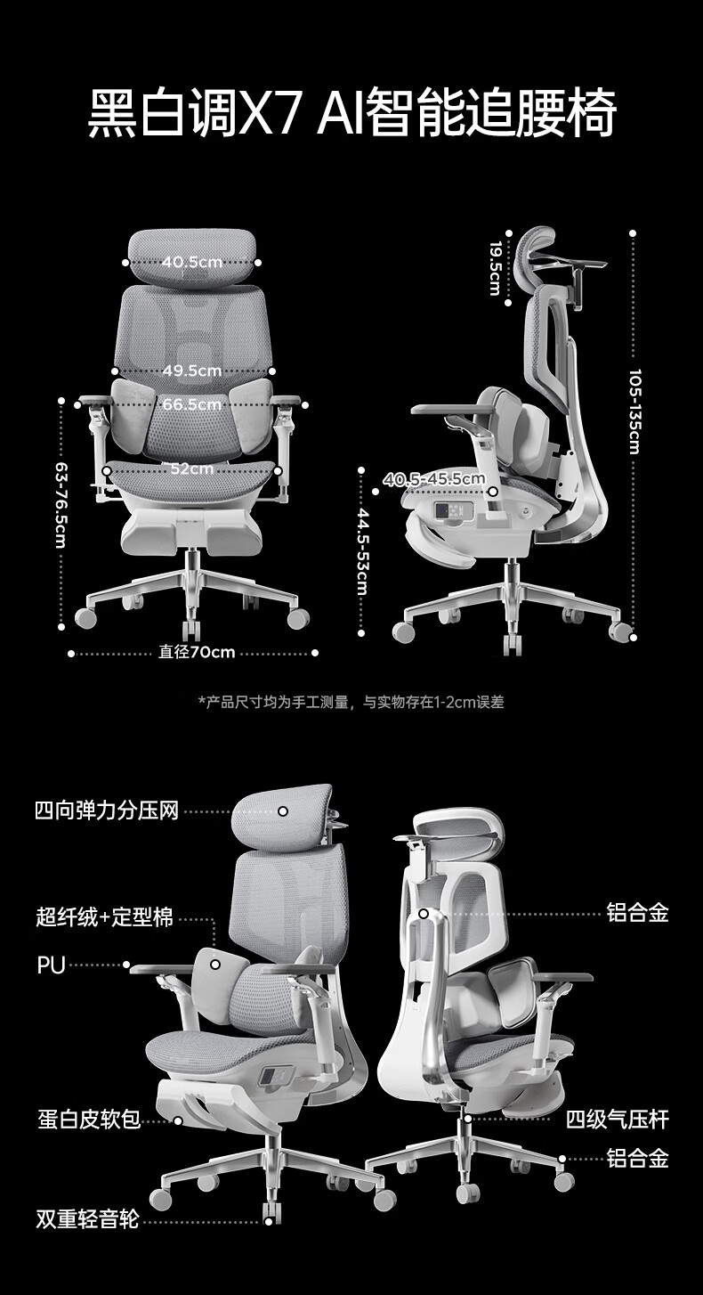 黑白调X7人体工学椅电脑椅办公椅人工力学座椅按摩加热AI智能追腰