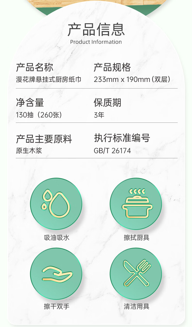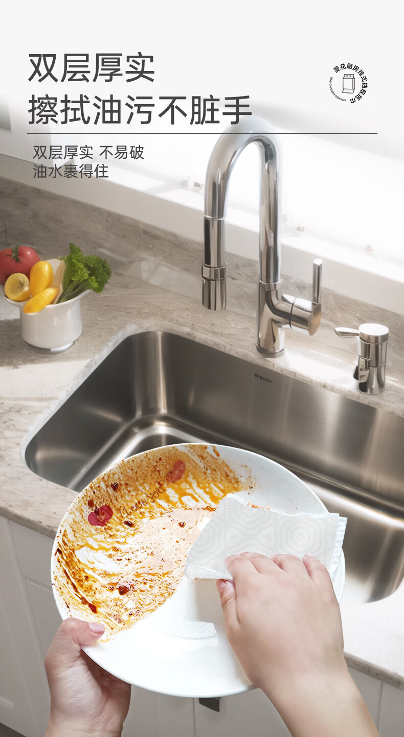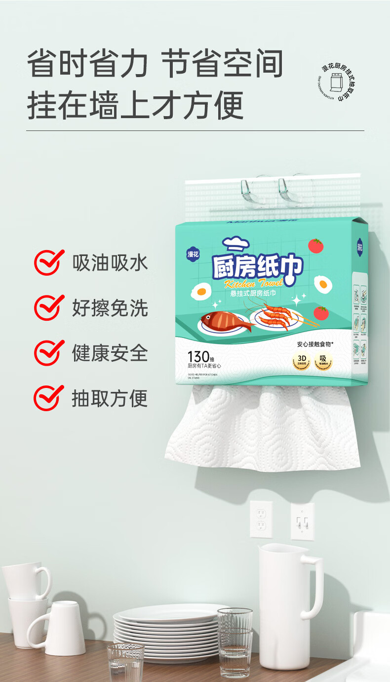 漫花厨房用纸悬挂式厨房纸巾抽纸吸油吸水加大加厚大包一次性厨房纸 【绿色】 2层 130抽*3提
