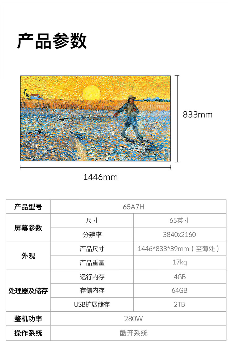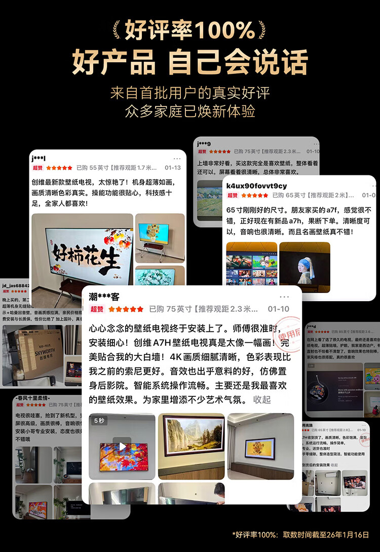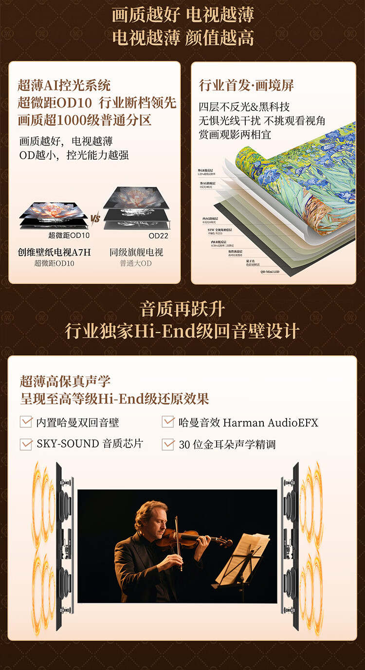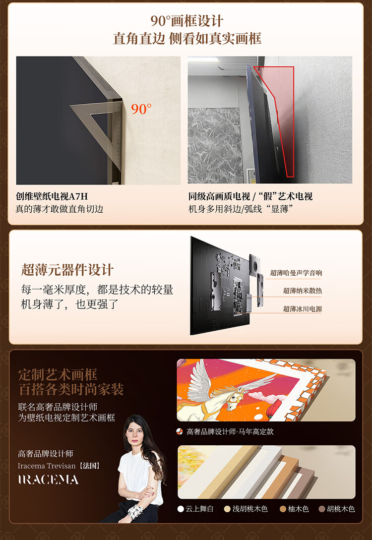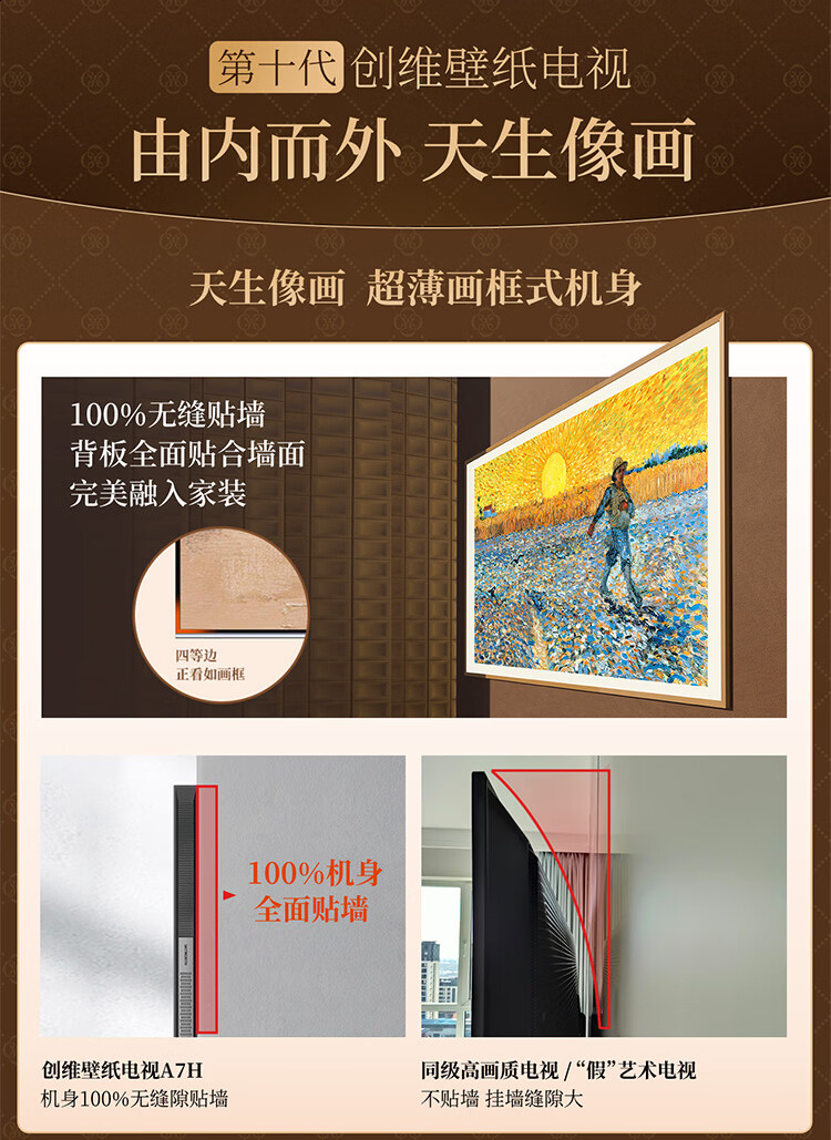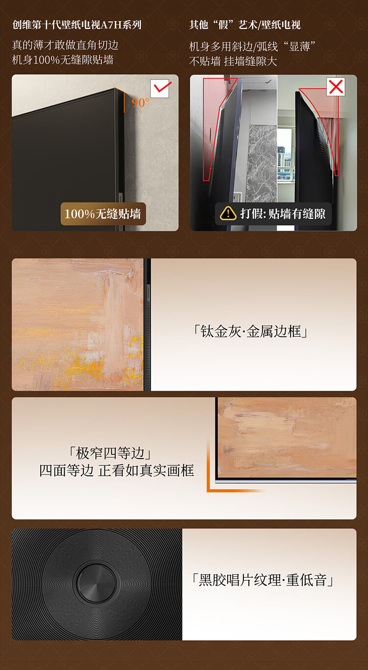 创维壁纸电视65A7H 国家补贴 26年新品艺术电视A7F升级款 MiniLED 超薄无缝贴墙 65吋电视【免费安装】 65英寸