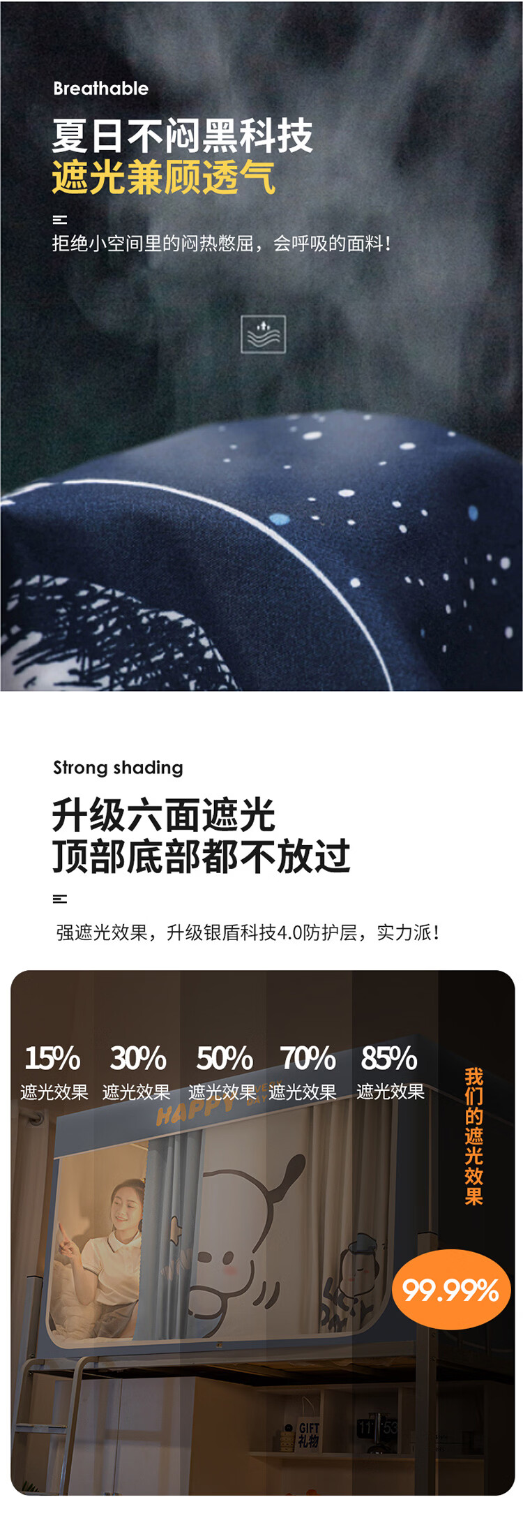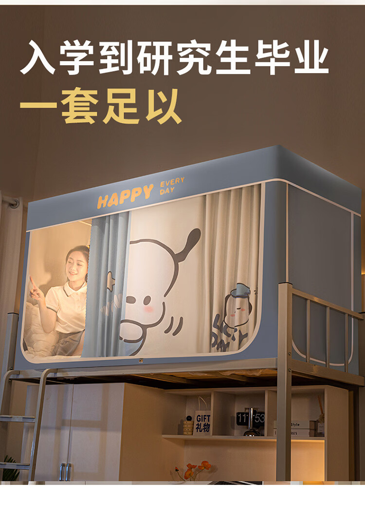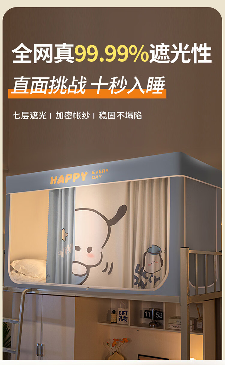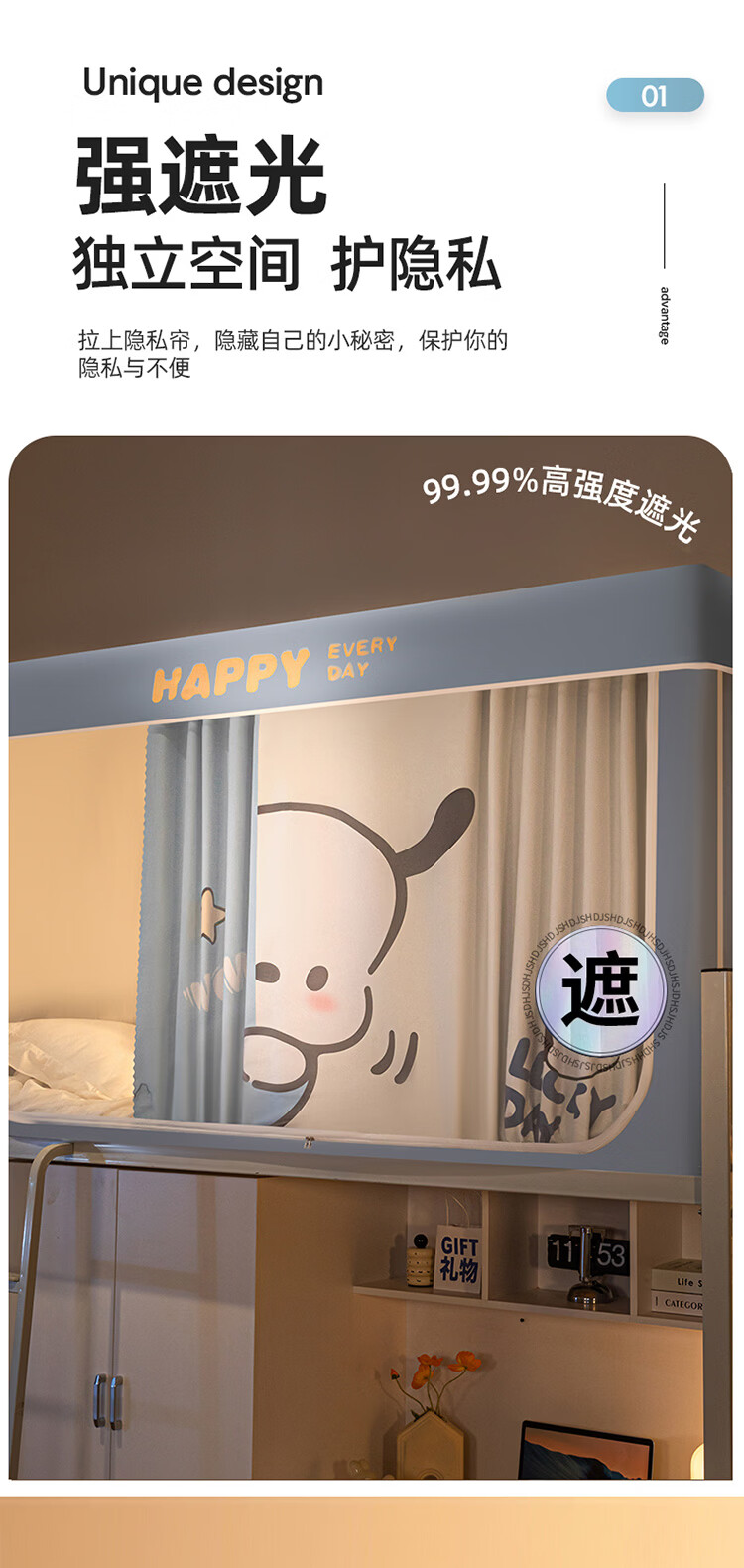 无印良品学生宿舍遮光床帘蚊帐一体式全包围上下铺遮挡帘免安装隐私帘窗帘 COLL狗【超强遮光 保护隐私】 90cm*190cm 上铺自连接支架