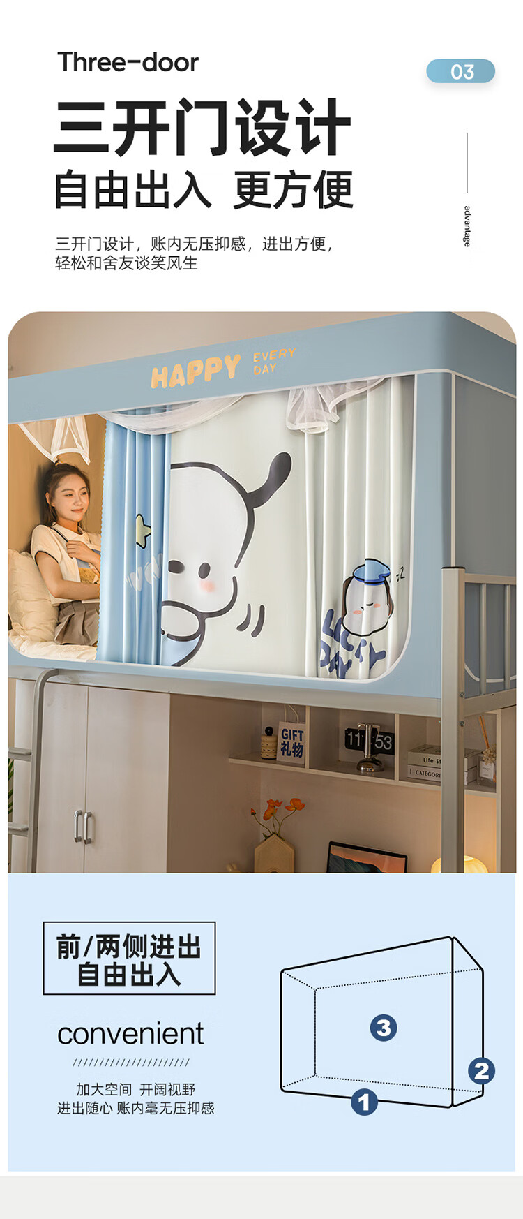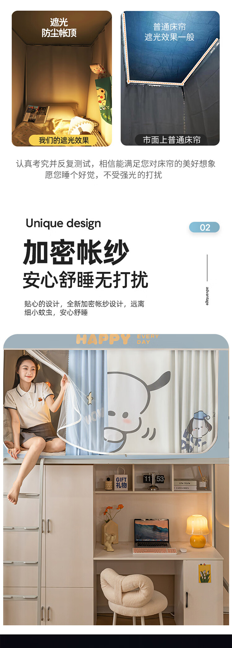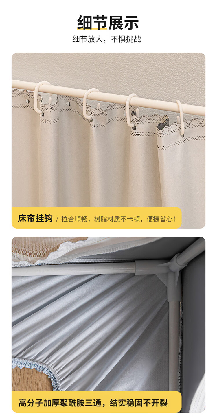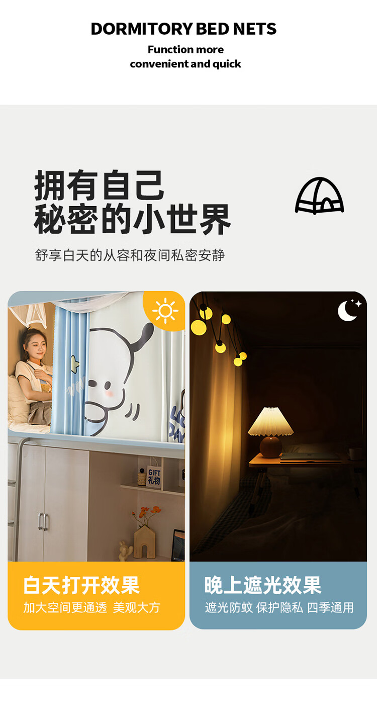 无印良品学生宿舍遮光床帘蚊帐一体式全包围上下铺遮挡帘免安装隐私帘窗帘 COLL狗【超强遮光 保护隐私】 90cm*190cm 上铺自连接支架