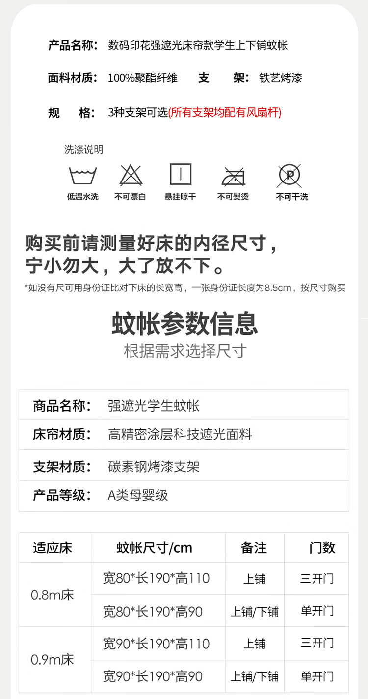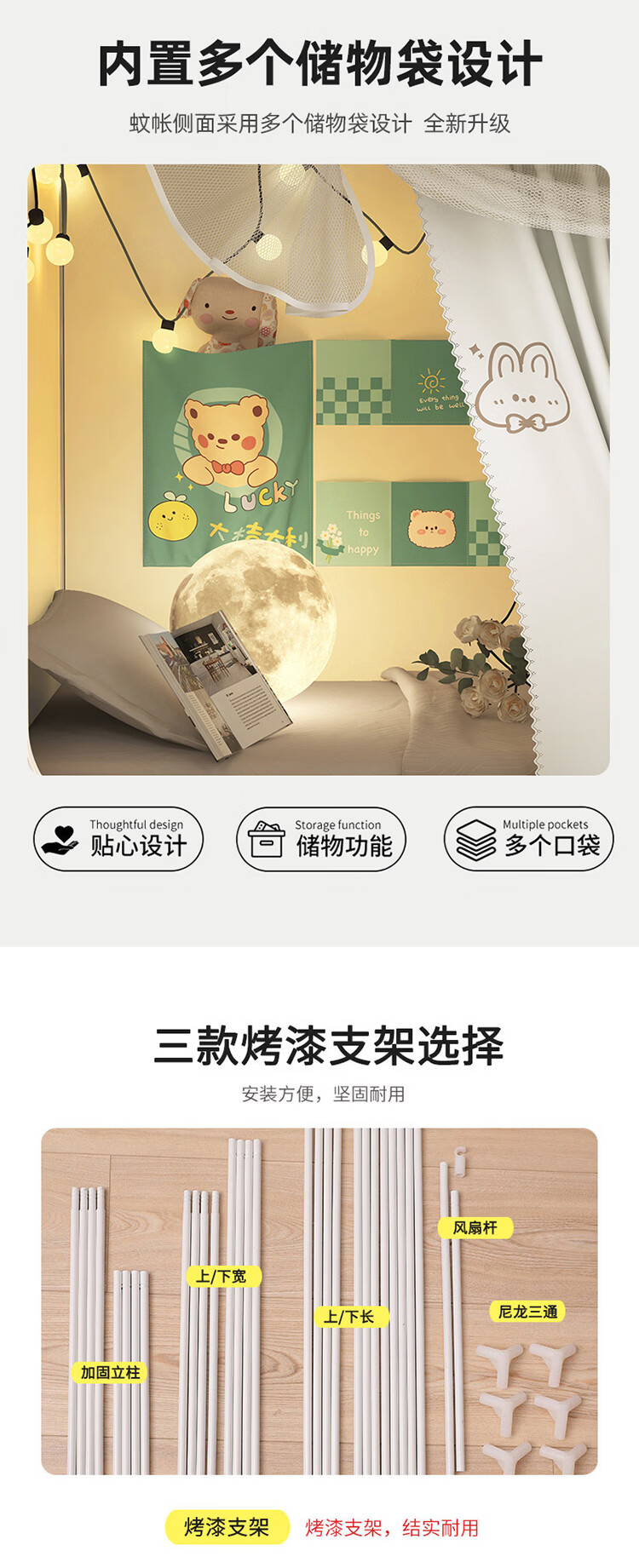 蜜乐暖学生宿舍蚊帐单人床0.9x1.9m上下铺防摔防蚊免安装家用老式蚊帐架 白色【加密帐纱 赠送帐钩+帐绳+绑带】 宽90长190高160cm【0.9米床 上下铺通用】