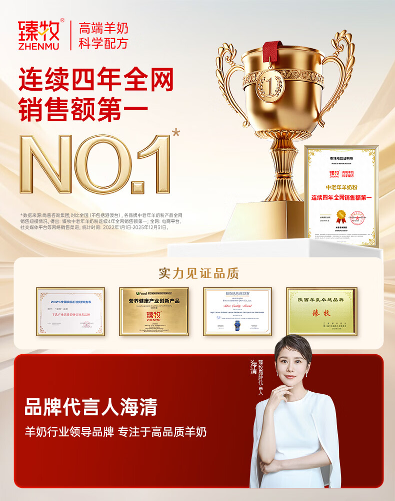 臻牧(zhenmu)中老年无蔗糖高钙羊奶粉营养粉独立条装1.25kg