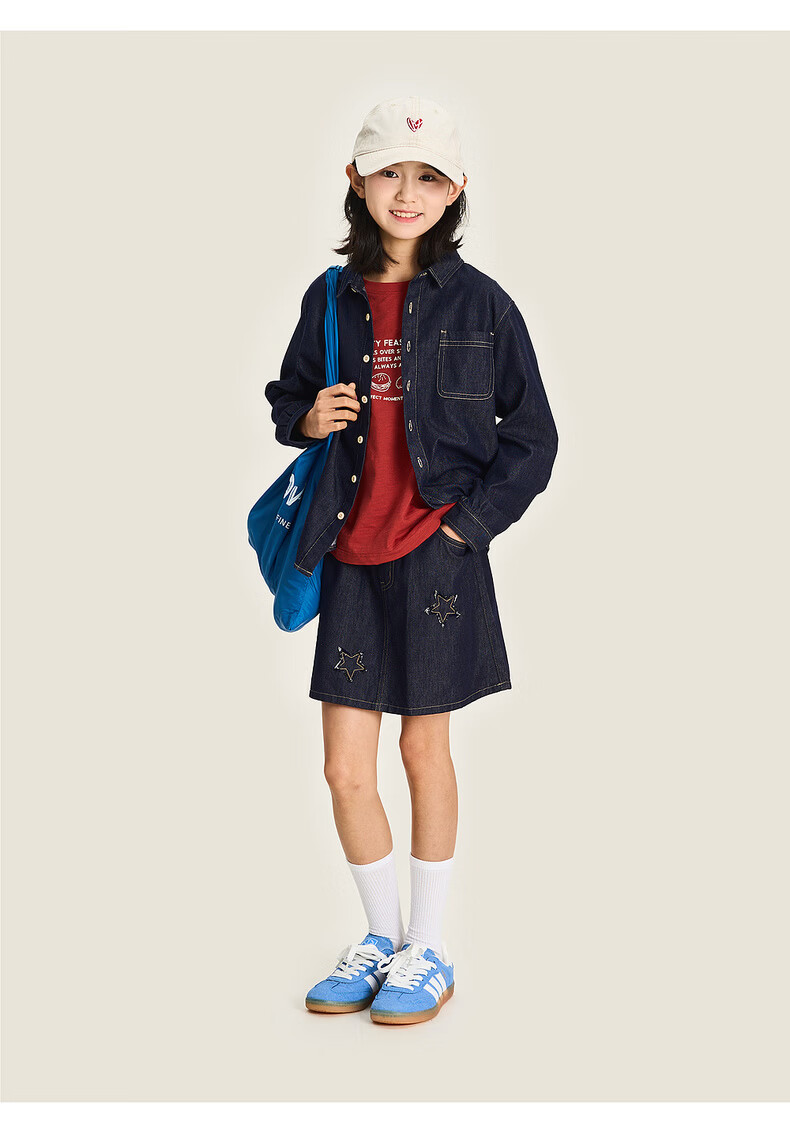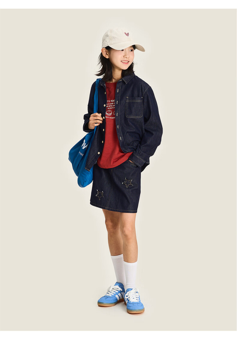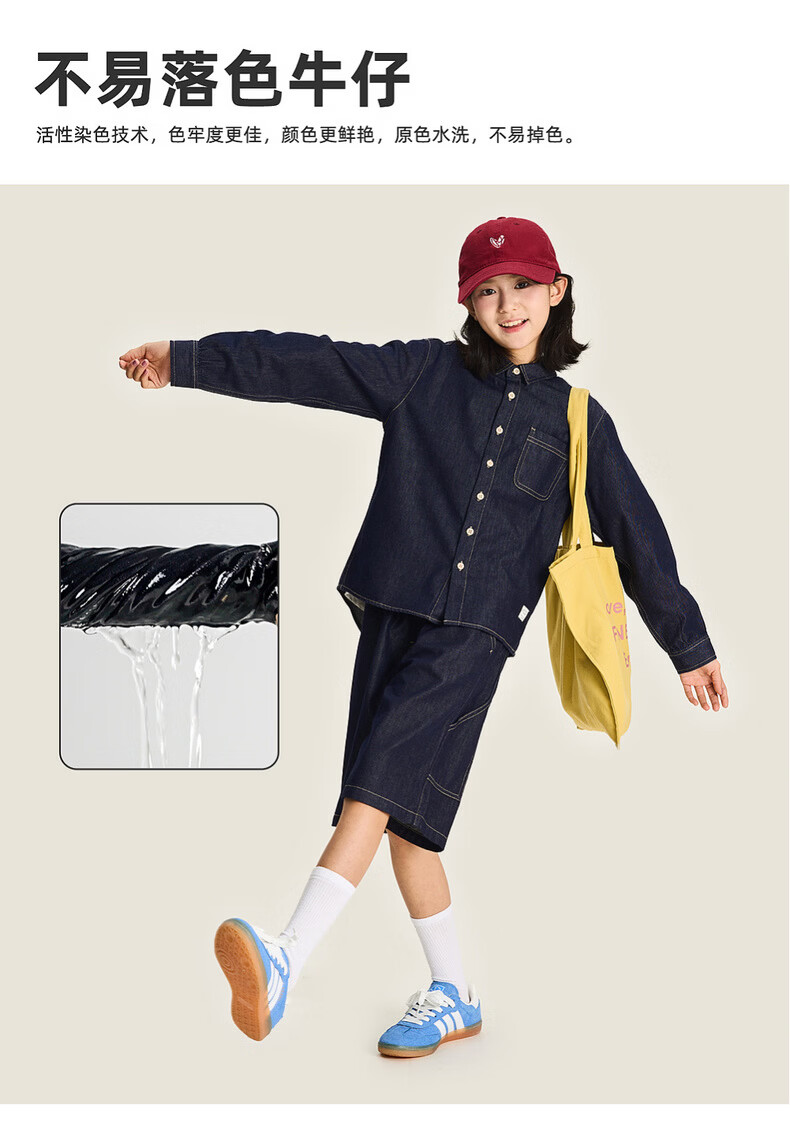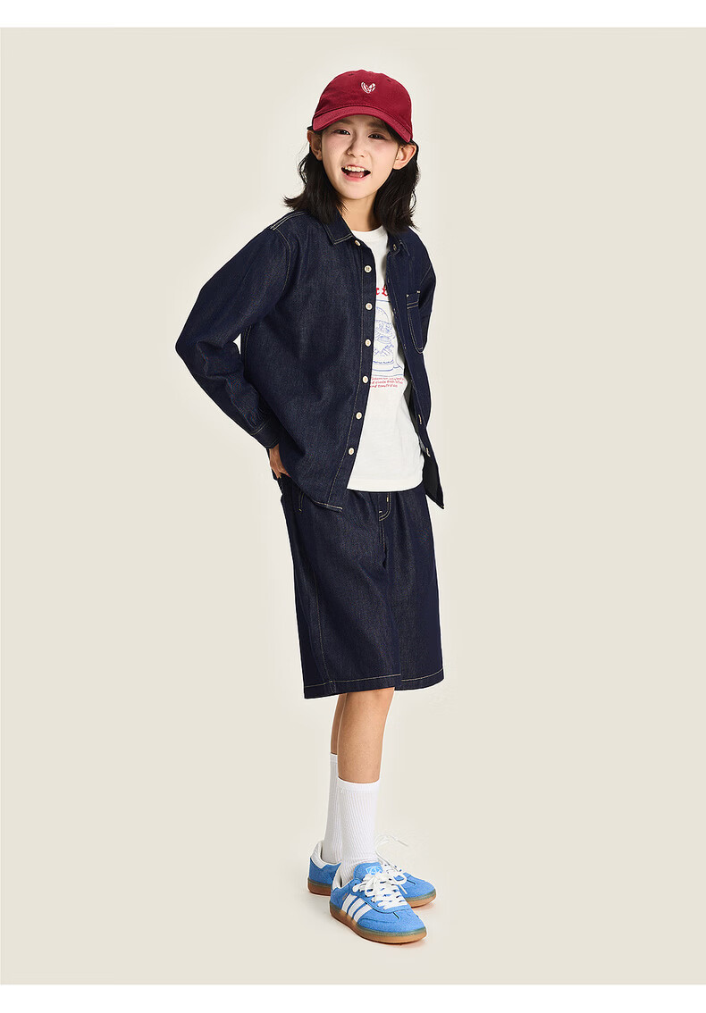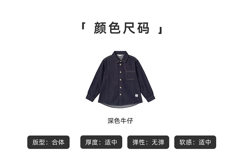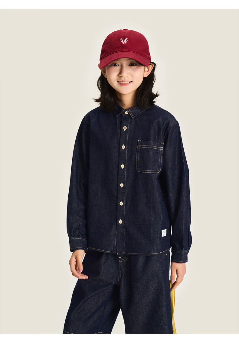 棉叔叔【醋酸牛仔长袖衬衫】棉叔叔男童不易落色牛仔衬衫女童外套3.18 深色牛仔 120 120