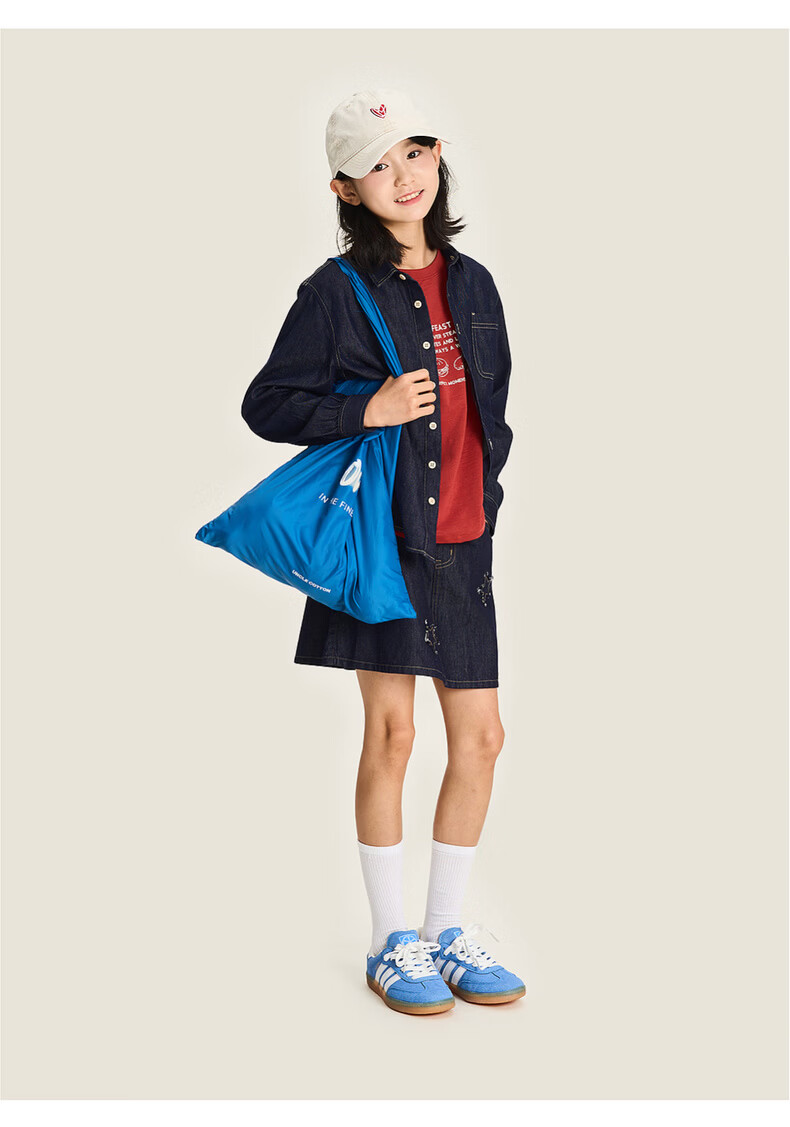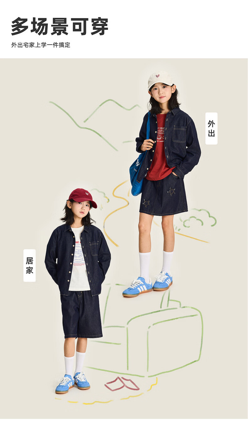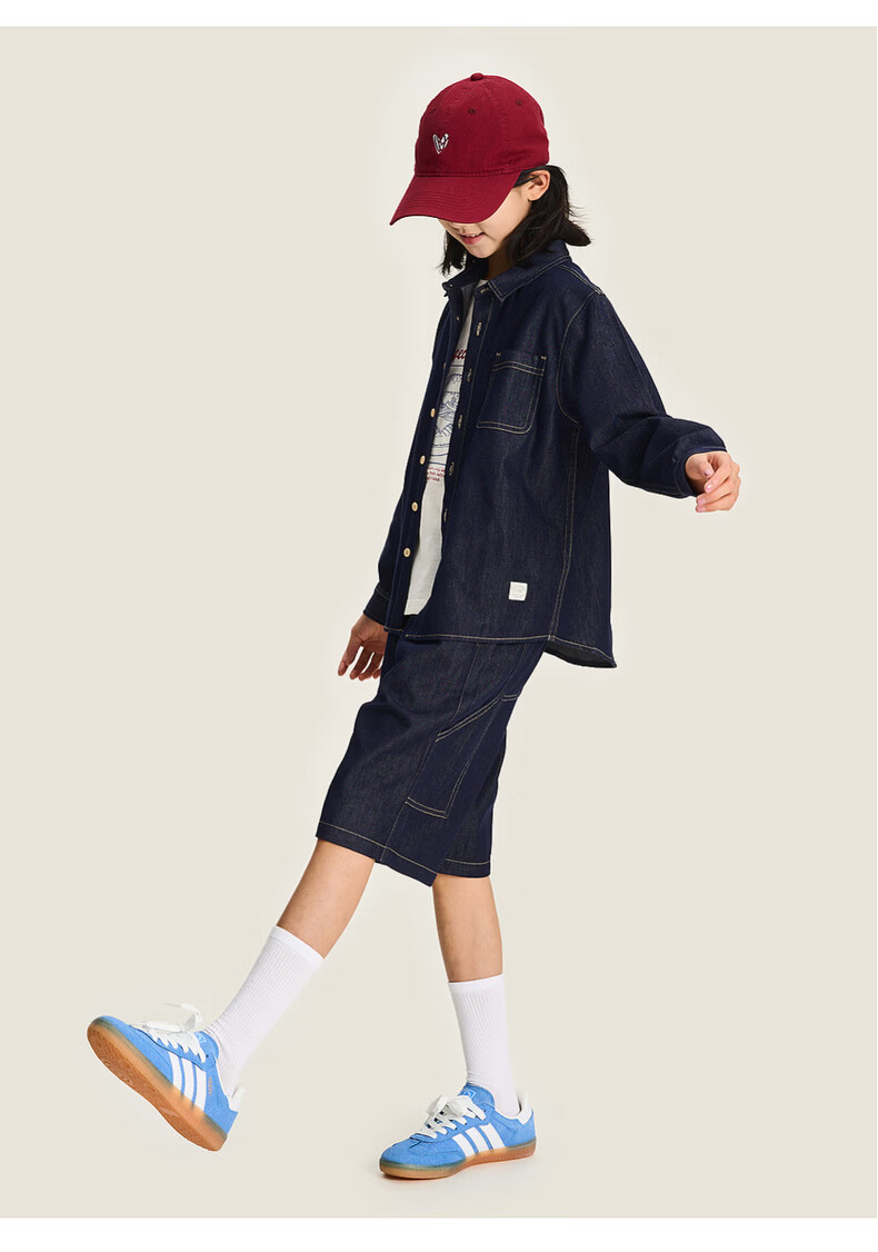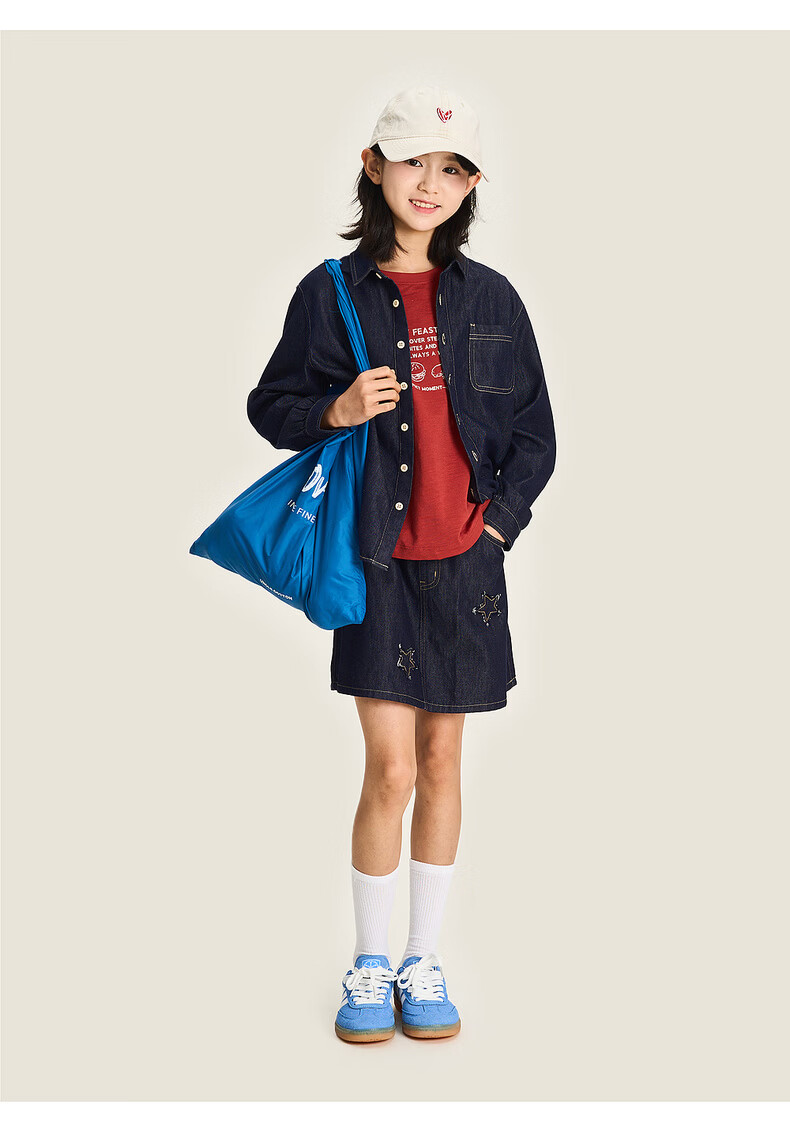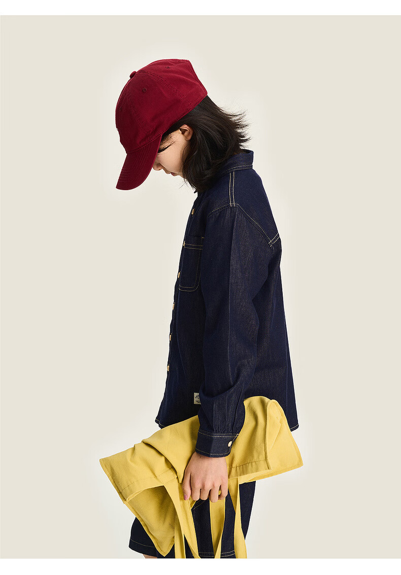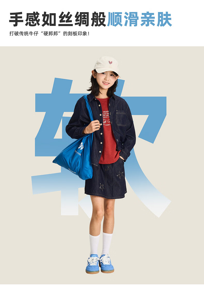 棉叔叔【醋酸牛仔长袖衬衫】棉叔叔男童不易落色牛仔衬衫女童外套3.18 深色牛仔 120 120