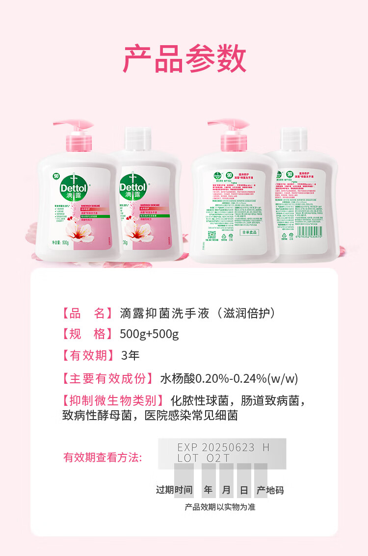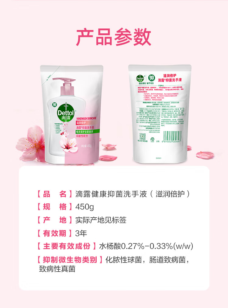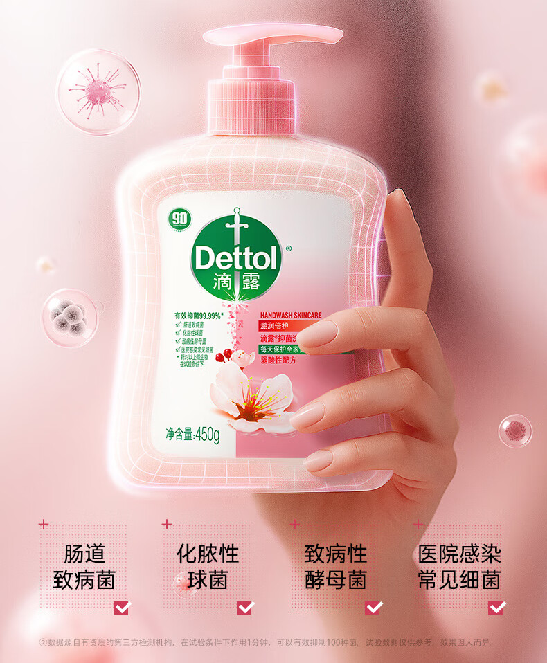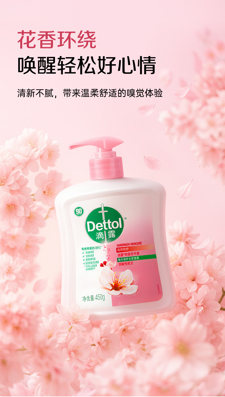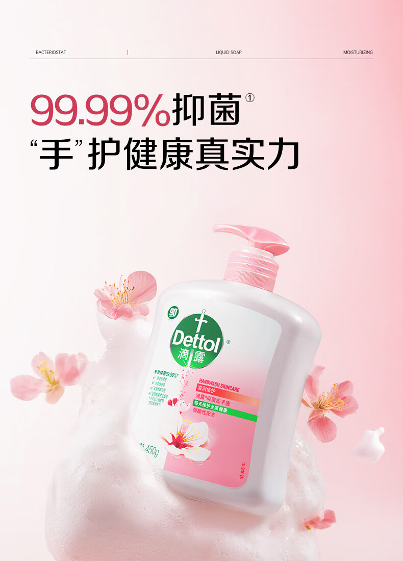 滴露健康抑菌洗手液滋润倍护 儿童成人通用家庭组合清洁套装洗手液 滋润+松木450g*4