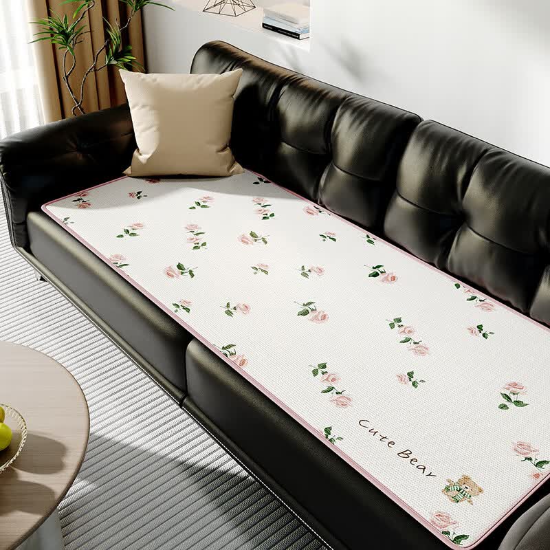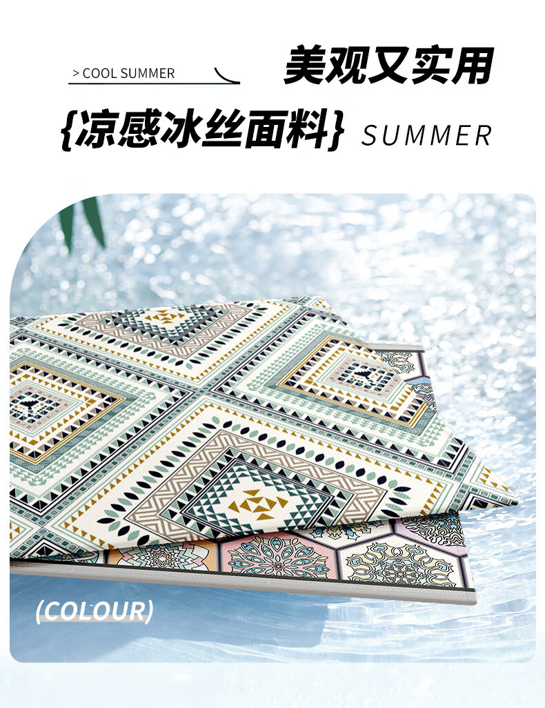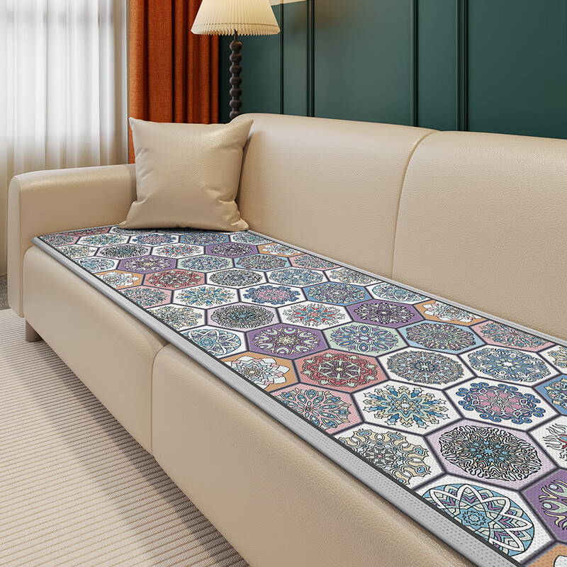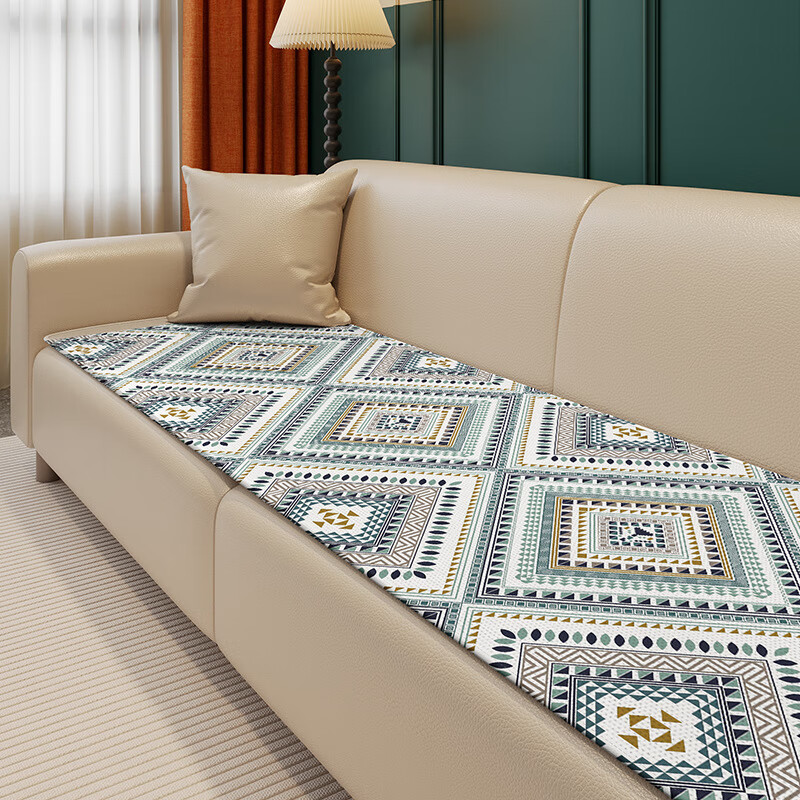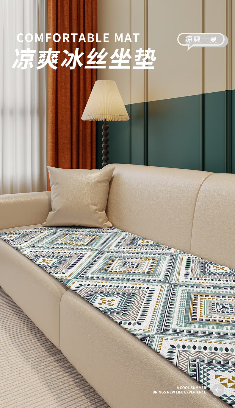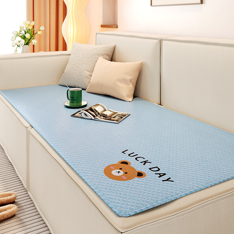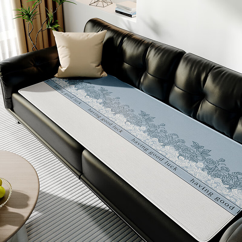 鹿婕夏天冰丝沙发垫凉感坐垫防滑凉席垫直排透气沙发座垫可定制尺寸 冰丝沙发垫-萨日胜地 80x210cm(约0.6cm厚)
