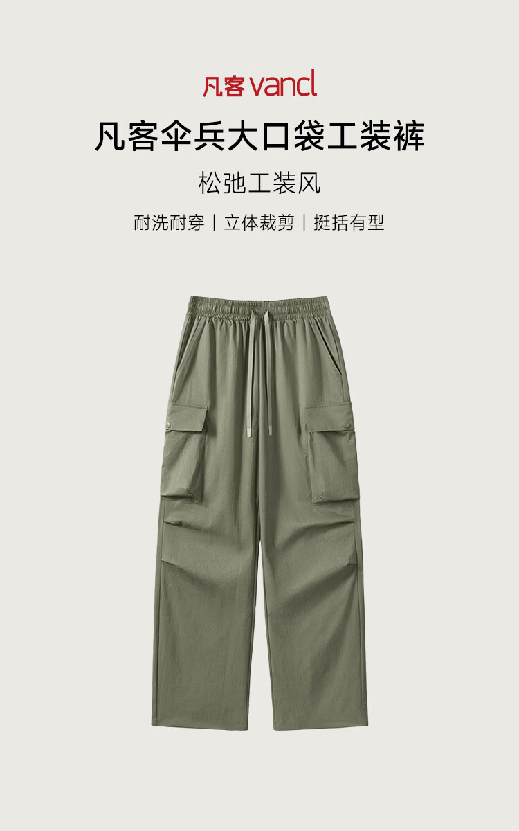 凡客诚品(VANCL)凡客春夏季新款伞兵大口袋工装裤直筒宽松休闲运动裤卫裤 黑色 M