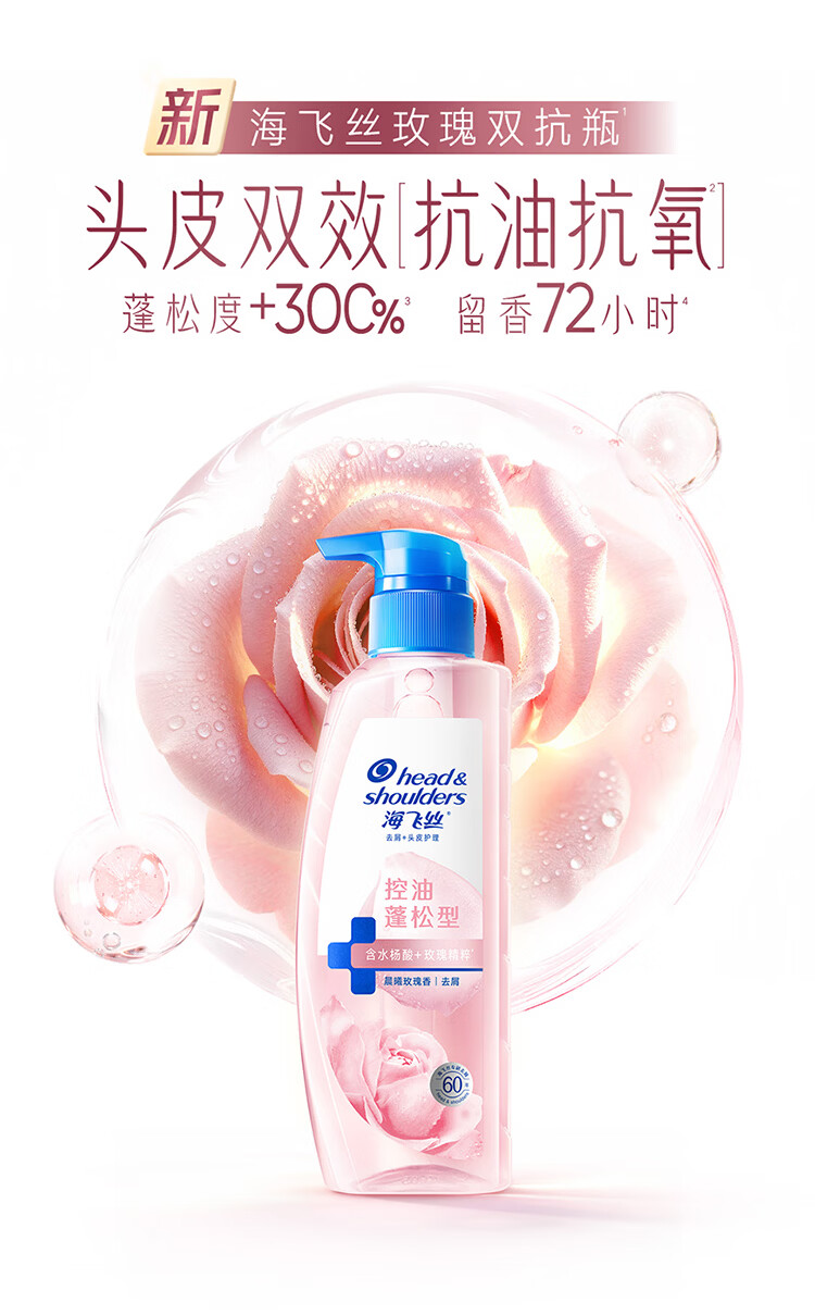 海飞丝玫瑰双抗洗发水670g控油蓬松香氛去屑男女士水杨酸洗头膏头皮肌底
