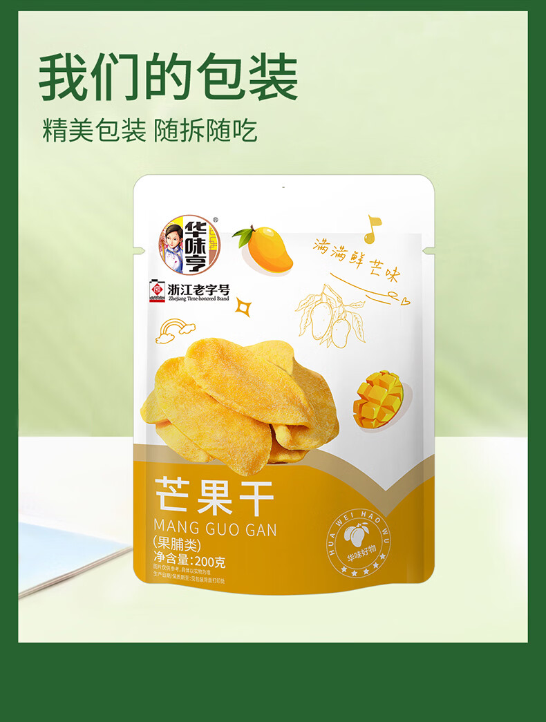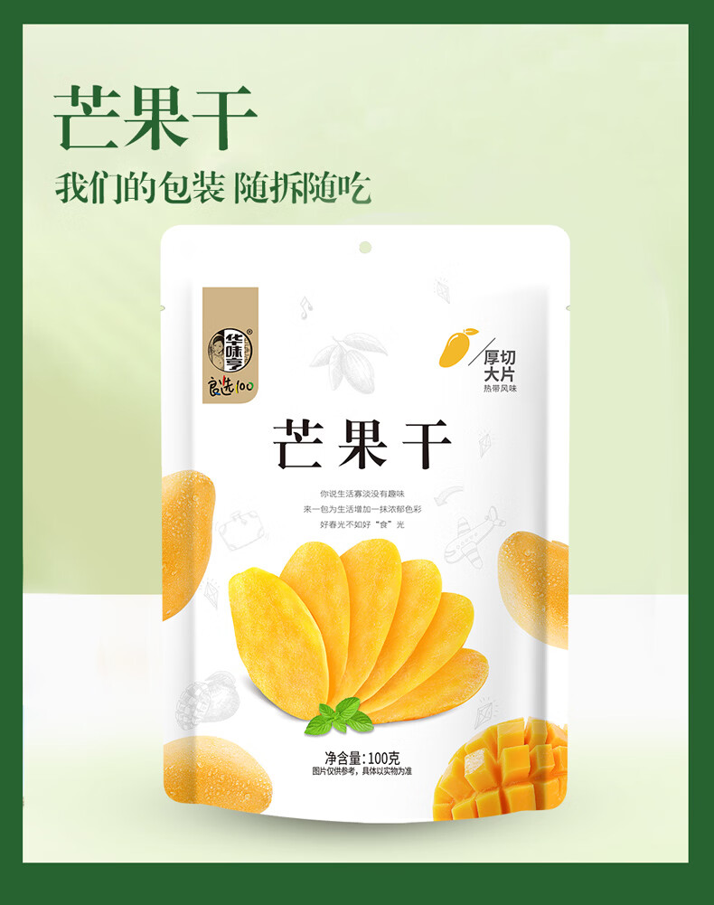 华味亨芒果干500g 休闲零食蜜饯果干果脯水果干零食家庭聚餐小吃量贩装 100g芒果干*1袋