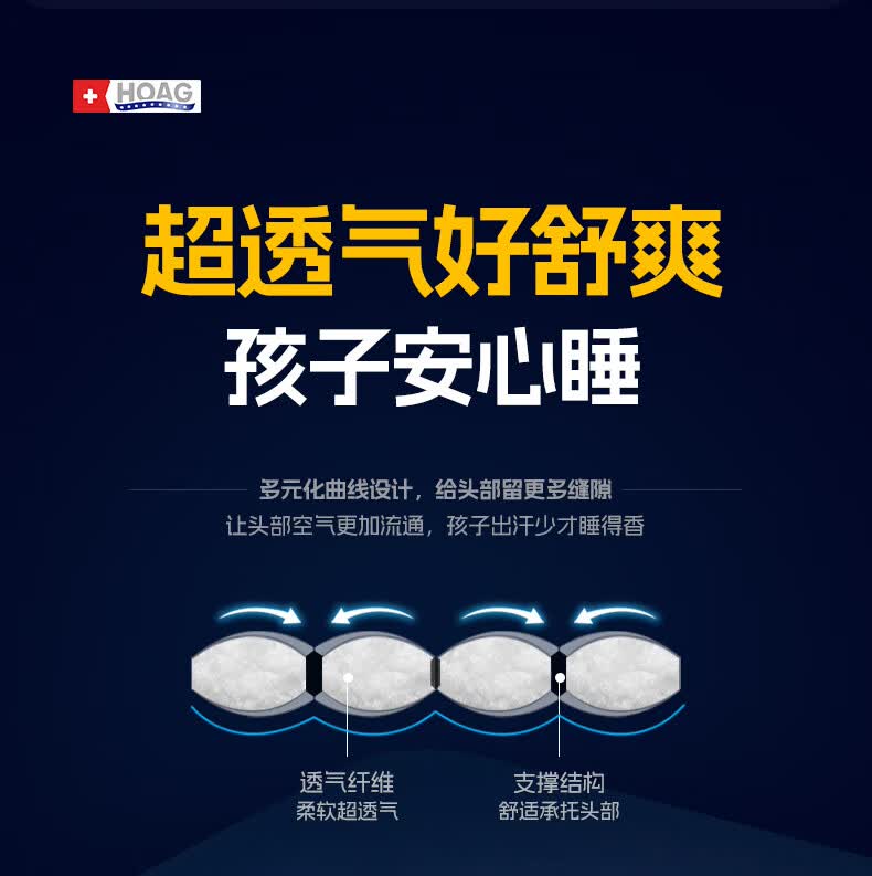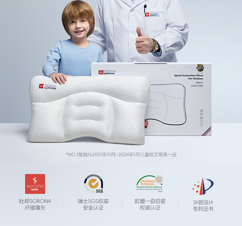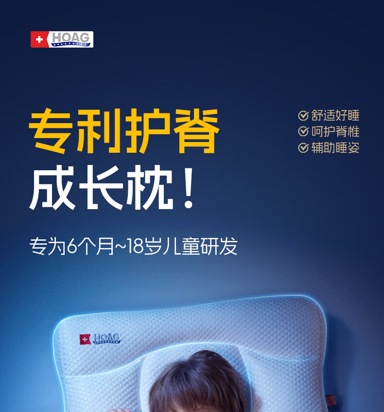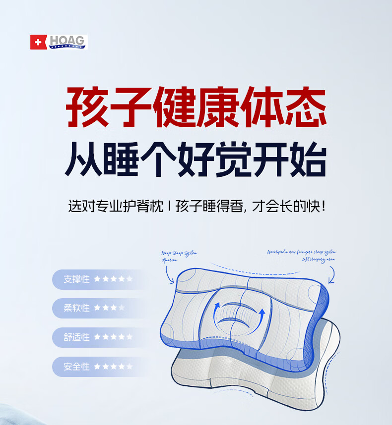 Hoag(霍格)儿童枕头6-12岁孩子青少年专用护颈枕头焕新款H3段