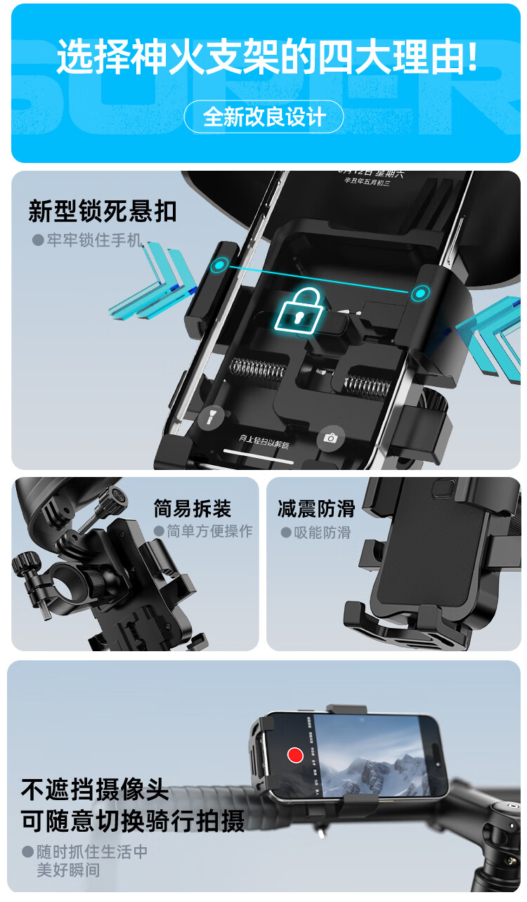 神火(SupFire)电动车手机支架多功能外卖骑手专用电瓶车自行车公路骑行车载导航