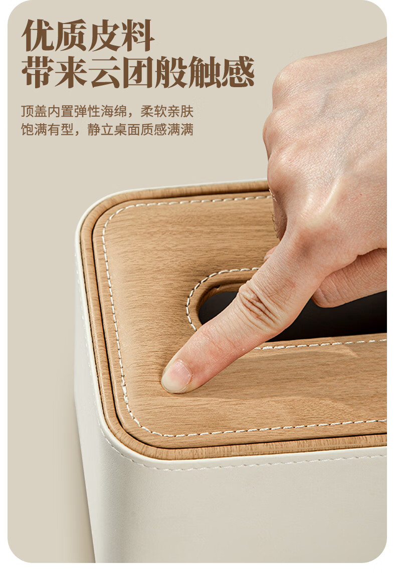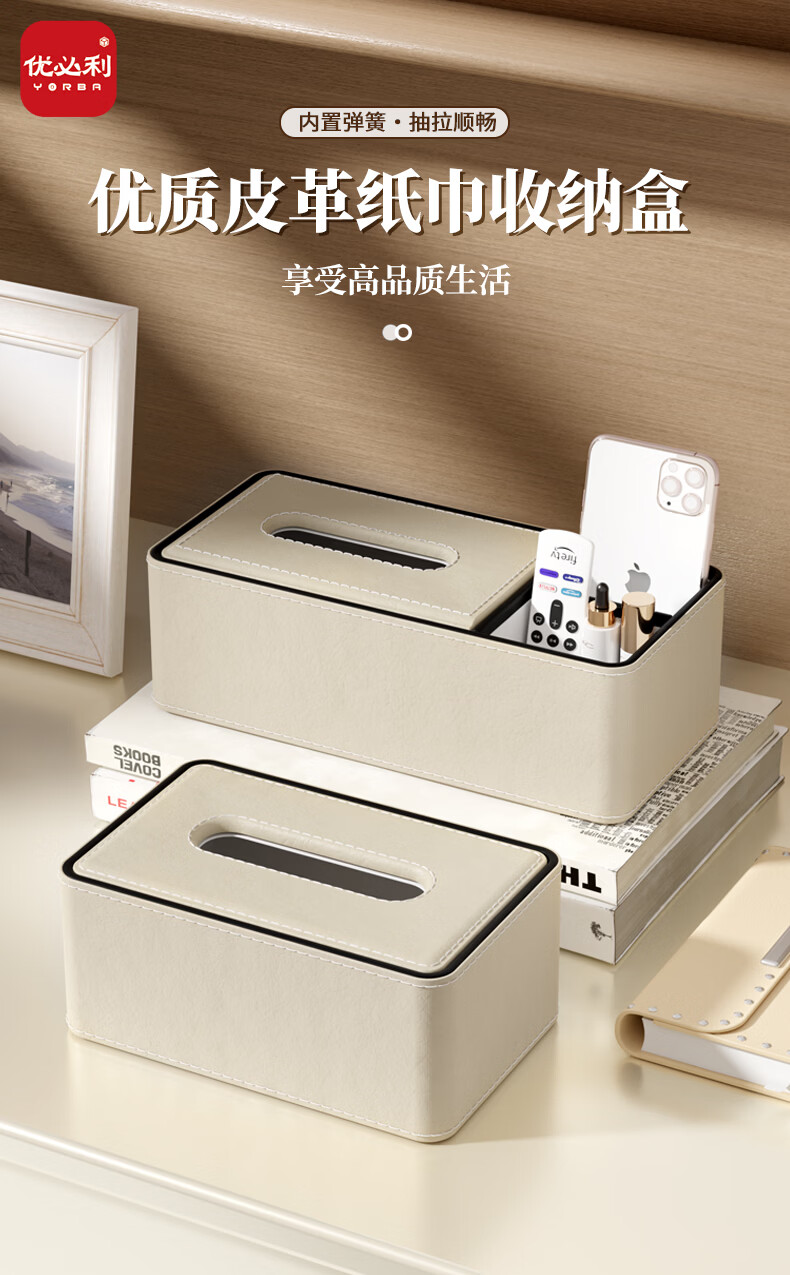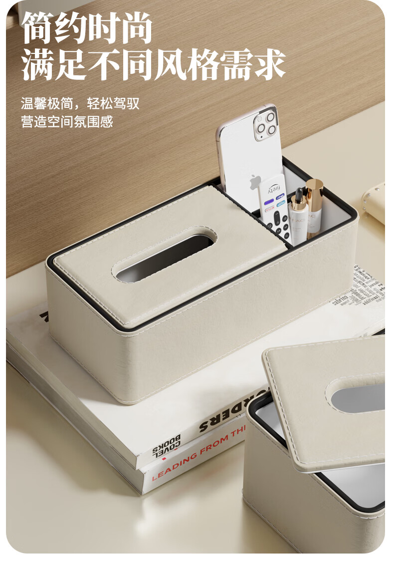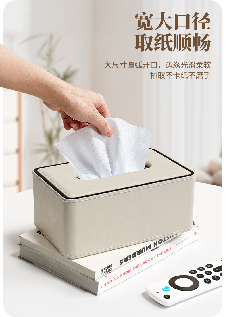 优必利纸巾盒皮质抽纸多功能高级感桌面 圆角款黑色线条款9183