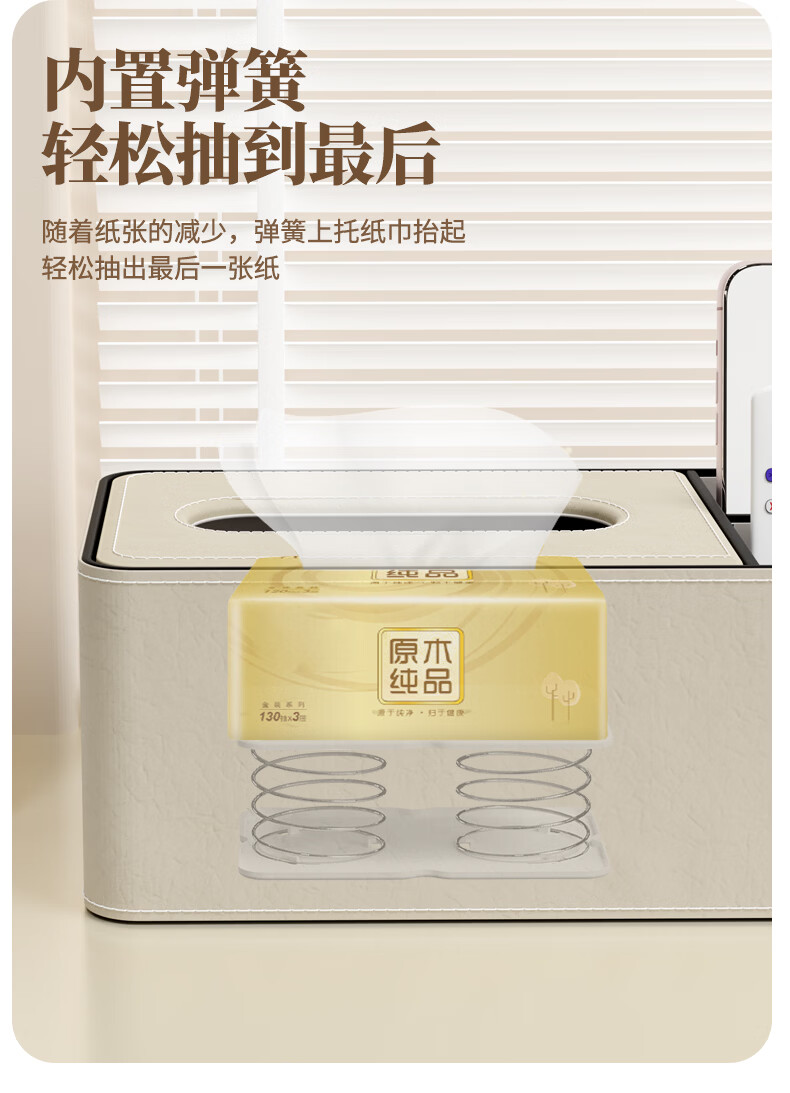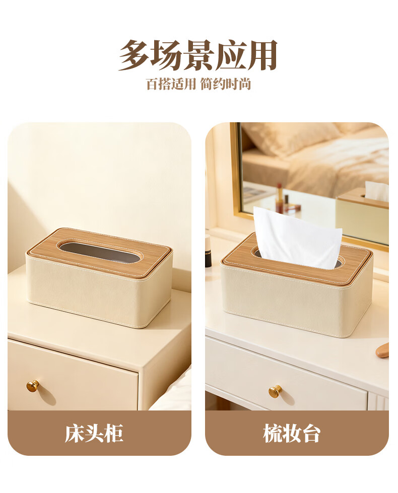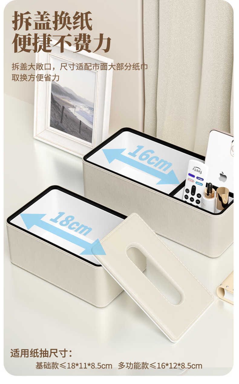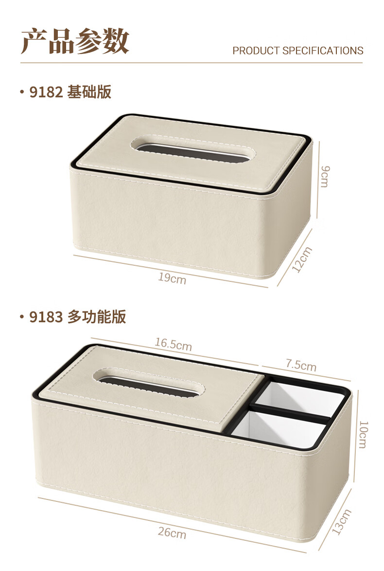 优必利纸巾盒皮质抽纸多功能高级感桌面 圆角款黑色线条款9183
