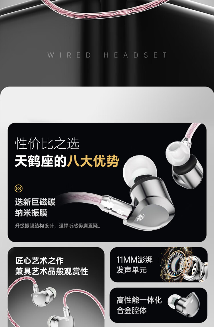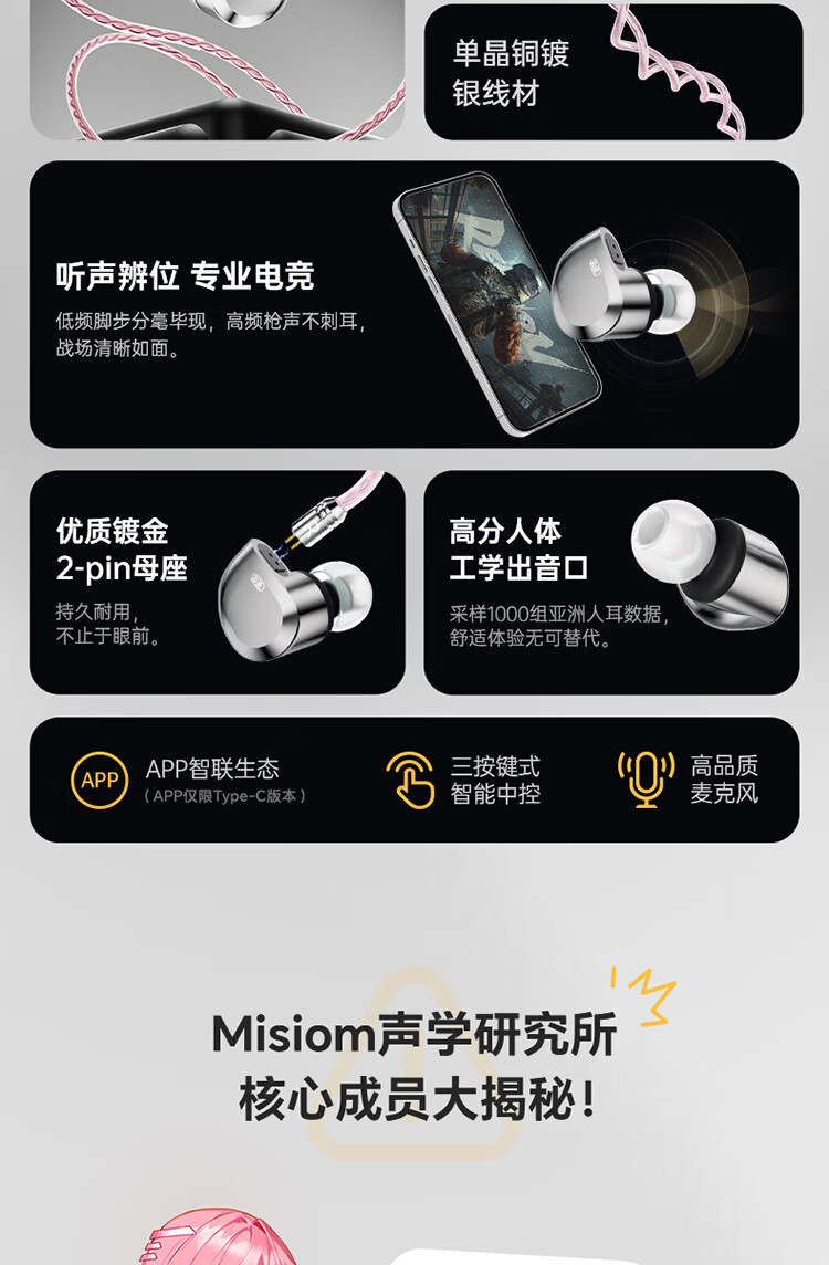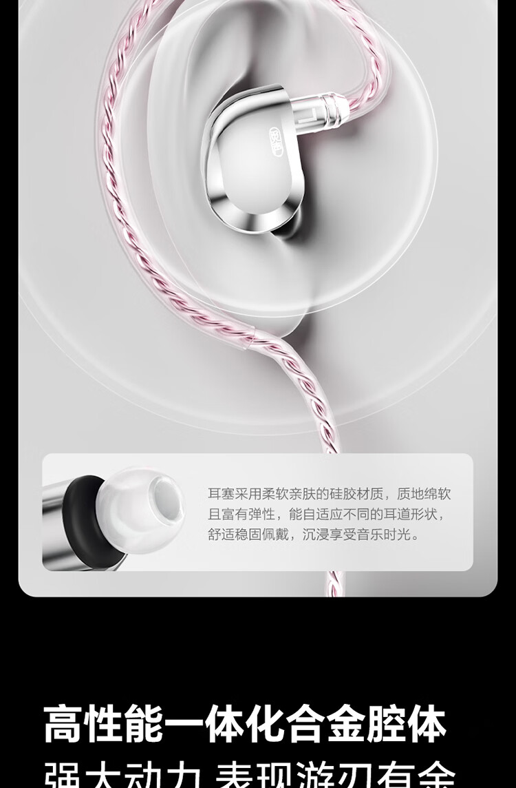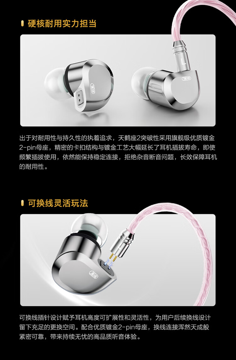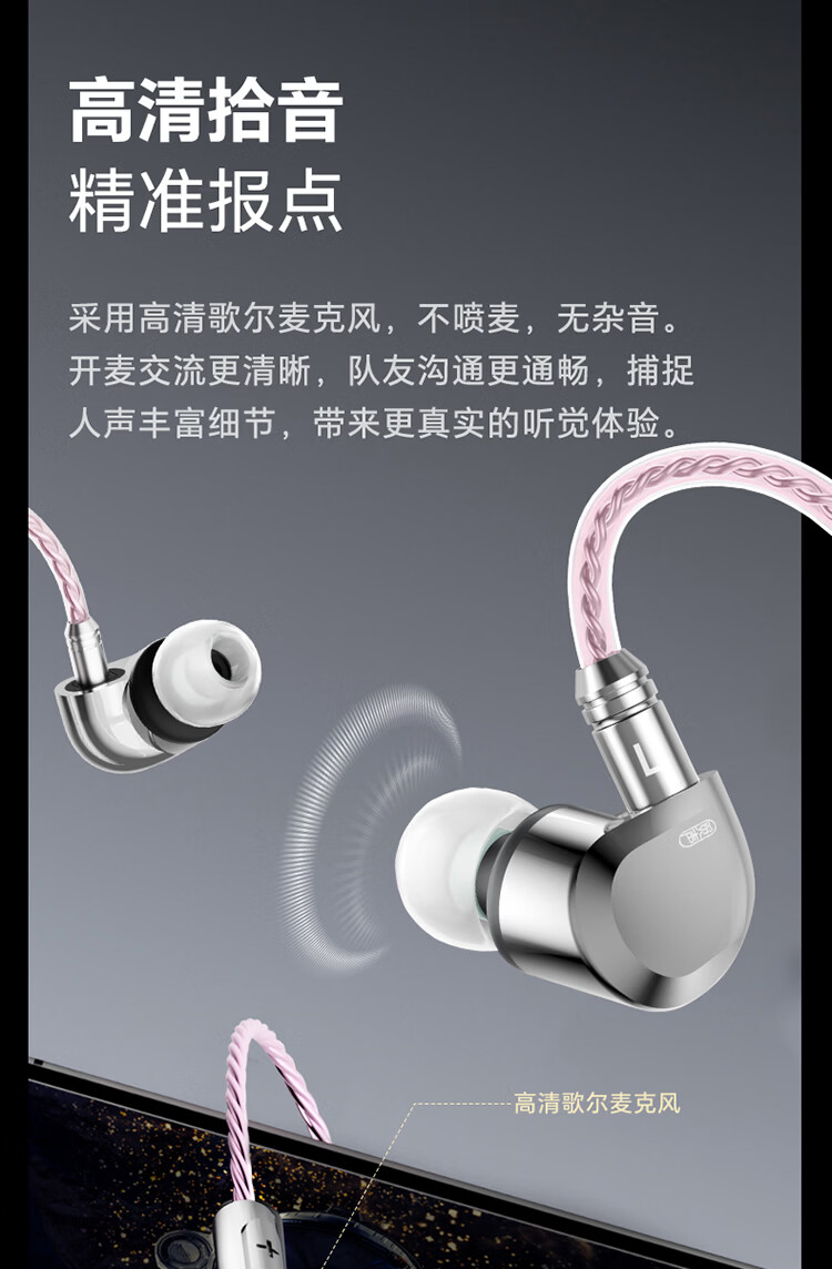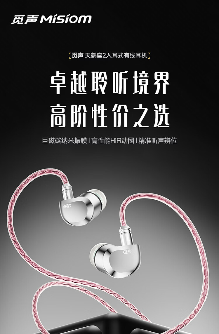 觅声天鹤座2入耳式HiFi有线音乐耳机高音质专业听声辨位fps电脑游戏电竞专用三角洲吃鸡耳麦可换线 3.5mm带麦-入会赠迷你声卡