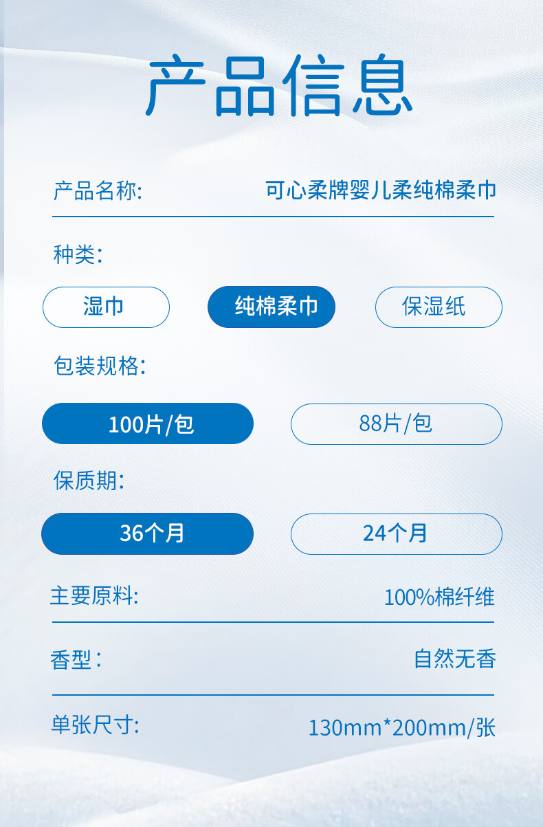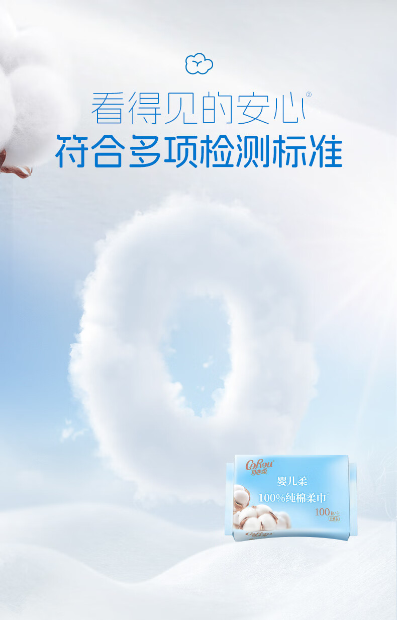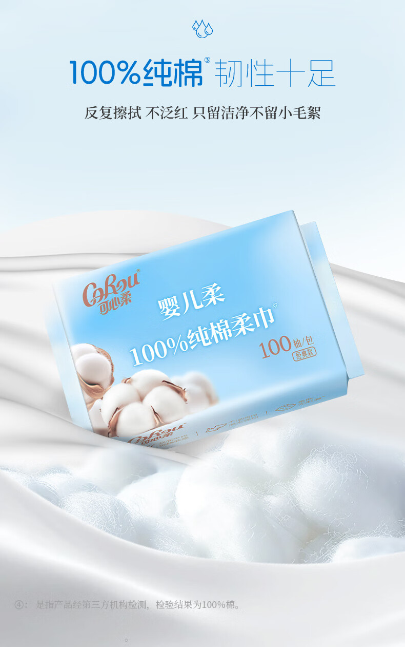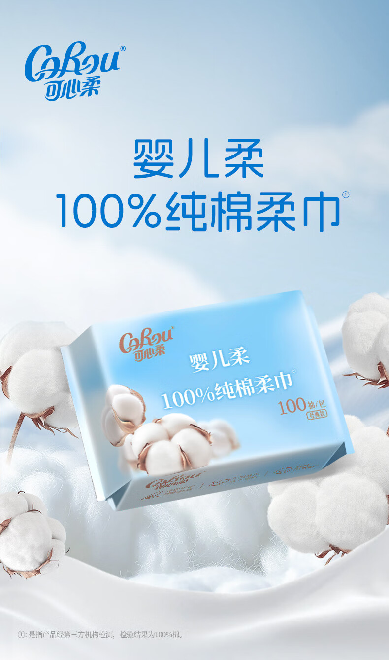 可心柔(COROU)棉柔巾100%棉洗脸巾纯棉100抽6包干湿两用一次性抽取式洗脸巾