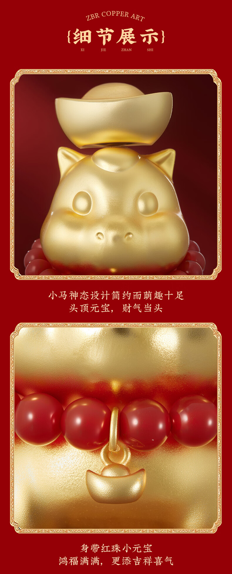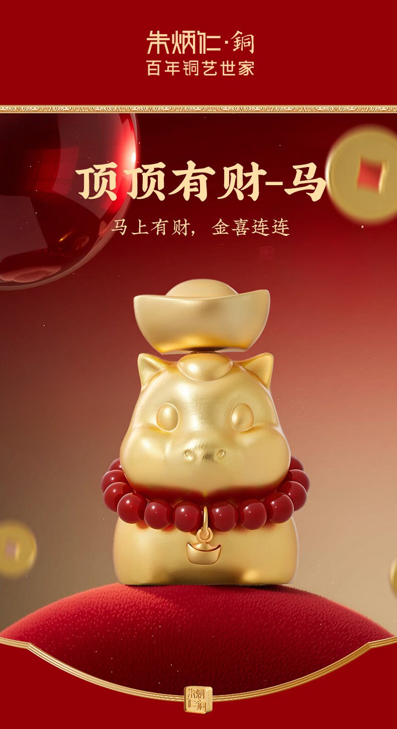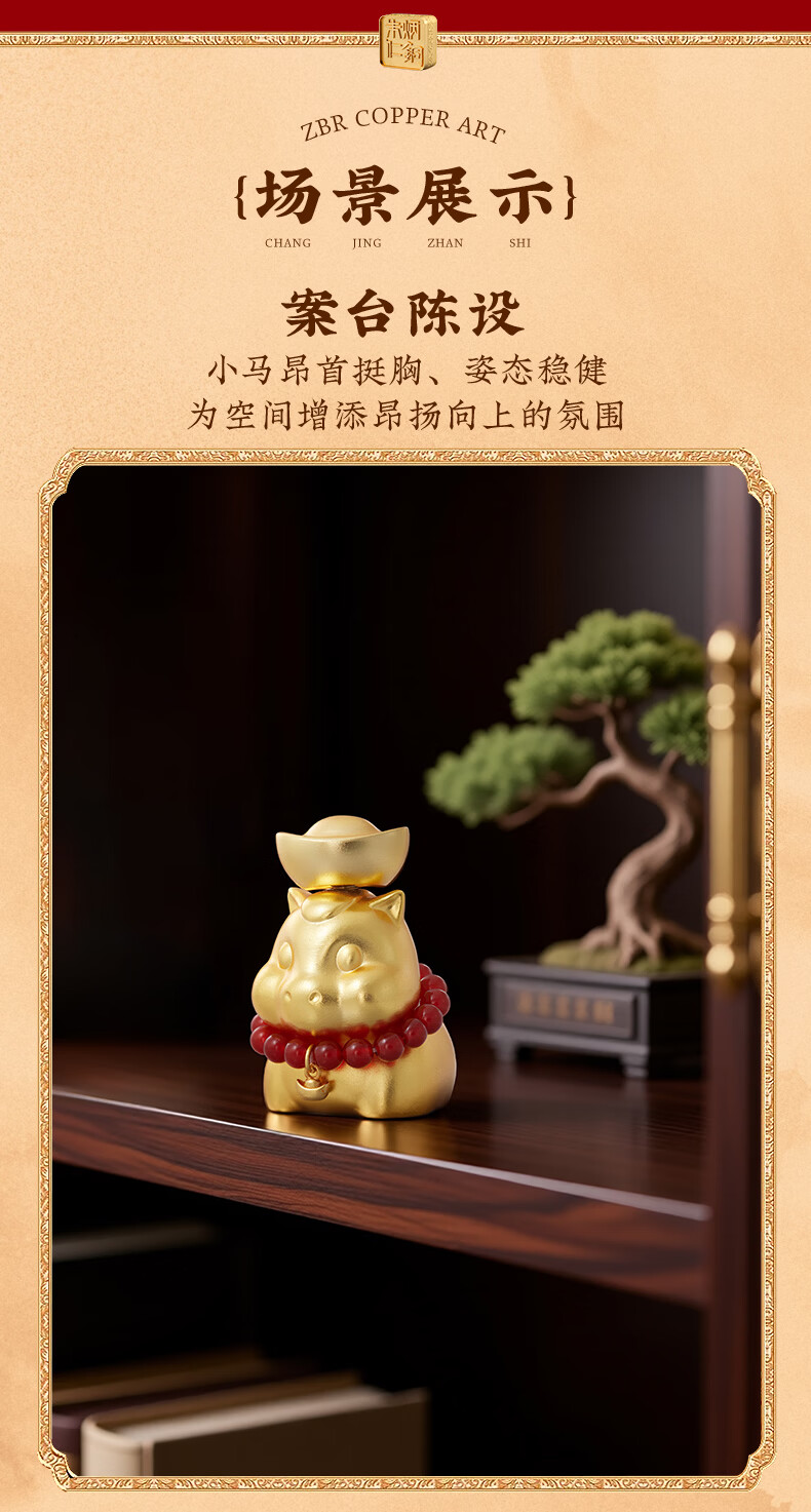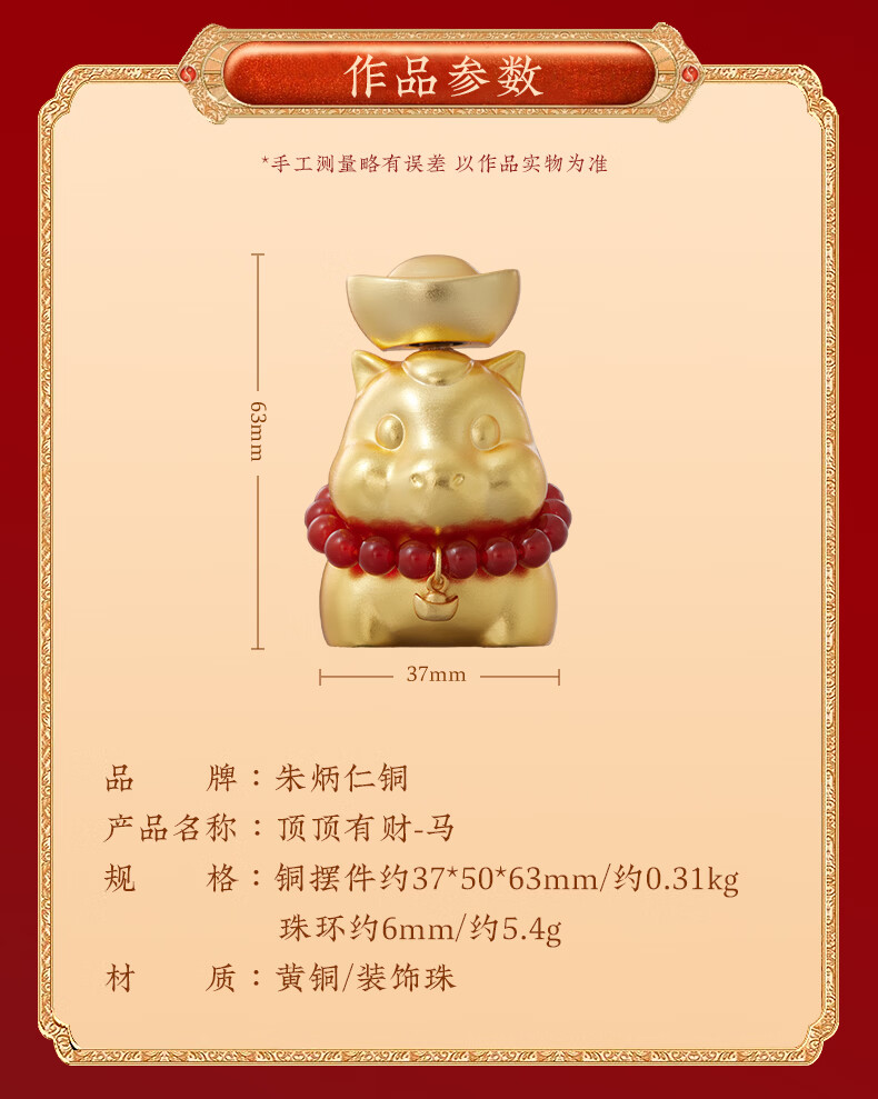 朱炳仁铜 顶顶有财 生肖马铜书房工艺品办公室桌面装饰品马摆件礼赠品 顶顶有财