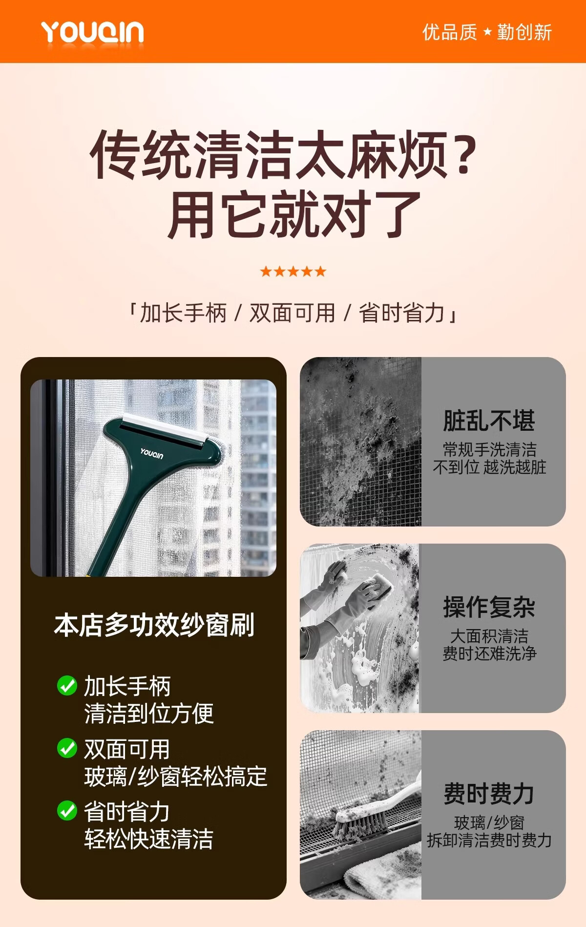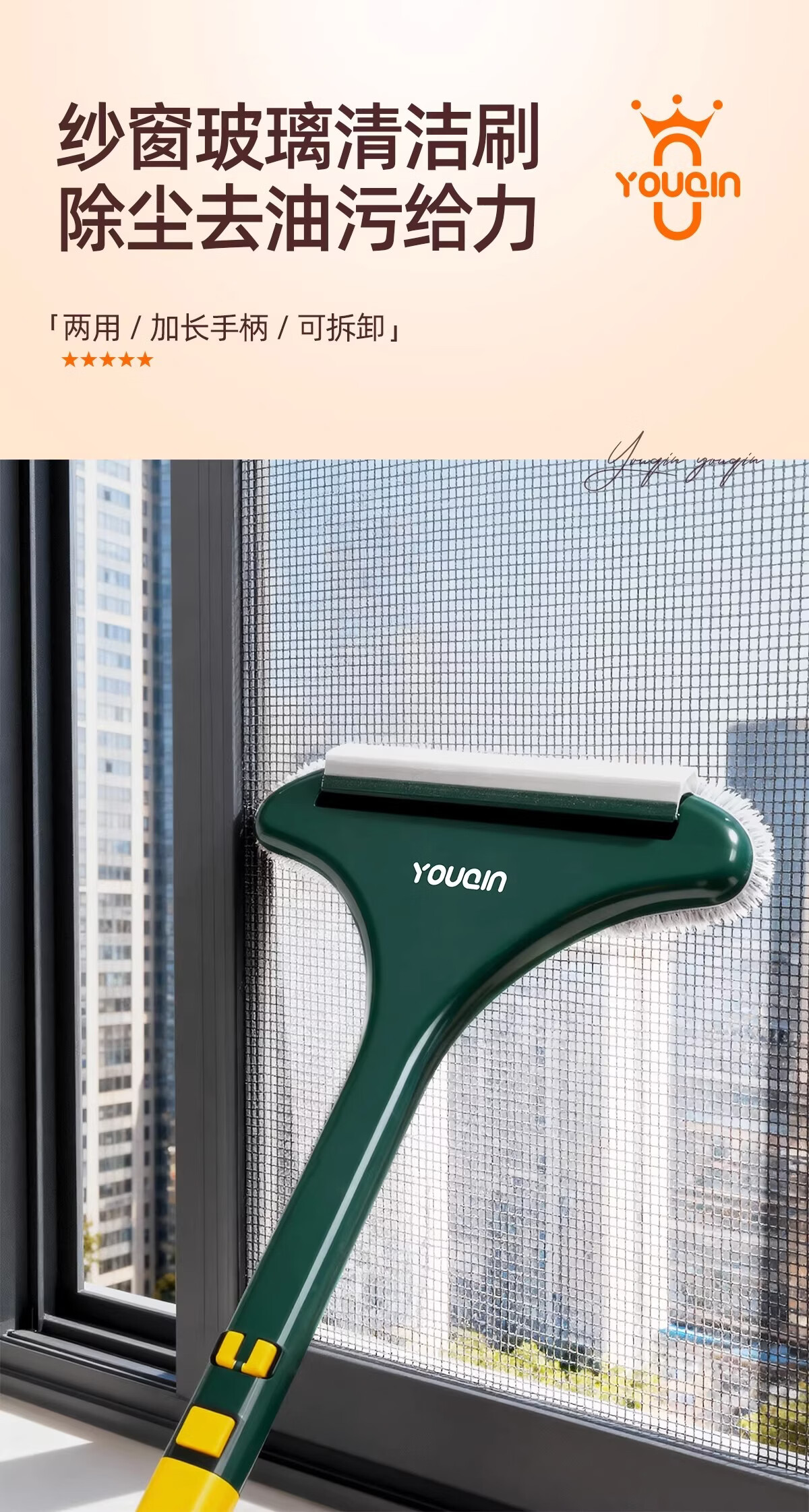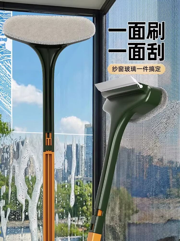 加度纱窗刷免拆洗清洗神器金刚网专用刷子双面擦玻璃家用万能刷擦窗器 【1个装】免拆窗-可加长手柄