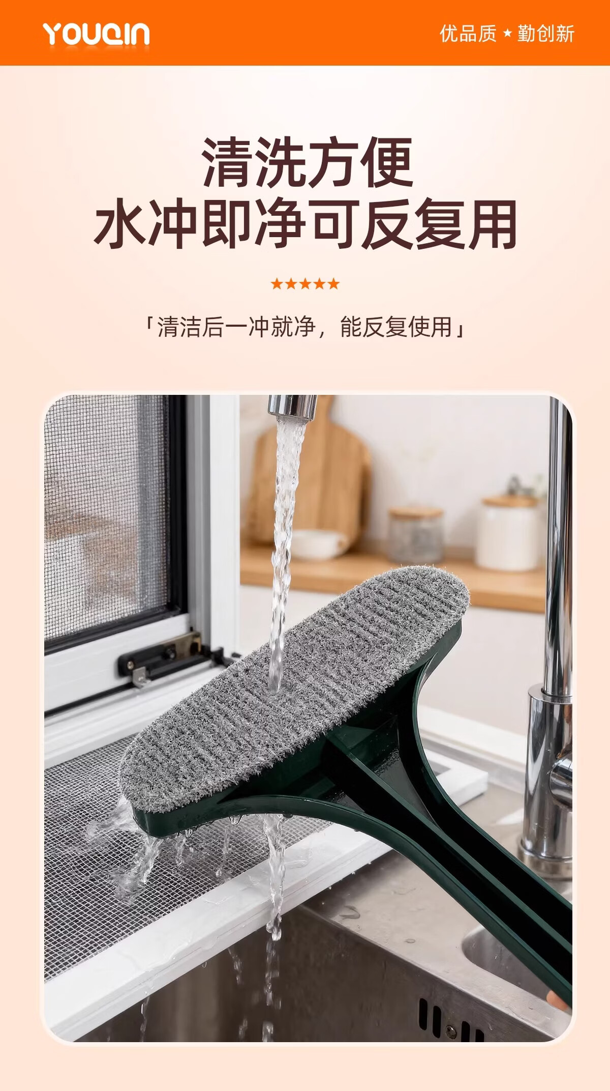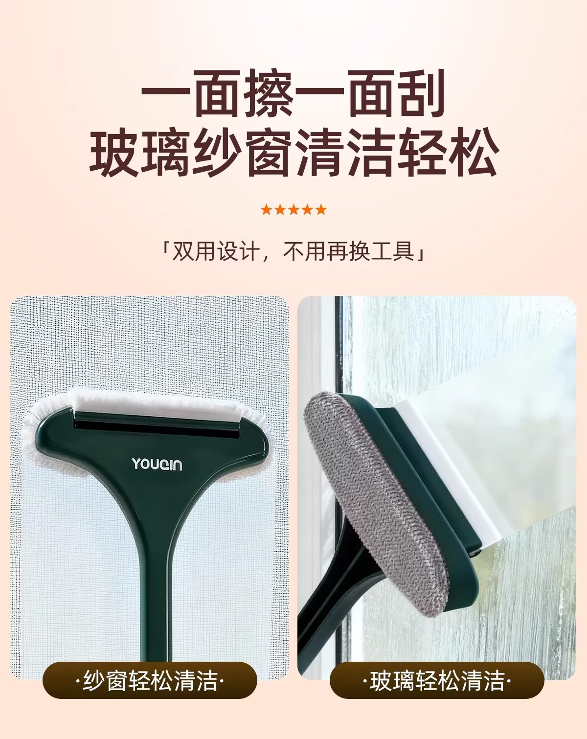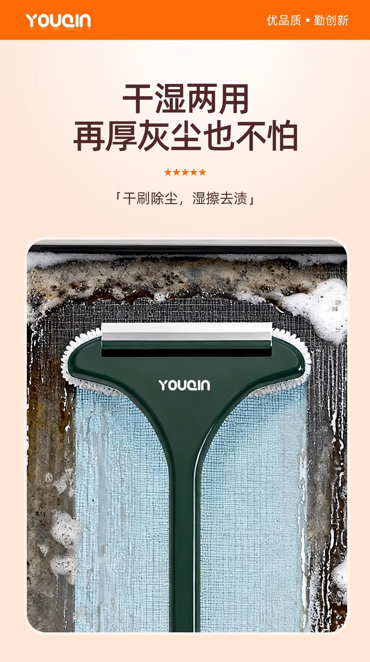 加度纱窗刷免拆洗清洗神器金刚网专用刷子双面擦玻璃家用万能刷擦窗器 【1个装】免拆窗-可加长手柄