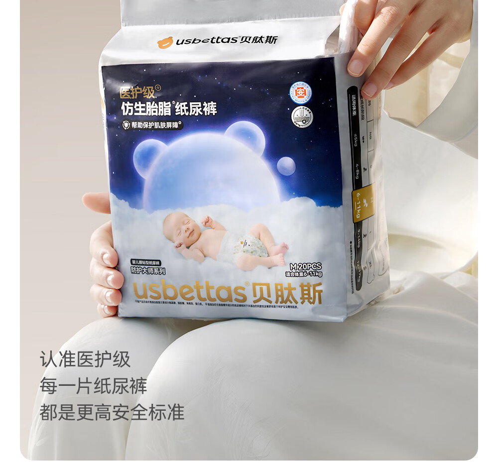 贝肽斯仿生胎脂皮纸尿裤婴儿超薄透气尿不湿宝宝新生儿尿片尿裤 【纸尿裤】M码 1包 20片 体重【6-11KG】