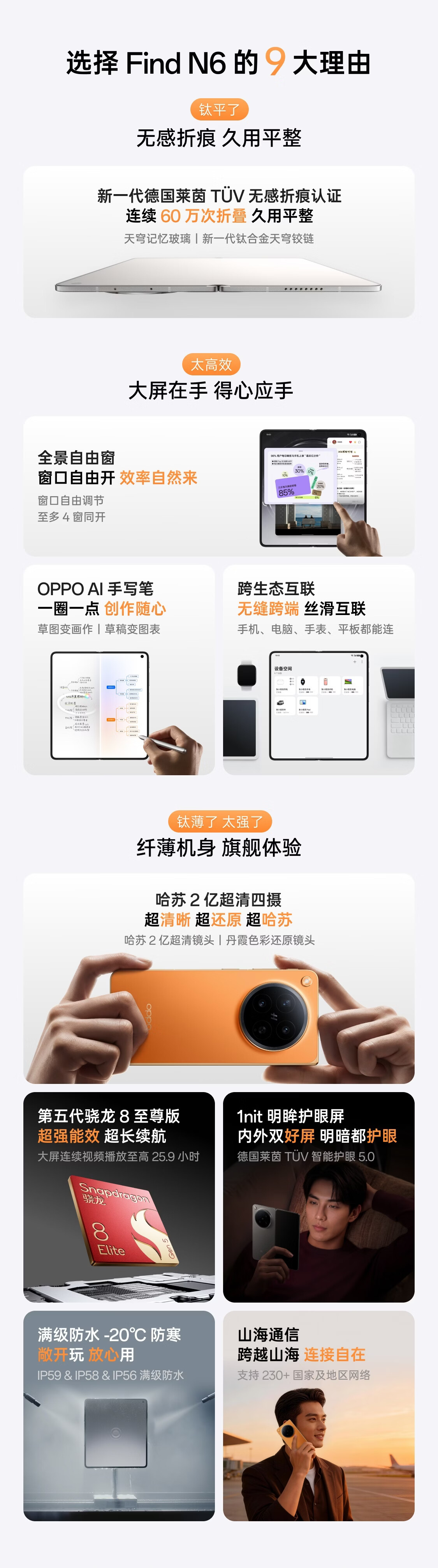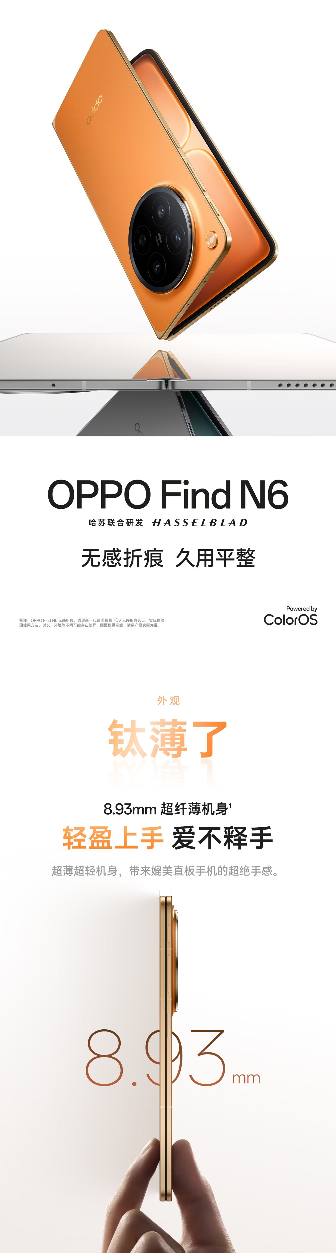 OPPO Find N6 16GB+1TB 卫星通信版 金橙 无感折痕 哈苏2亿超清四摄 第五代骁龙8至尊版 折叠旗舰手机