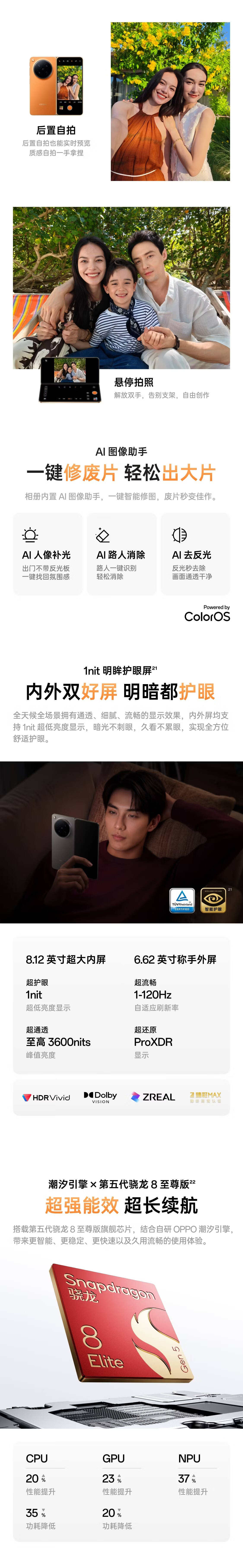 OPPO Find N6 16GB+512GB 深黑 无感折痕 哈苏 2 亿超清四摄 第五代骁龙 8 至尊版 折叠屏旗舰智能手机