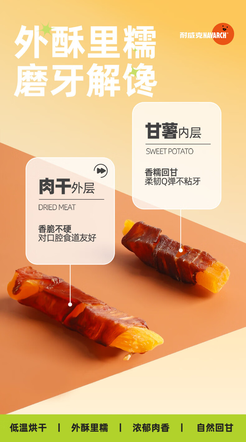 耐威克宠物狗狗零食 成犬幼犬训狗奖励零食 鸭肉缠薯条100g
