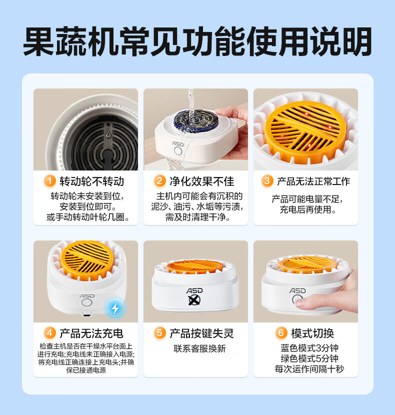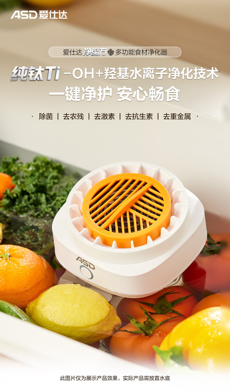 爱仕达(ASD)净魔方纯钛果蔬清洗机水果蔬菜肉类小型净化器电解片超长续航无线充电 可清洗净化农残降解重金属