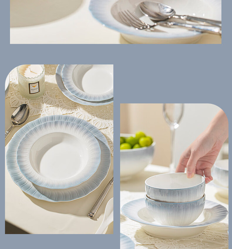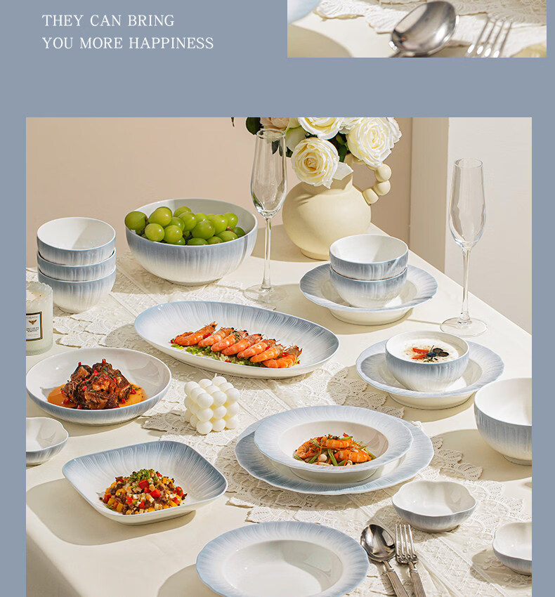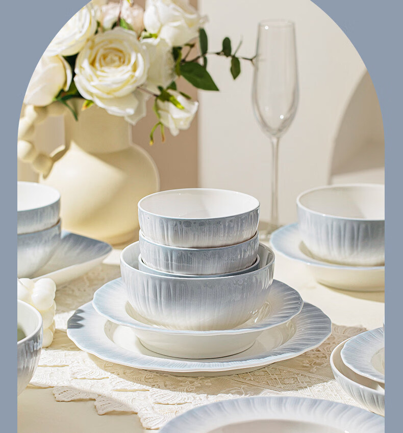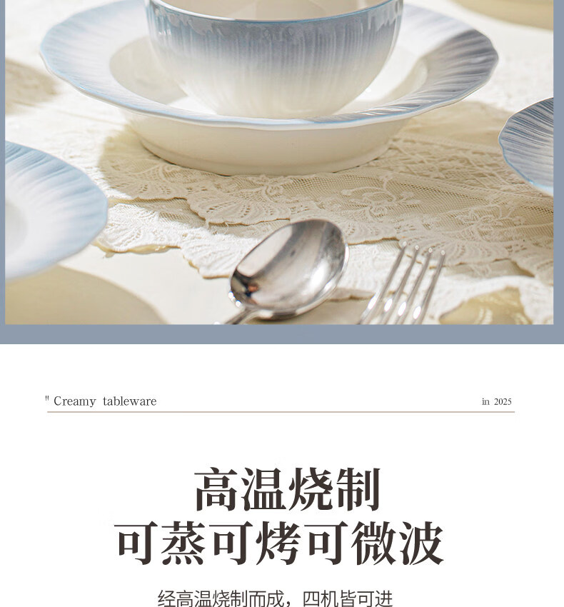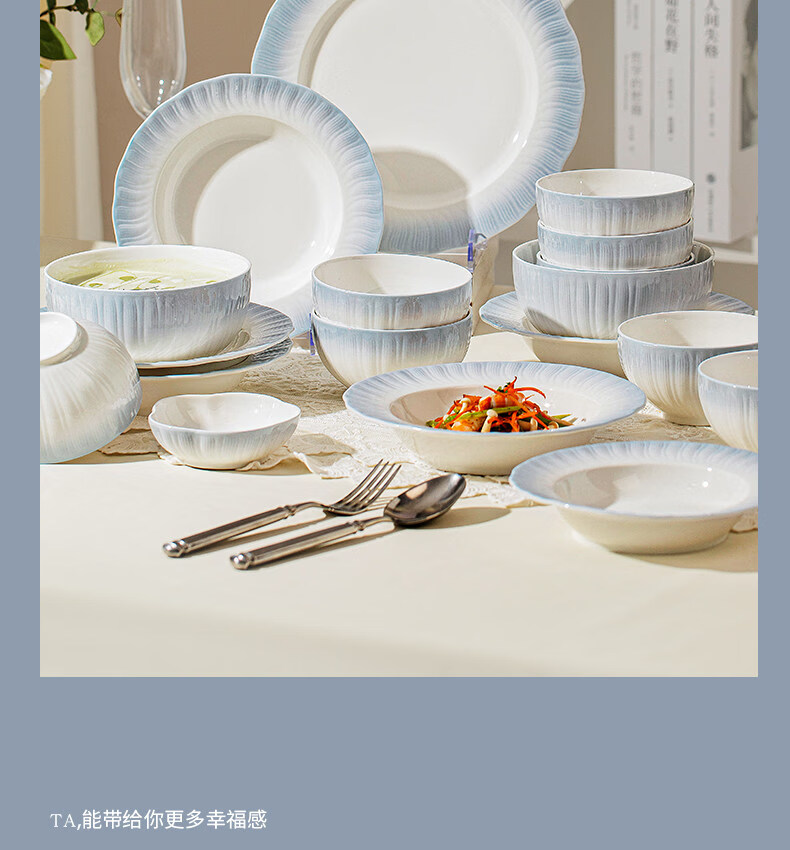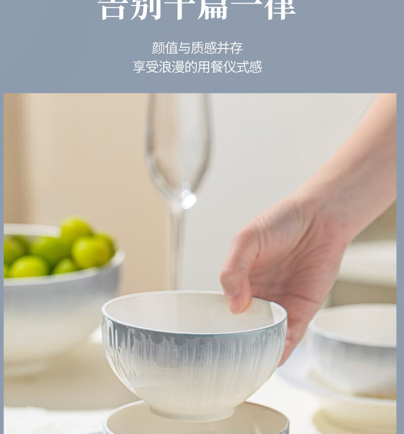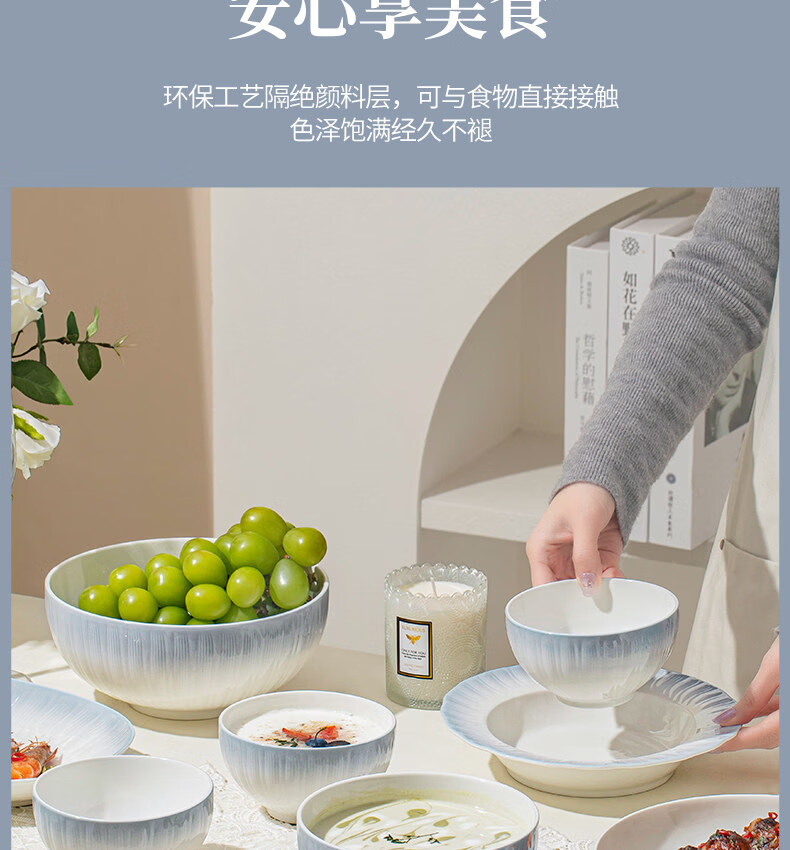 精缔陶瓷JINGDI釉下彩2025碗碟套装家用高颜值餐具套装简约陶瓷碗盘碗筷乔迁送礼 【釉下彩】简约风素雅4人食18件