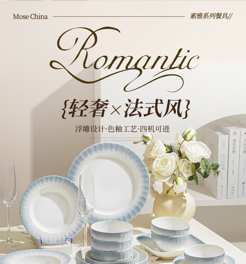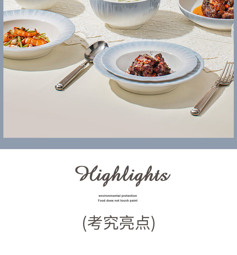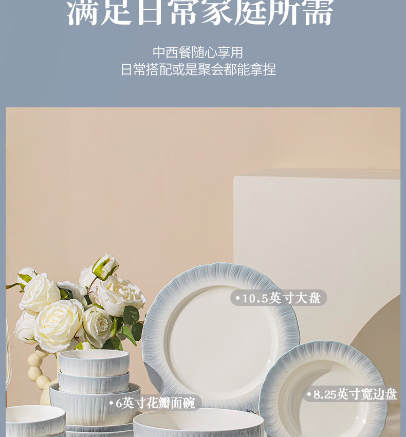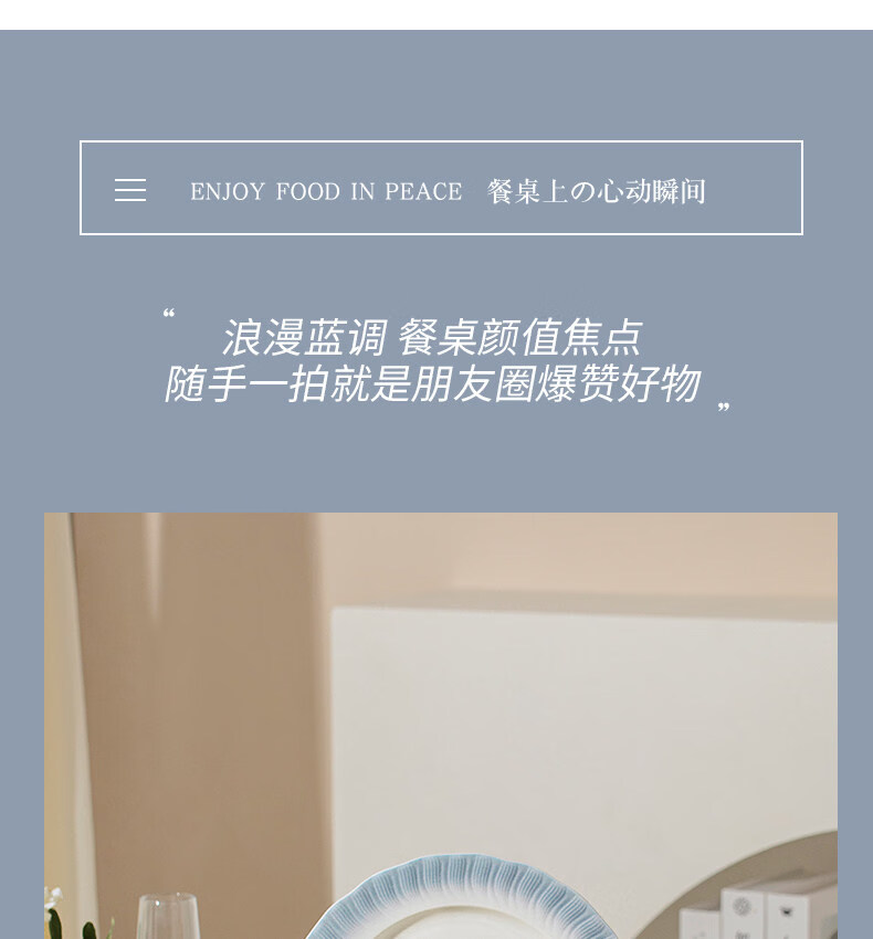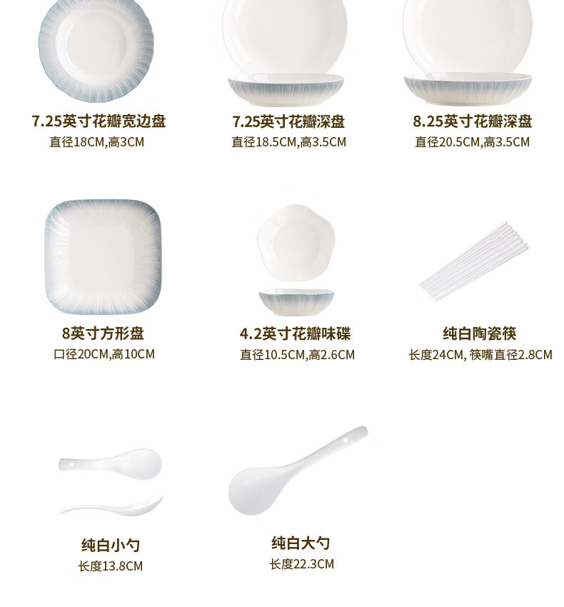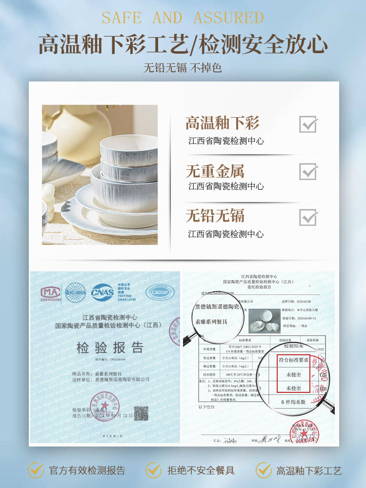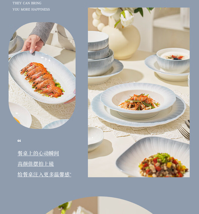 精缔陶瓷JINGDI釉下彩2025碗碟套装家用高颜值餐具套装简约陶瓷碗盘碗筷乔迁送礼 【釉下彩】简约风素雅4人食18件