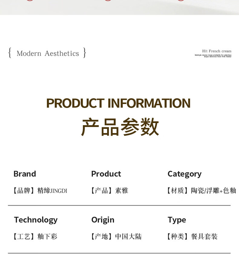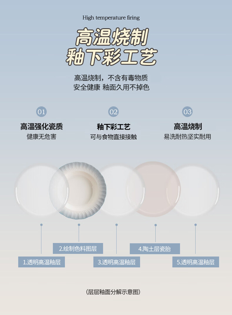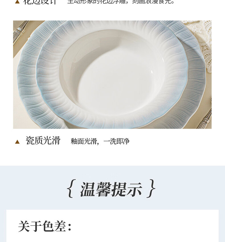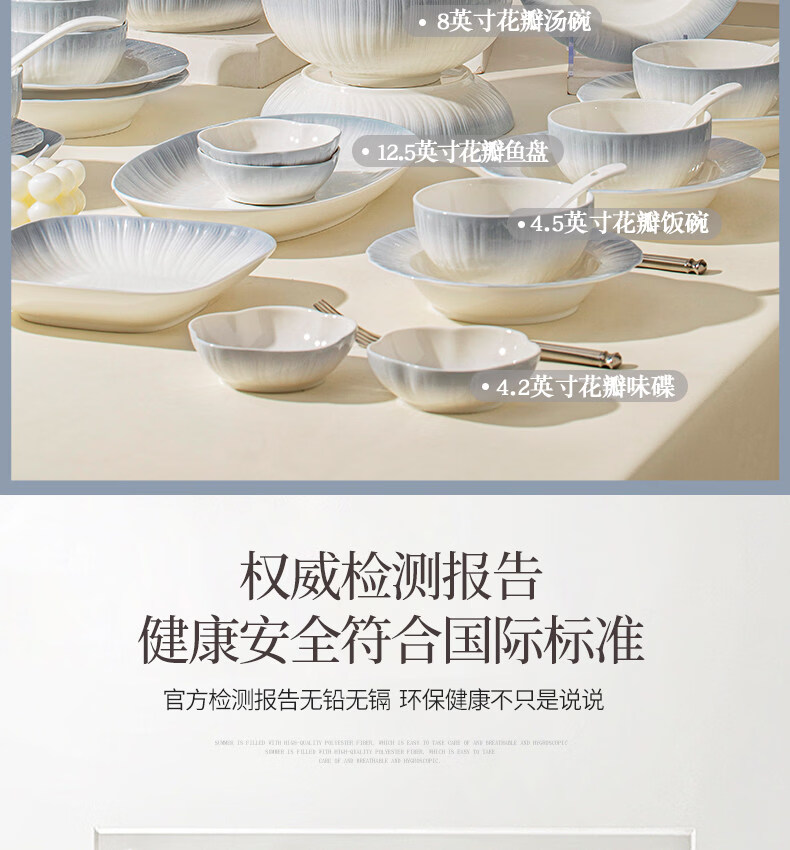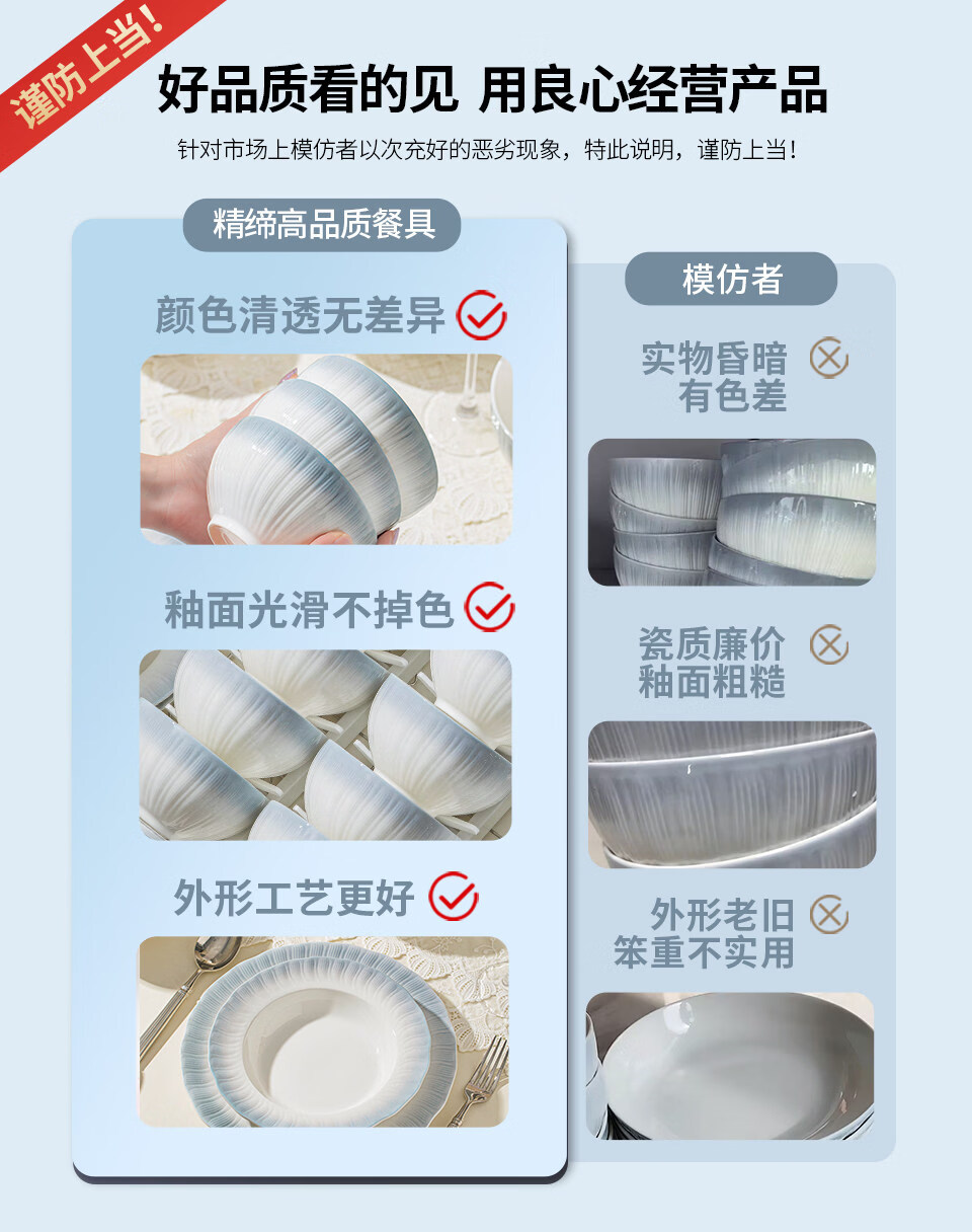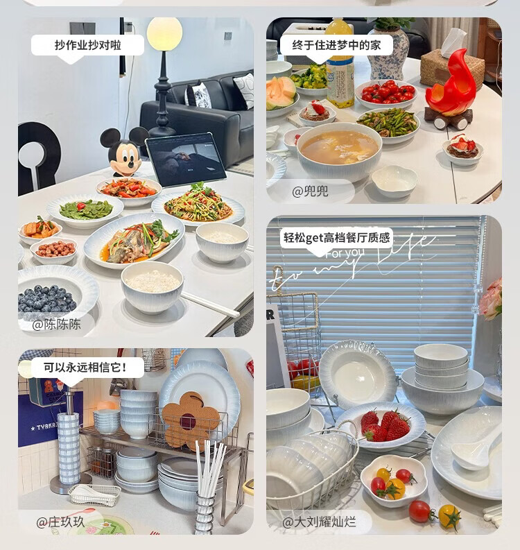 精缔陶瓷JINGDI釉下彩2025碗碟套装家用高颜值餐具套装简约陶瓷碗盘碗筷乔迁送礼 【釉下彩】简约风素雅4人食18件