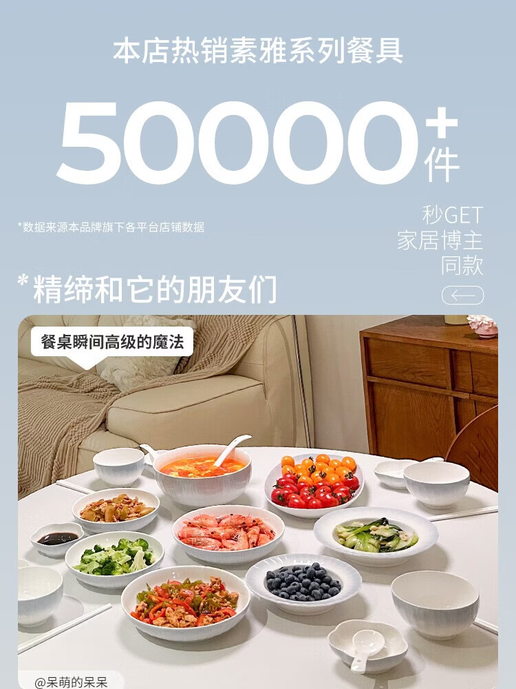 精缔陶瓷JINGDI釉下彩2025碗碟套装家用高颜值餐具套装简约陶瓷碗盘碗筷乔迁送礼 【店长推荐】釉下彩简约风素雅10人食66件 (送砂锅)