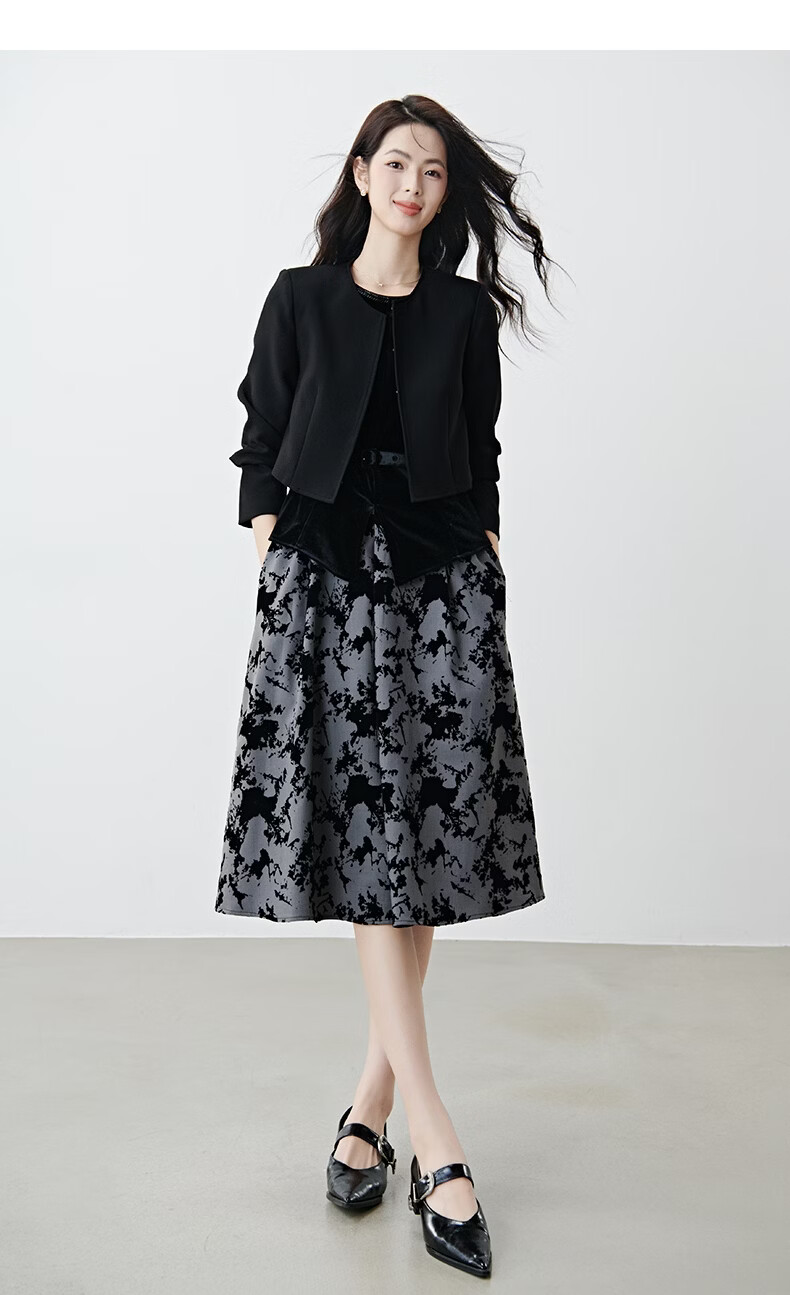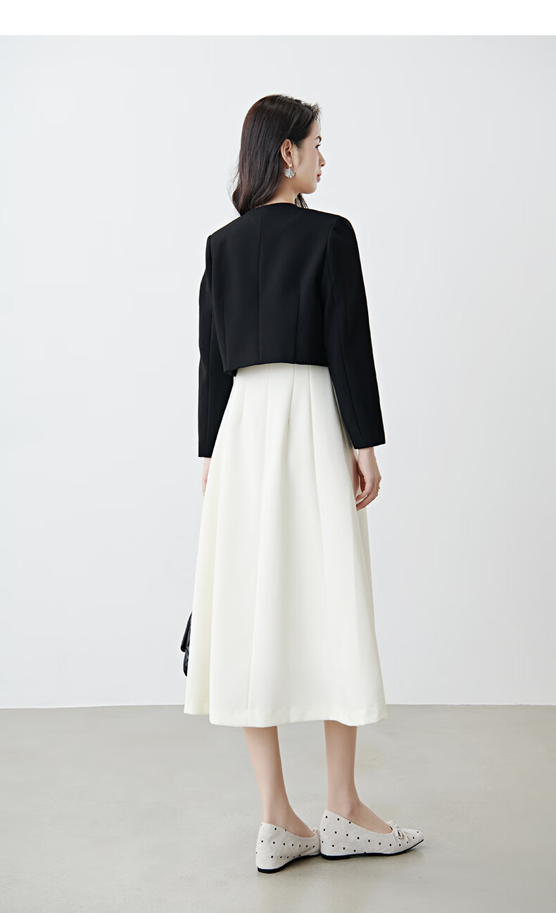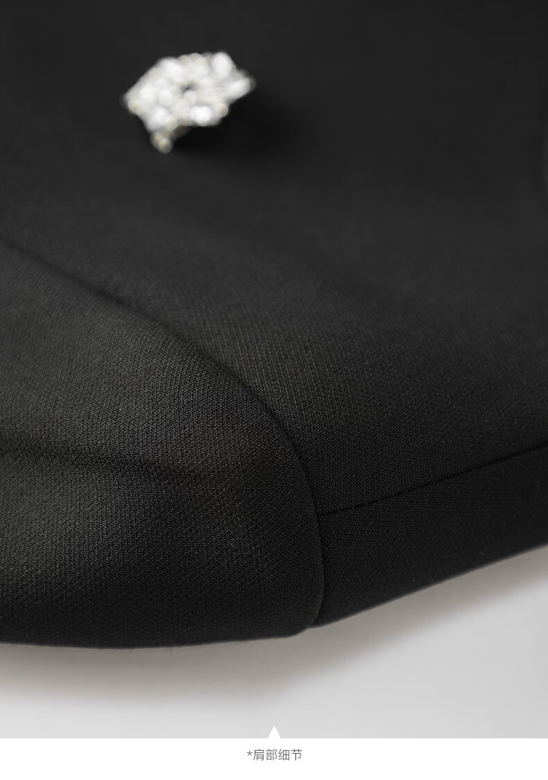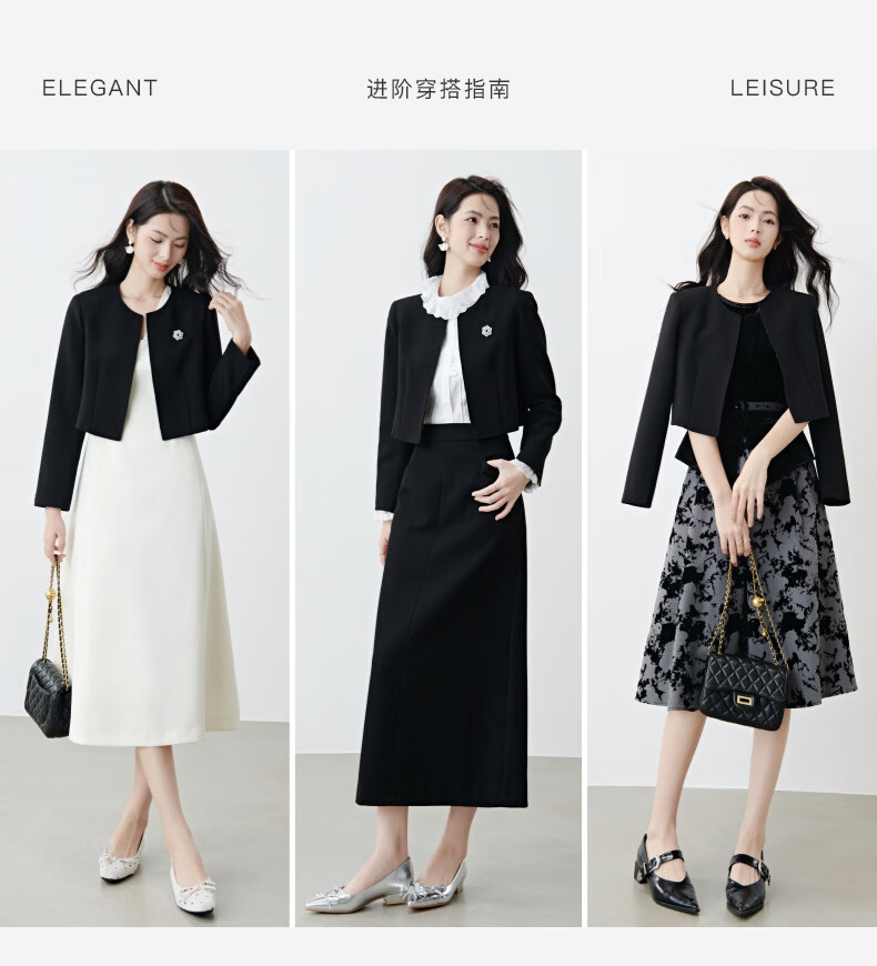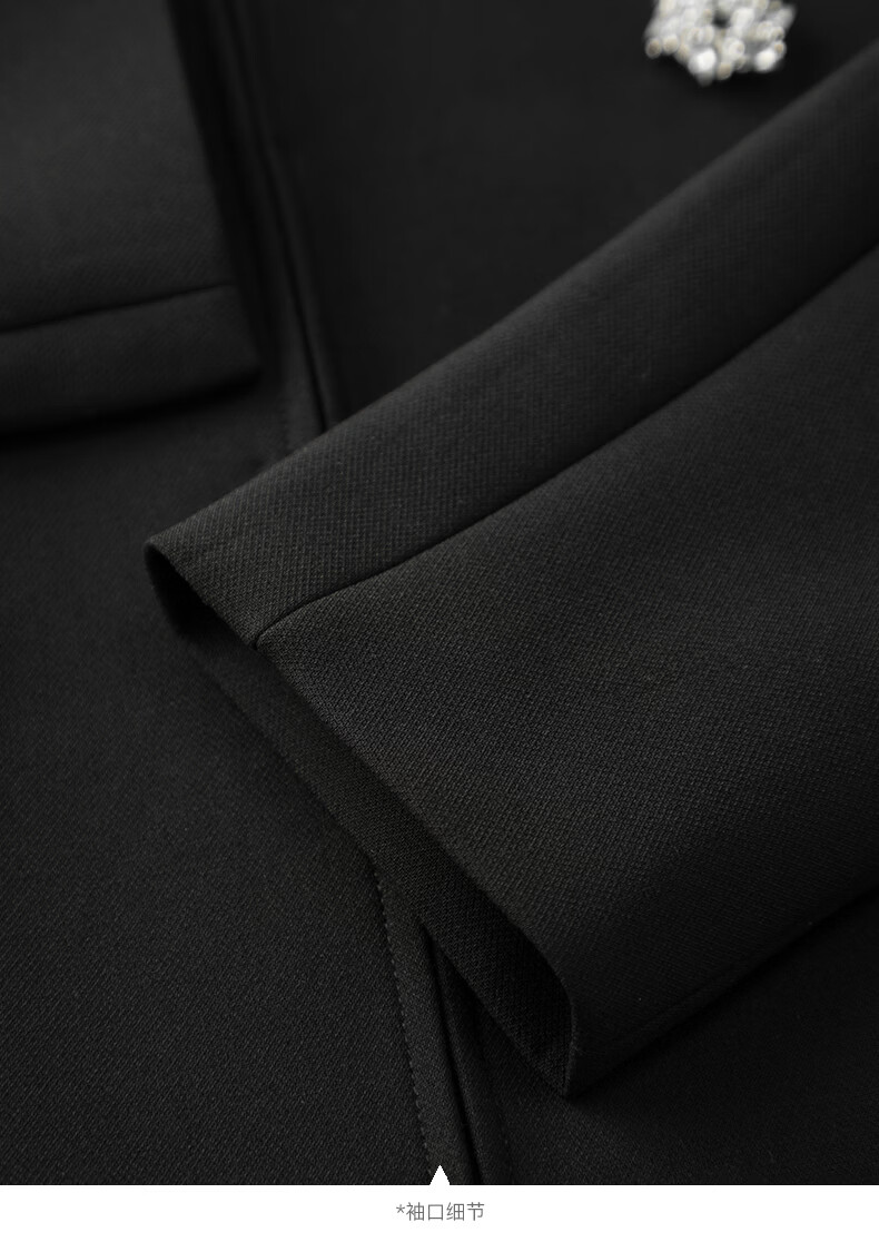 晚白【配胸针】2026春通勤圆领都市极简风上衣时尚小个子显高短外套女 黑色 M