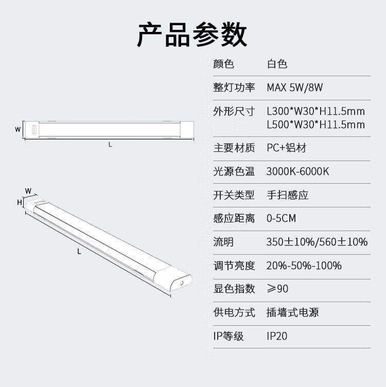 宝斯恩手扫感应灯橱柜书桌吊柜补光LED灯可调色温调亮度航空铝材质家用 手扫感应灯 50CM 8W