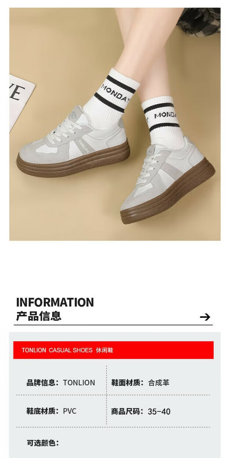 唐狮(TonLion)鞋子女2026春夏季潮流个性板鞋女软底舒适时尚女鞋耐休闲鞋 白灰TS20234175 35