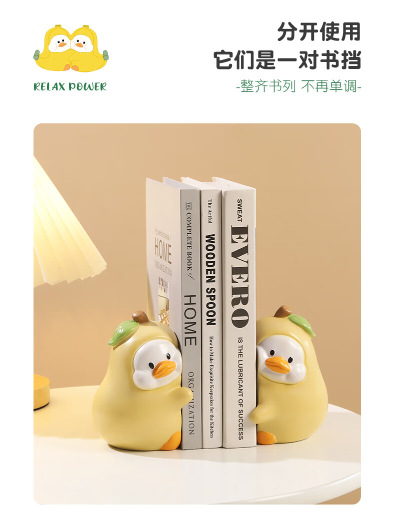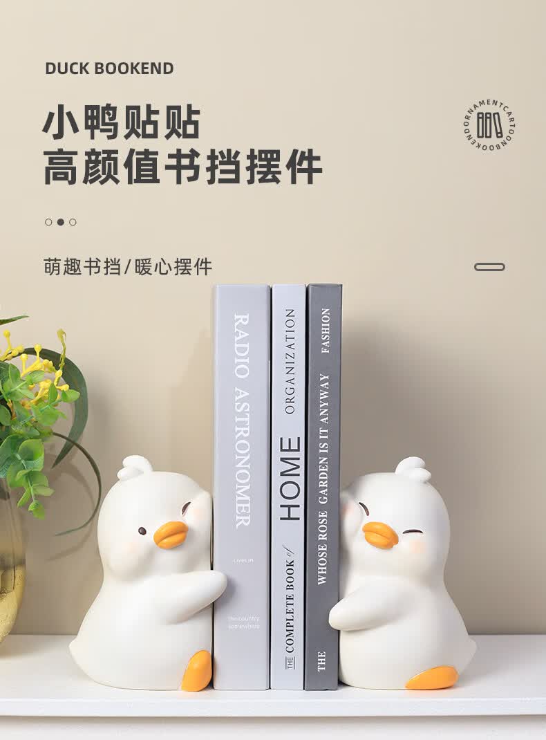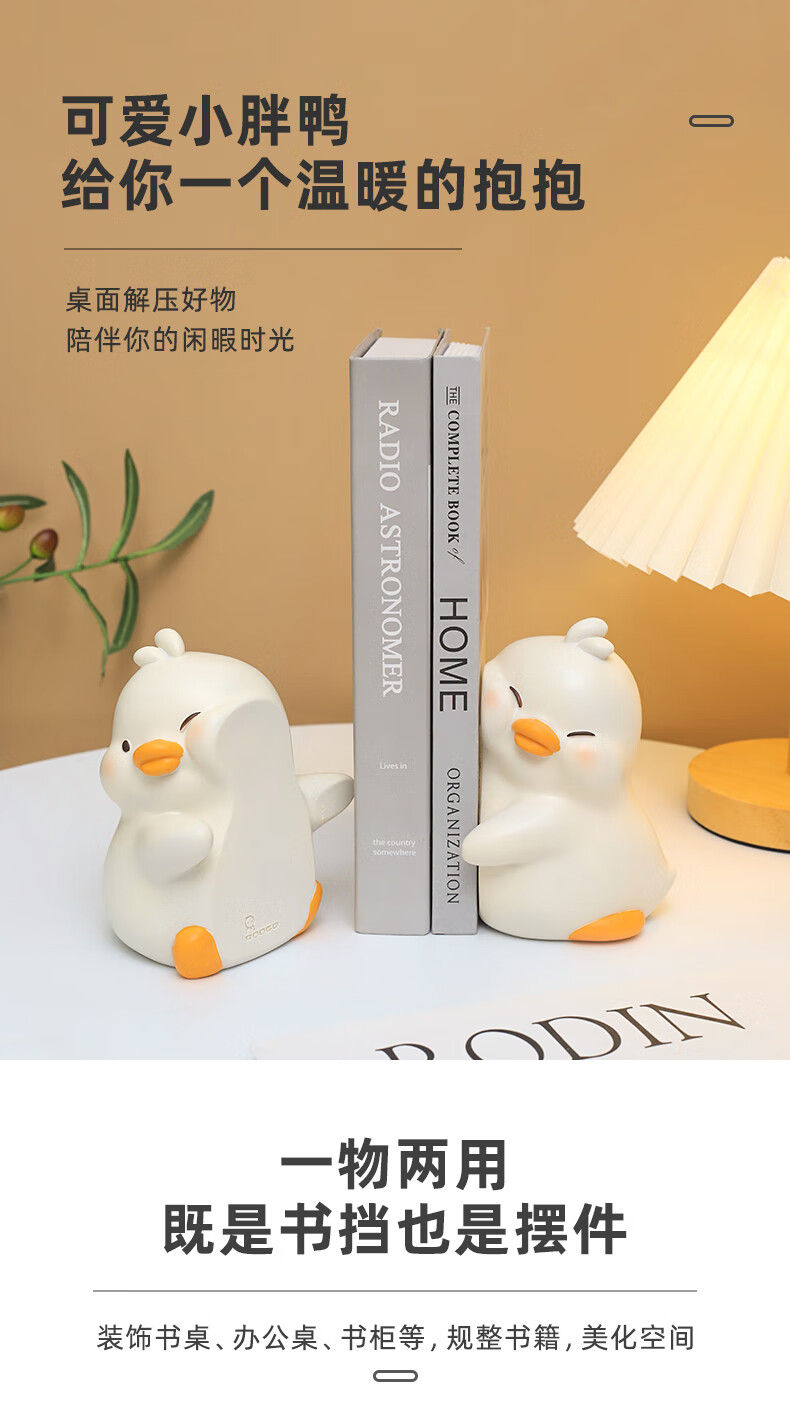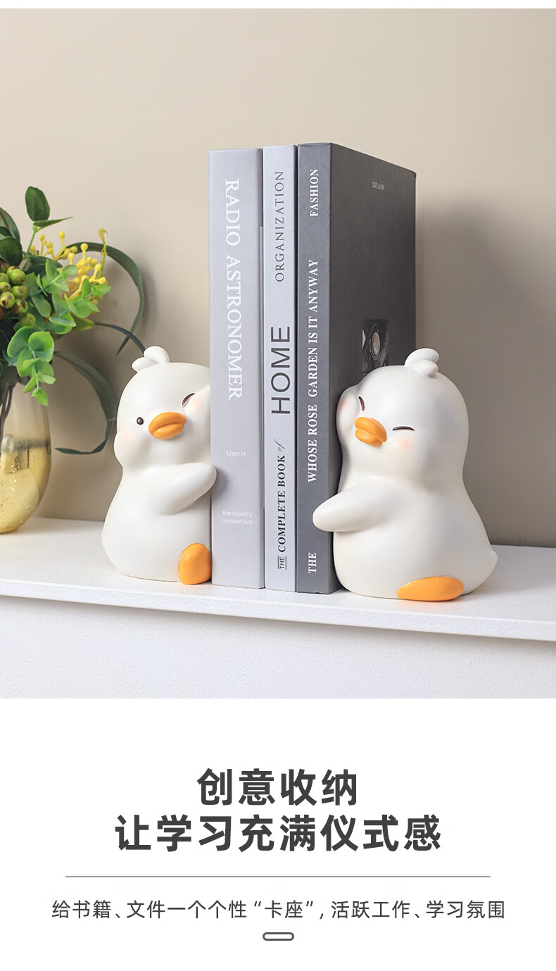 如果可爱书挡抱抱鸭书立创意家居书夹办公桌面实用摆件伴手礼送礼礼物 小鸭贴贴书挡-白色