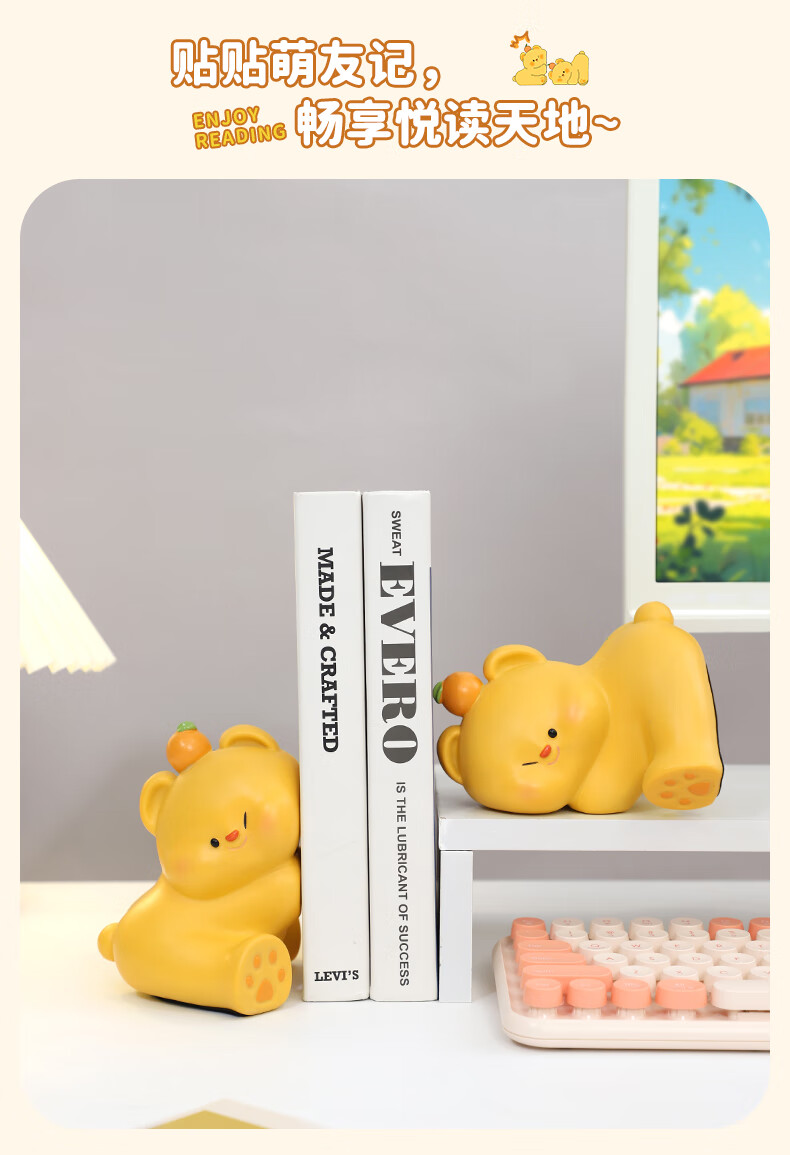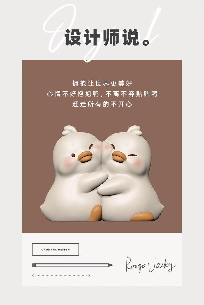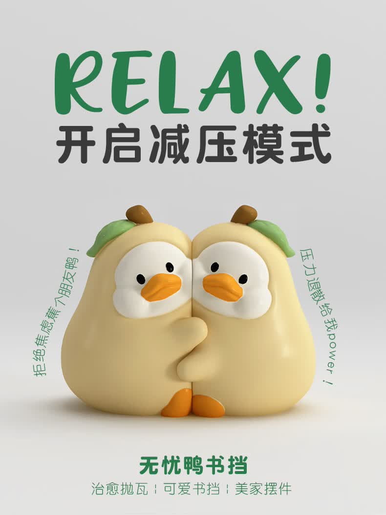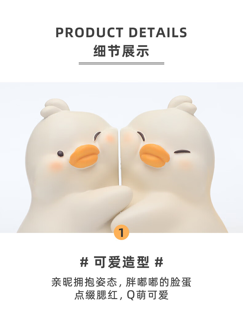 如果可爱书挡抱抱鸭书立创意家居书夹办公桌面实用摆件伴手礼送礼礼物 小鸭贴贴书挡-白色