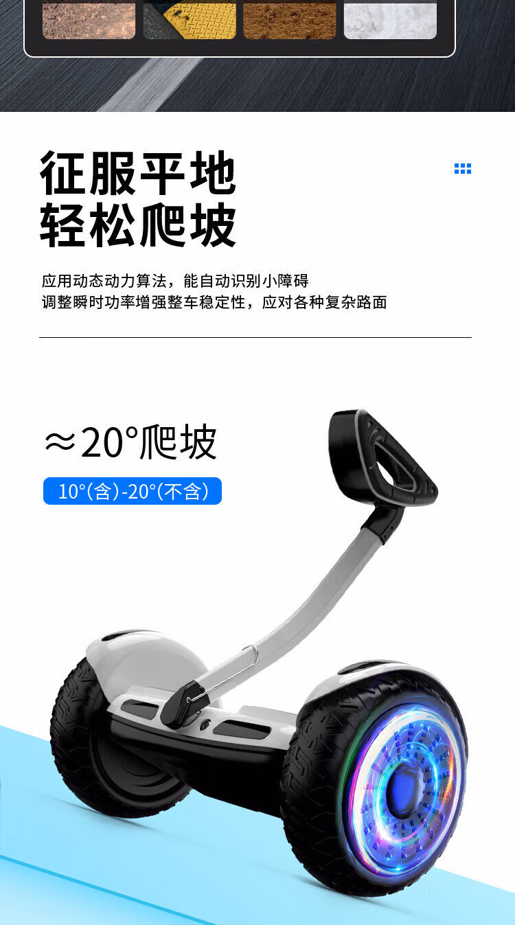 小米煜号智能电动儿童平衡车3-6-12岁体感10岁到15岁腿控成年人自动手扶双轮新款平行车 10吋米白【腿手控+APP+避震轮】