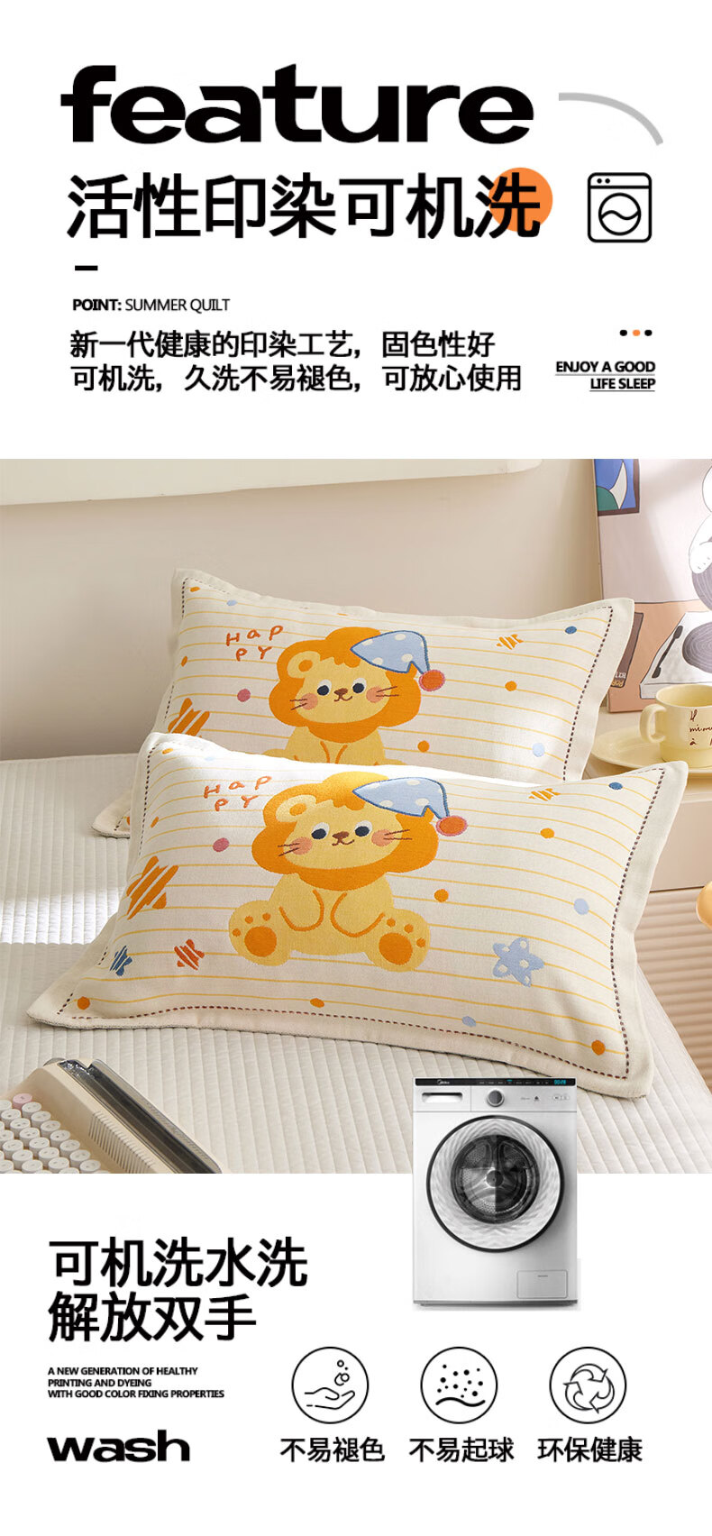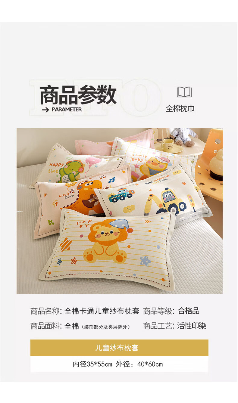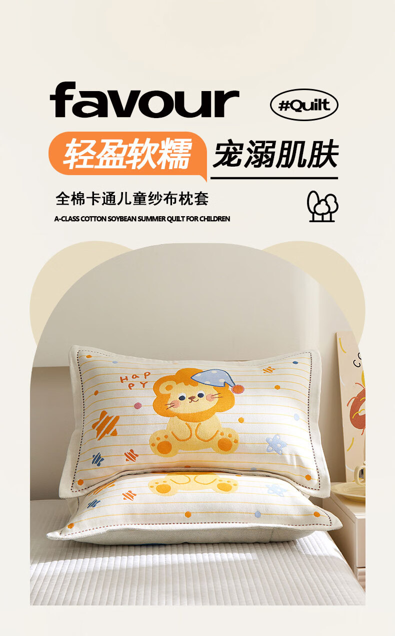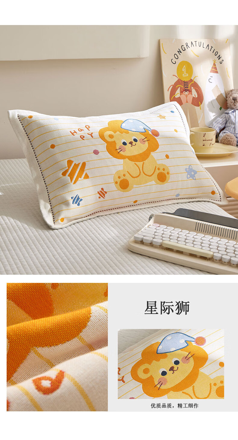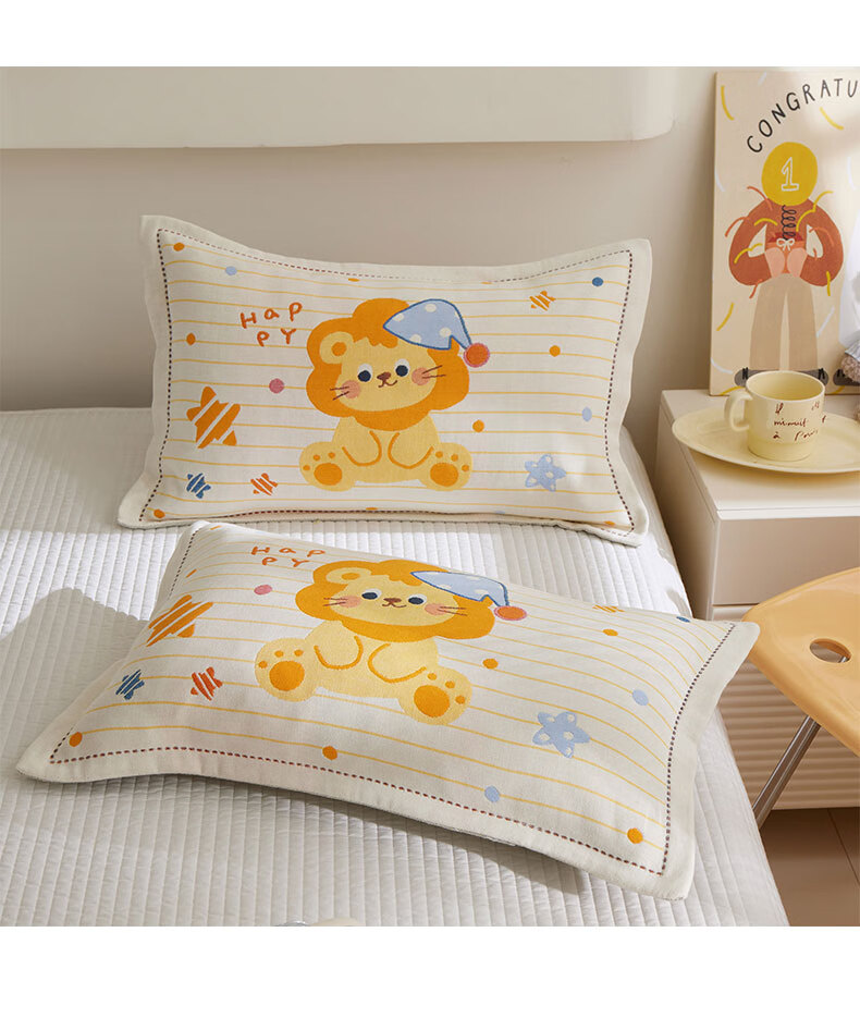 【精选厂家】卡通儿童纱布枕套学生宿舍居家卧室幼儿园宝宝吸汗防 星际狮(卡通全棉) 枕套40x60cm一只