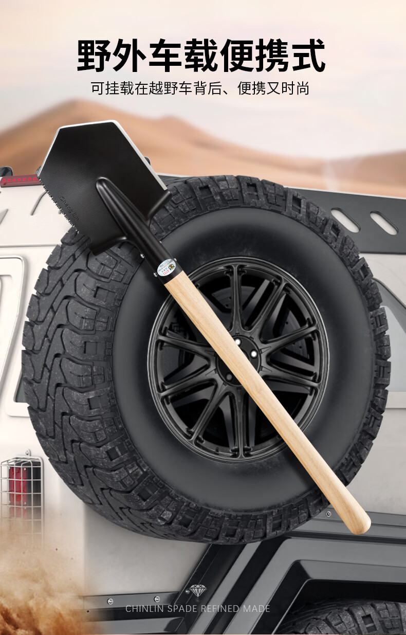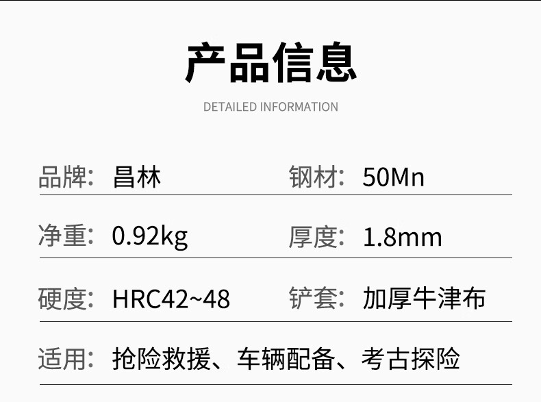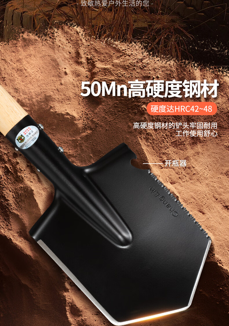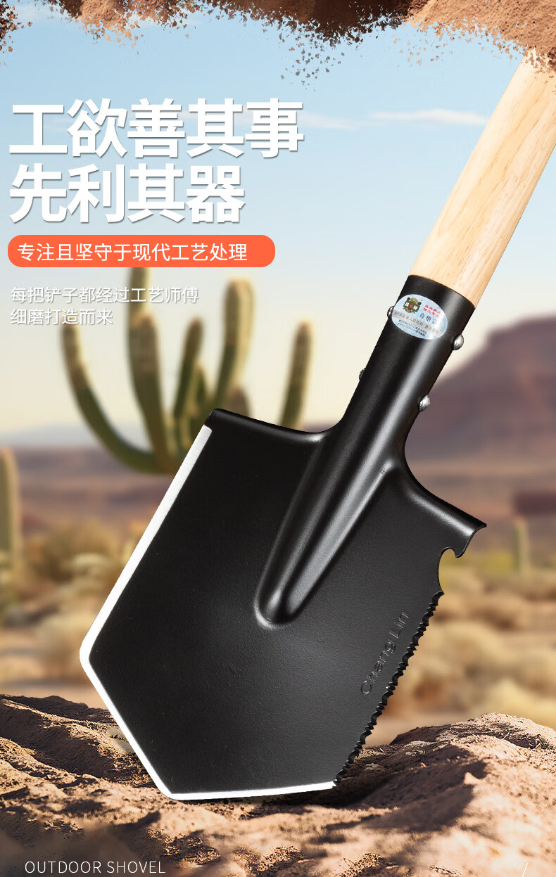 昌林106A俄式锰钢工兵铲加长版大号铁锹车载兵工铲子户外露营多功能锹 黑色+铲套