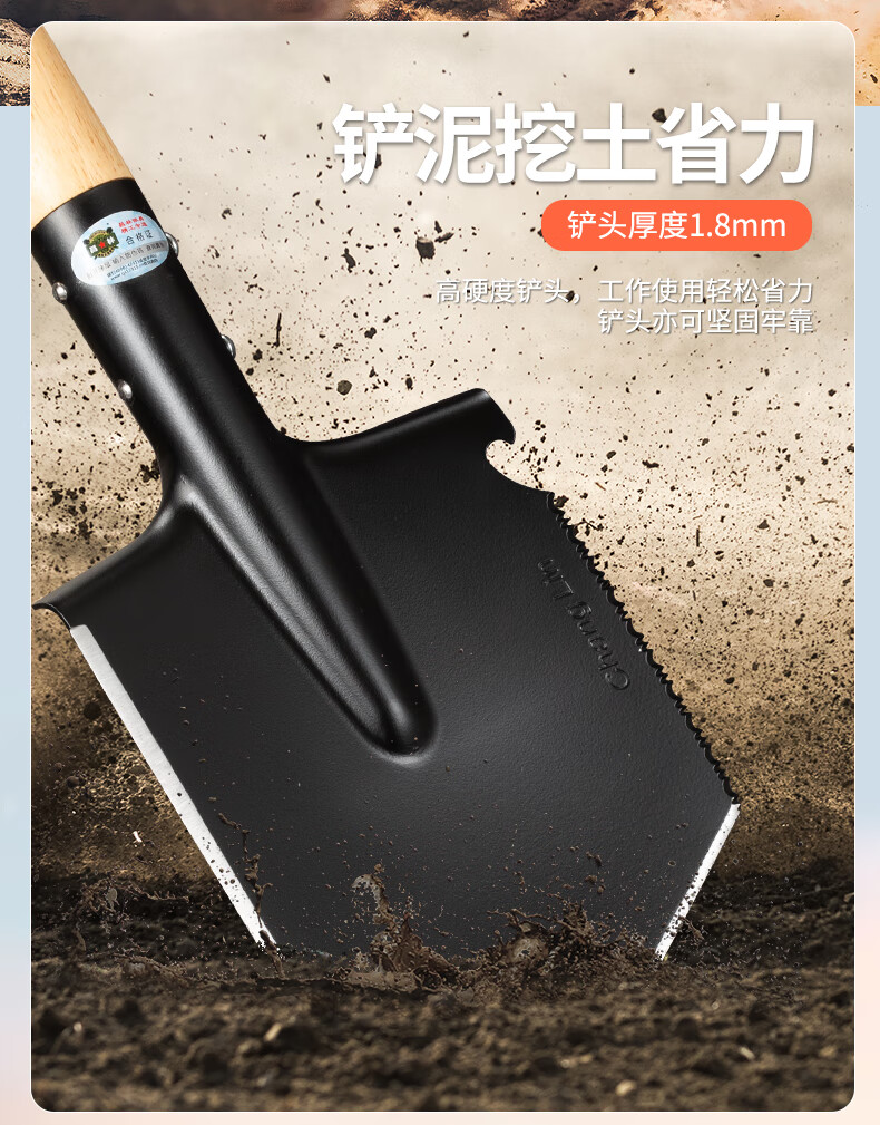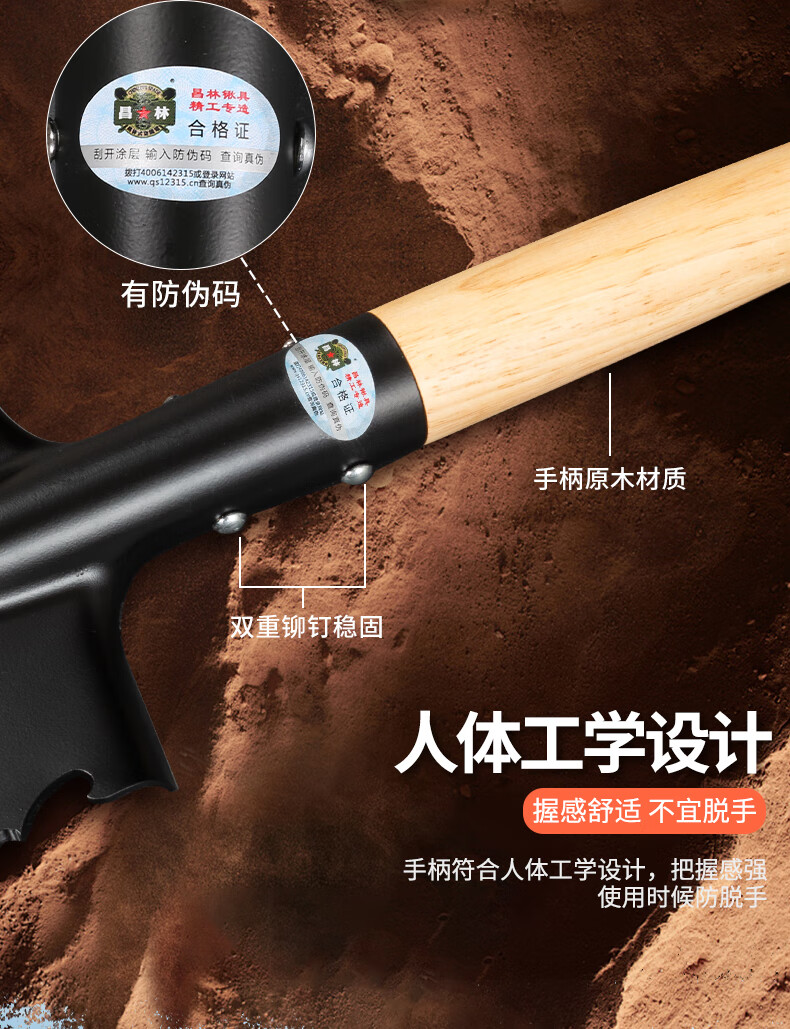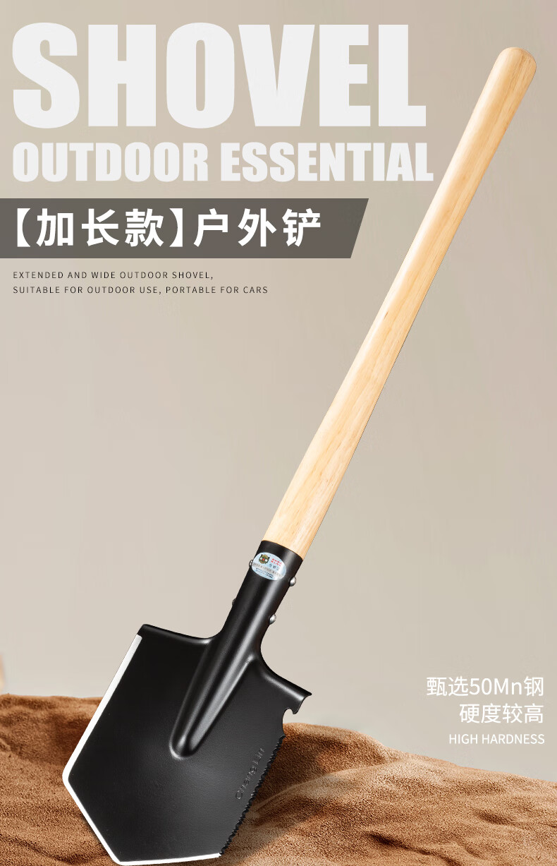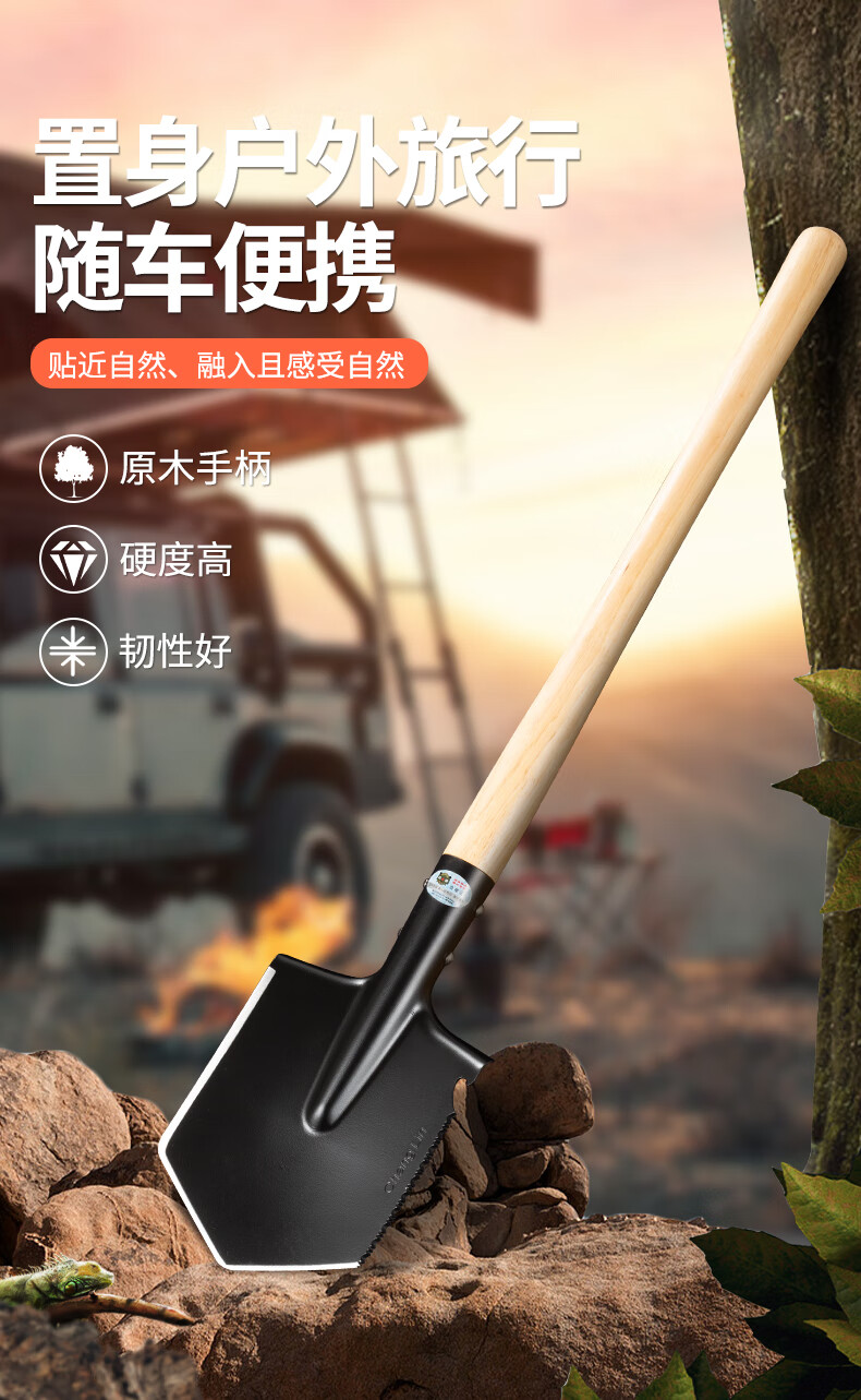 昌林106A俄式锰钢工兵铲加长版大号铁锹车载兵工铲子户外露营多功能锹 黑色+铲套