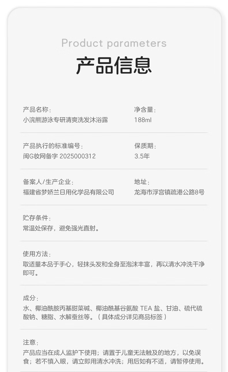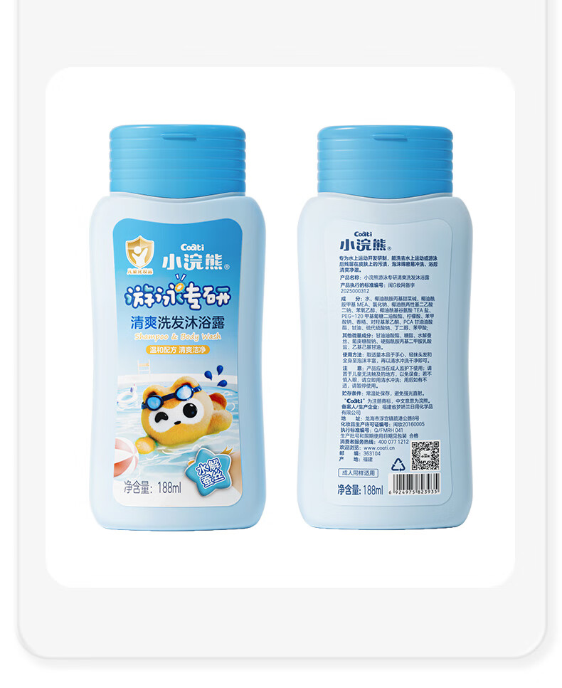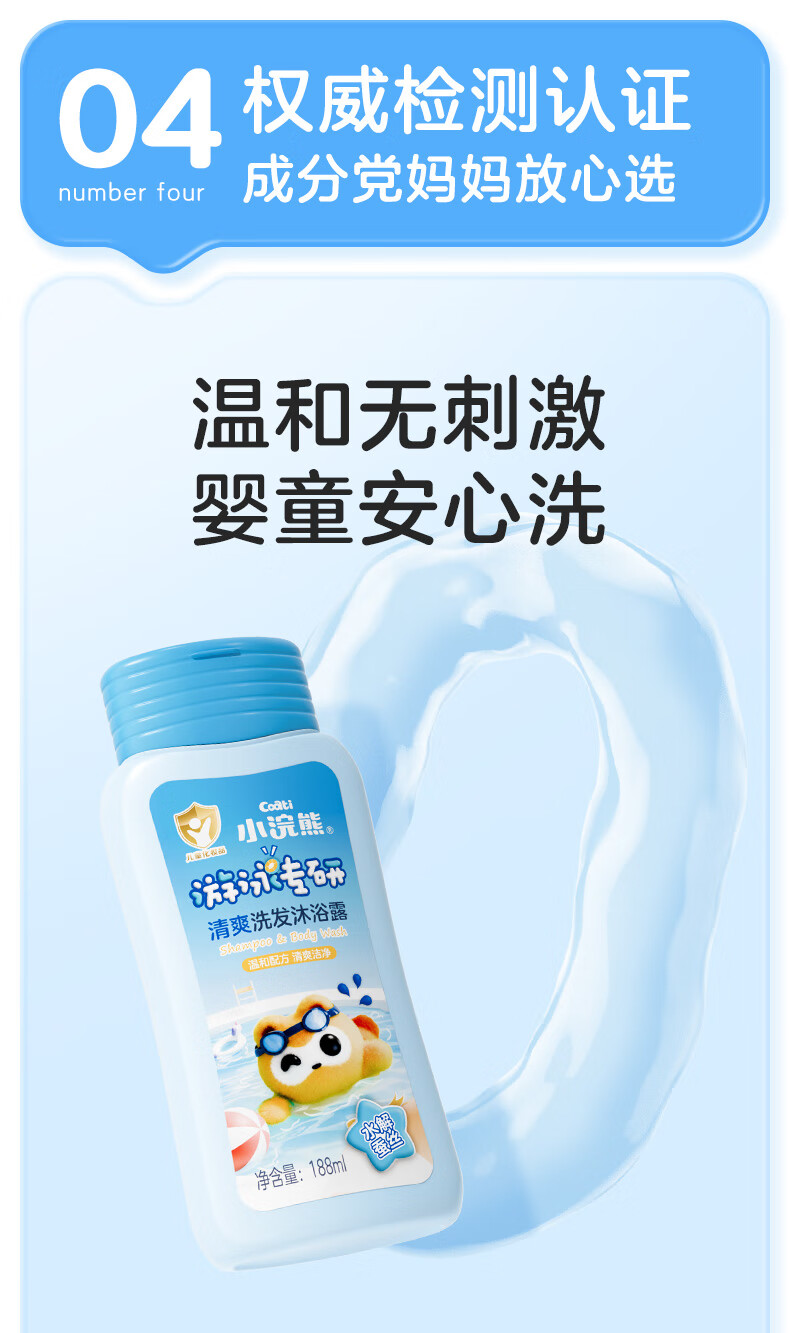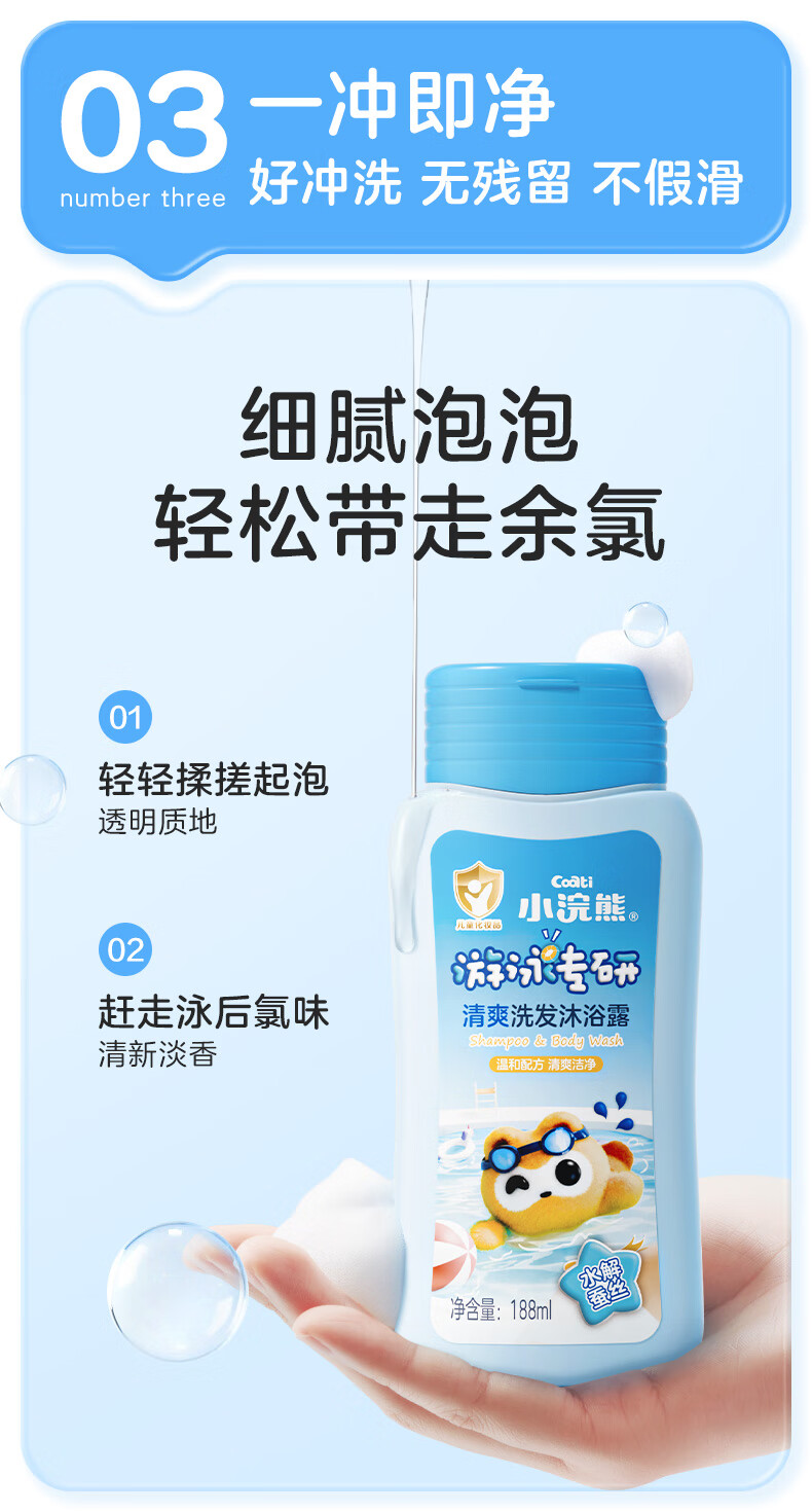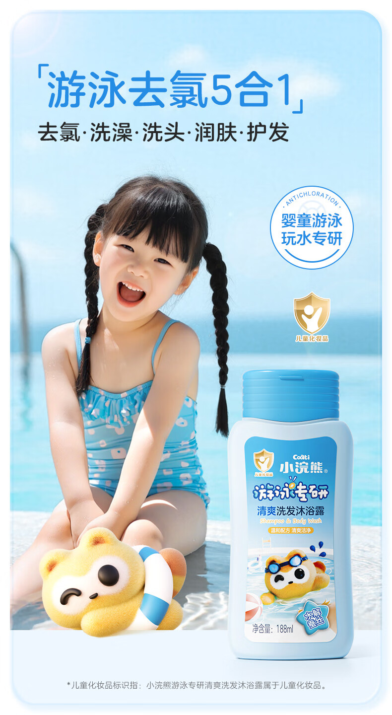 小浣熊儿童洗发水沐浴露去氯游泳专研去氯除盐洗发水男女童用 【夏季舒爽】清爽洗发沐浴露188ml*1瓶+冰沙霜50g