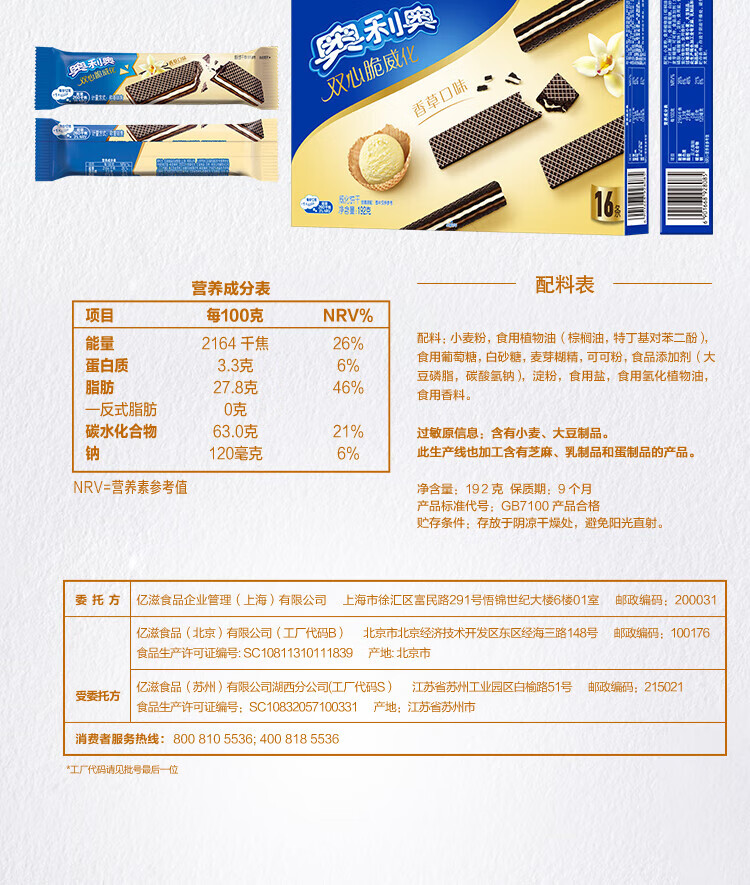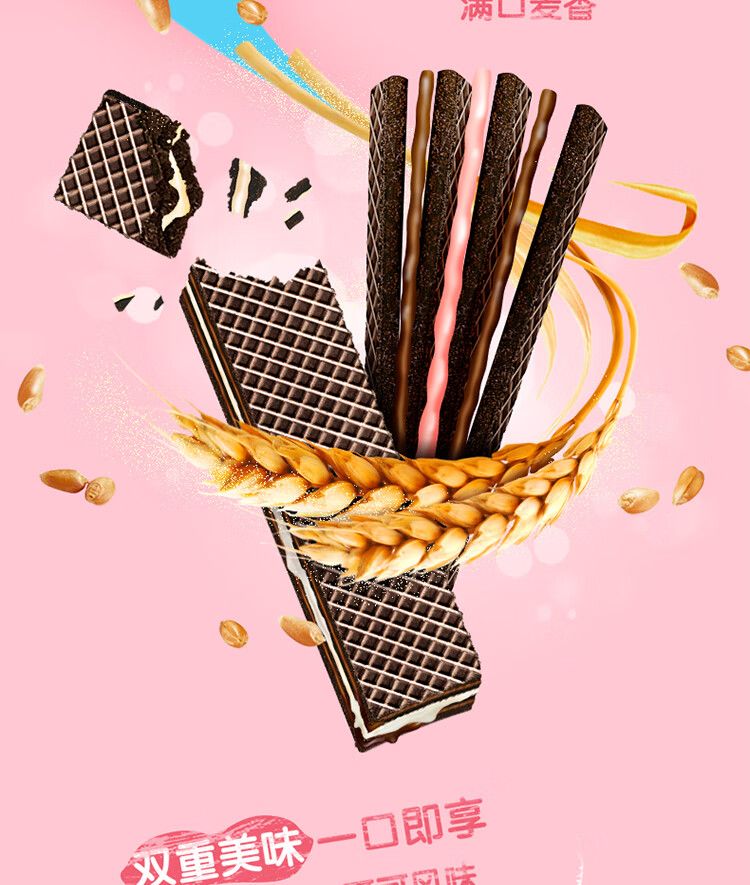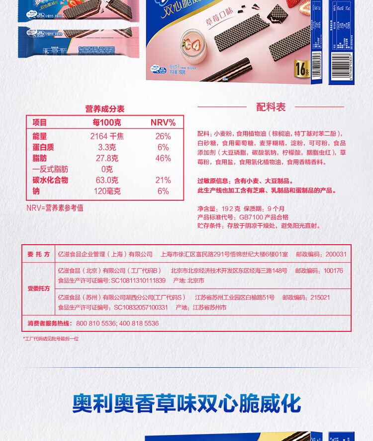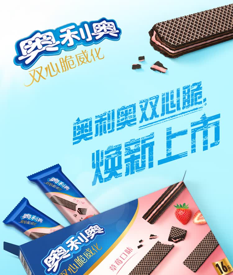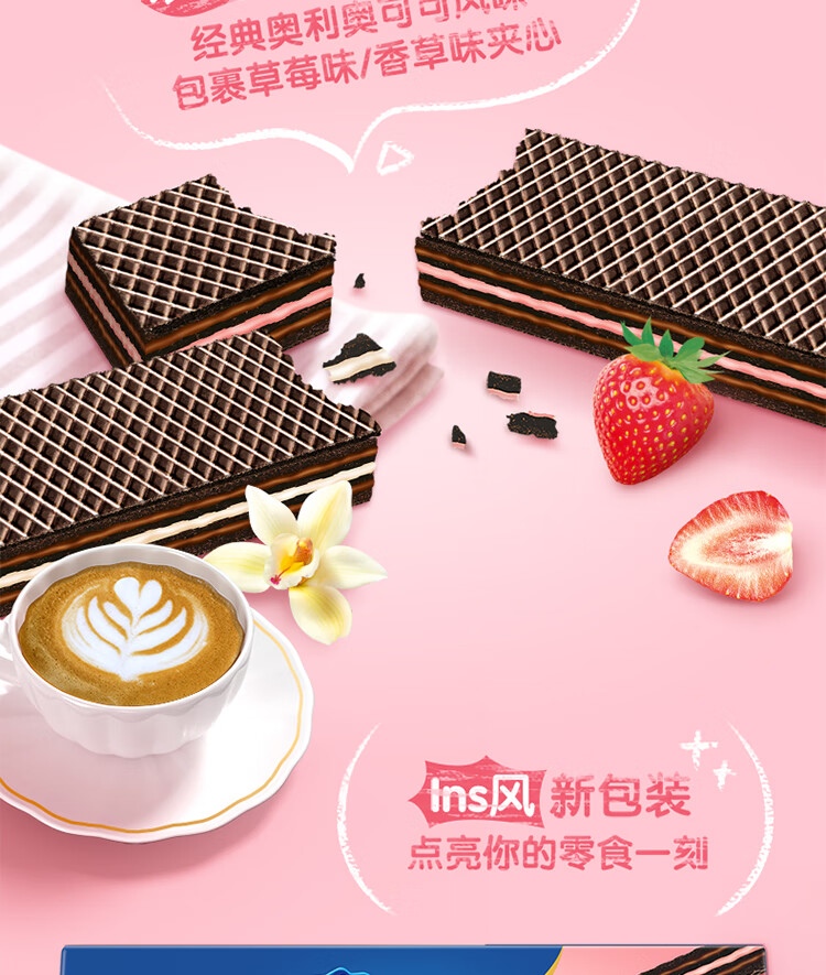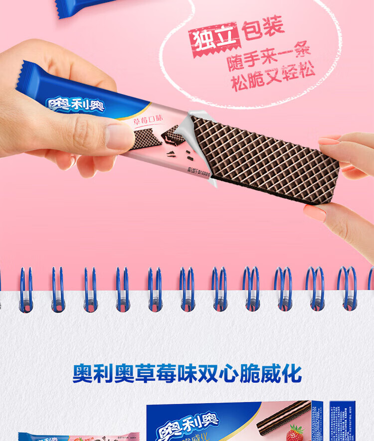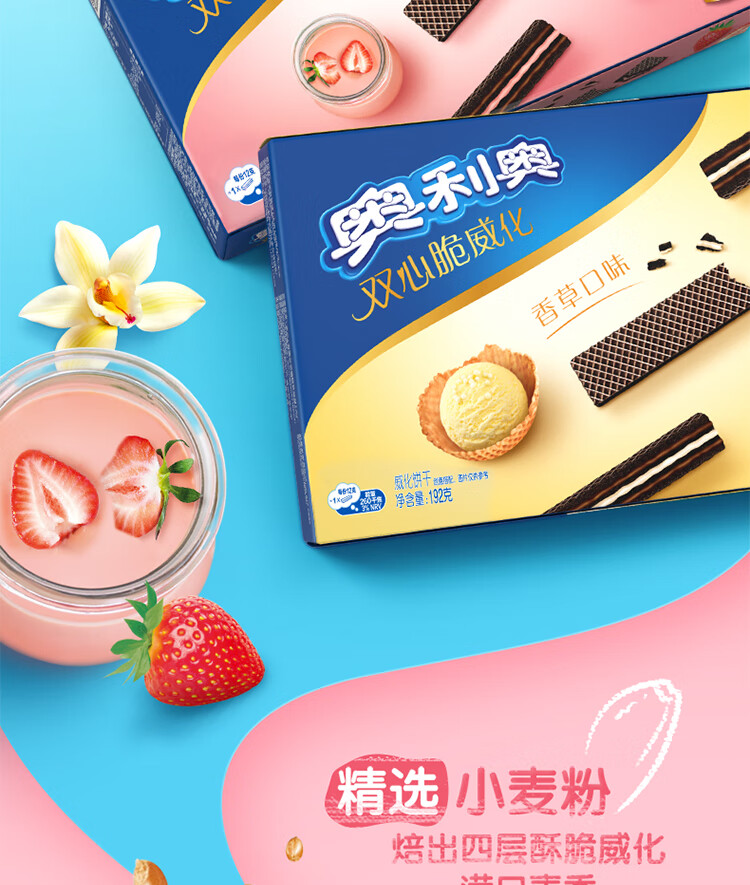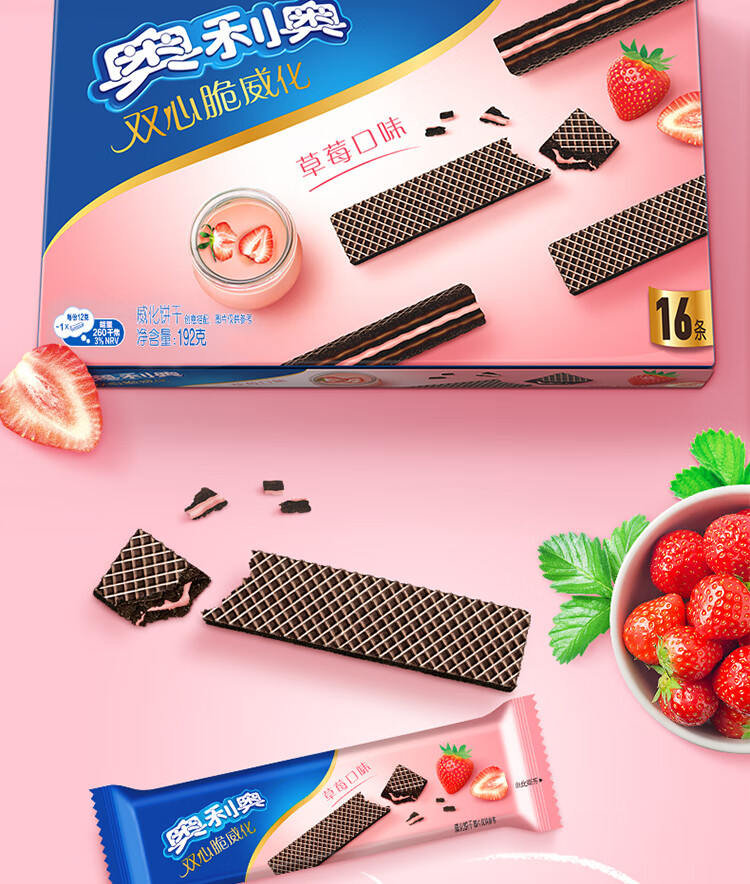 奥利奥(Oreo)双心脆威化饼干 草莓味 192g 办公室休闲零食早餐下午茶16条装