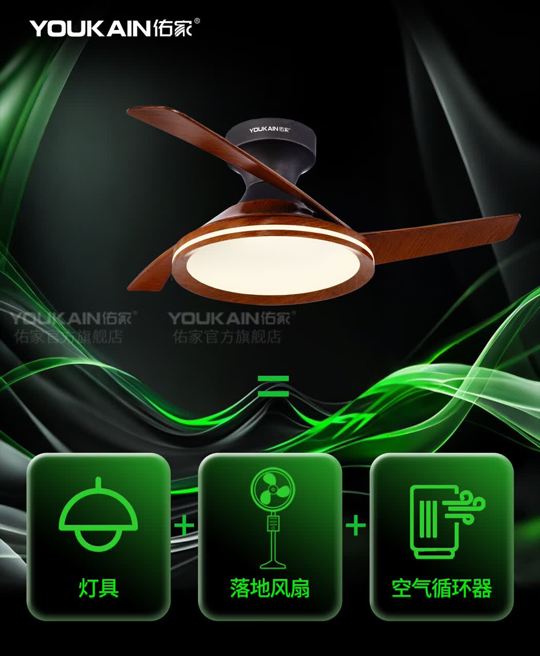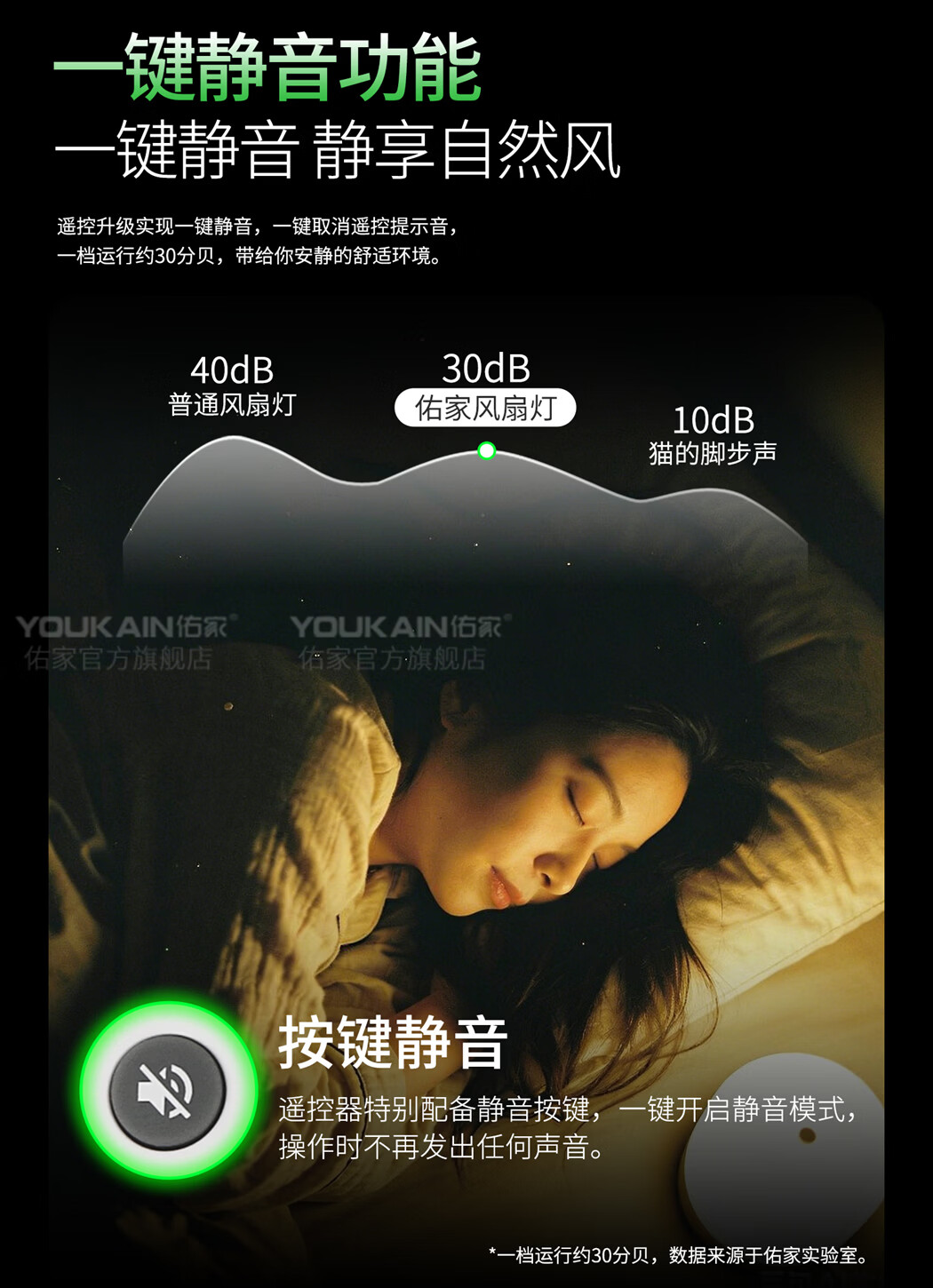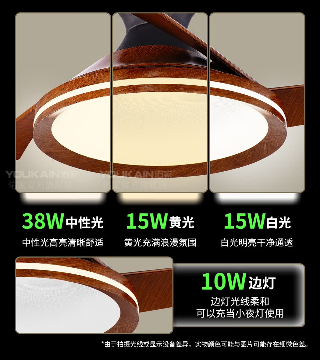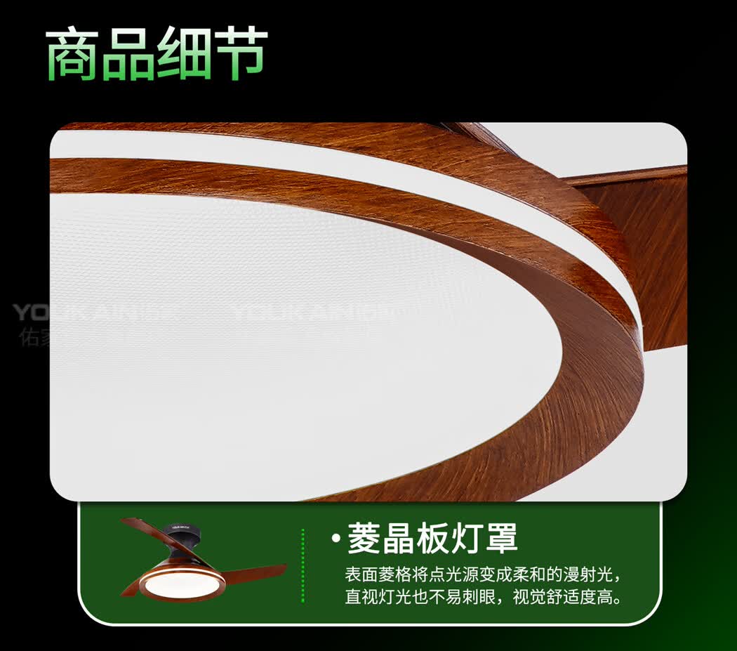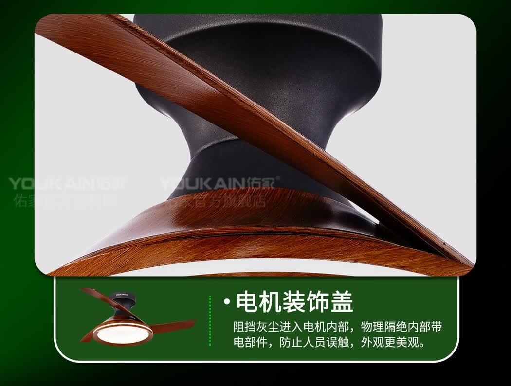 佑家(YOUKAIN)吸顶卧室静音风扇灯房间三防吊扇灯小餐厅变频遥控吊扇 32寸吸顶 铝制三防38w全光谱