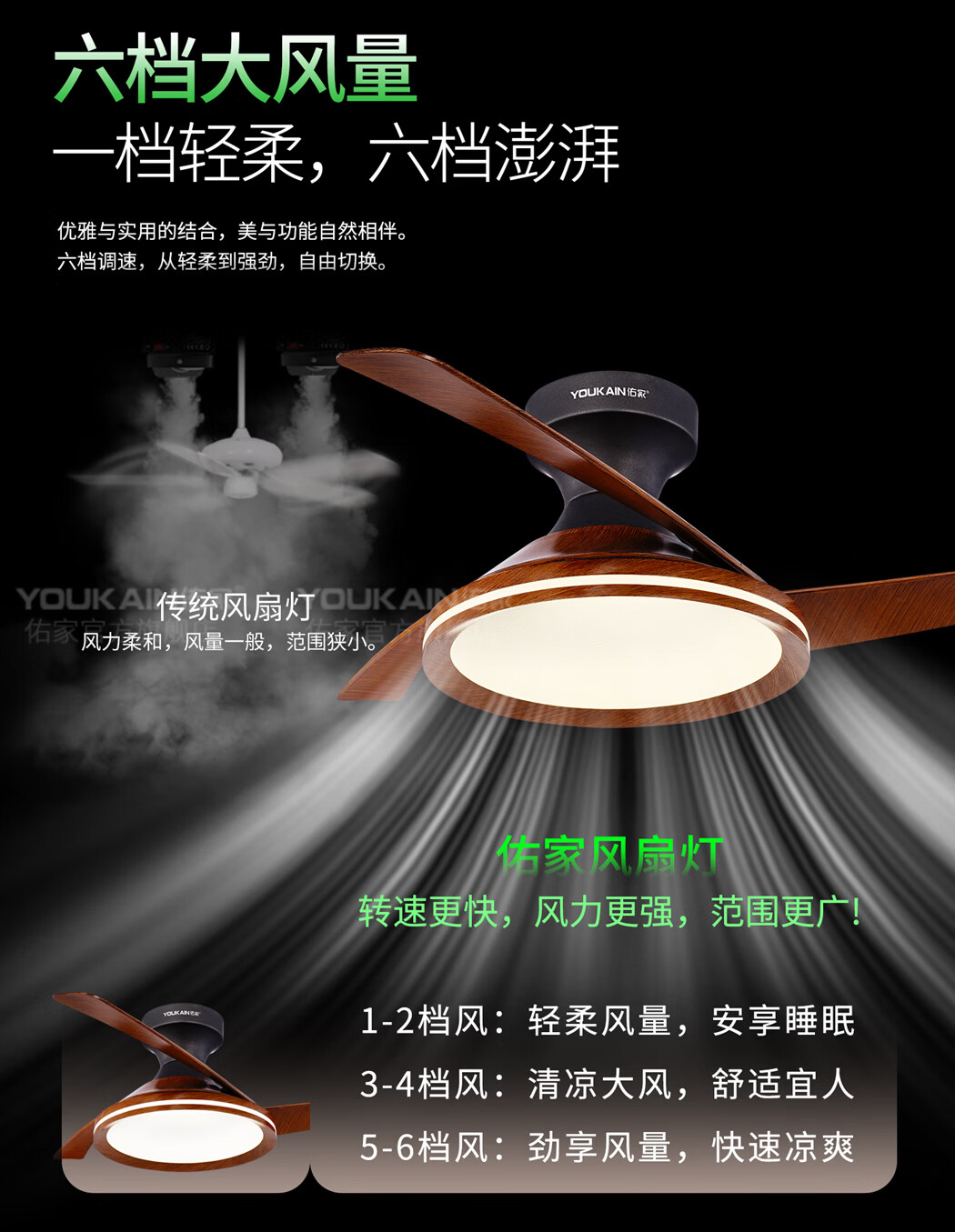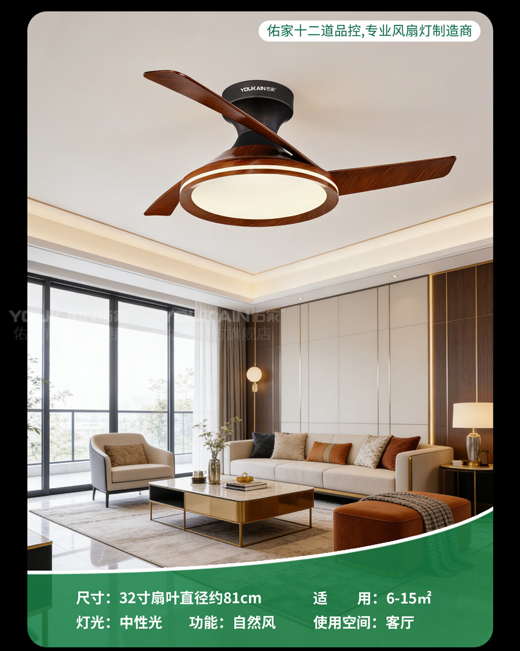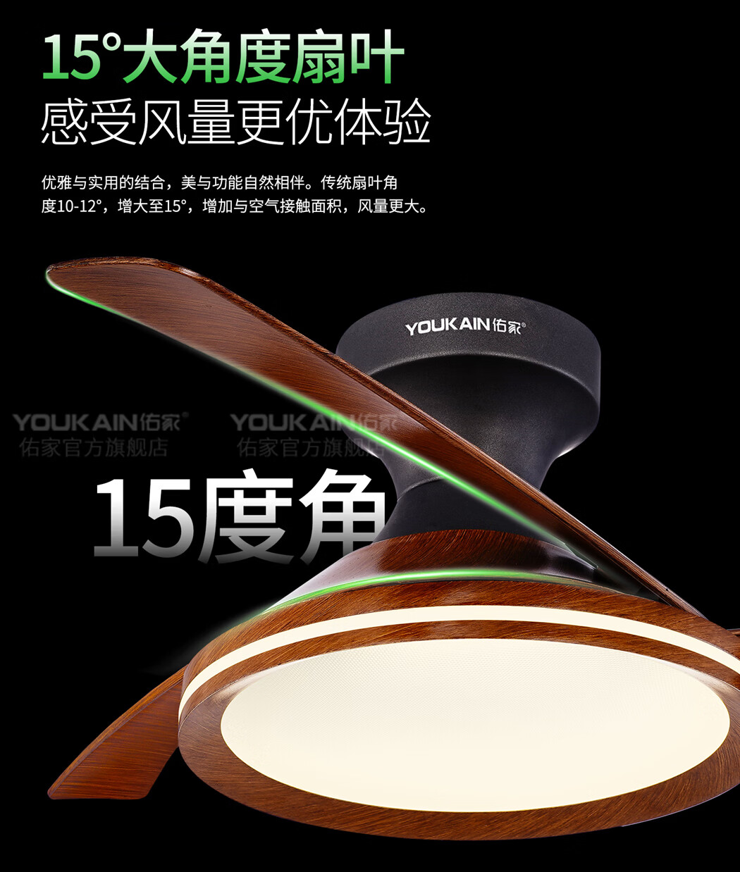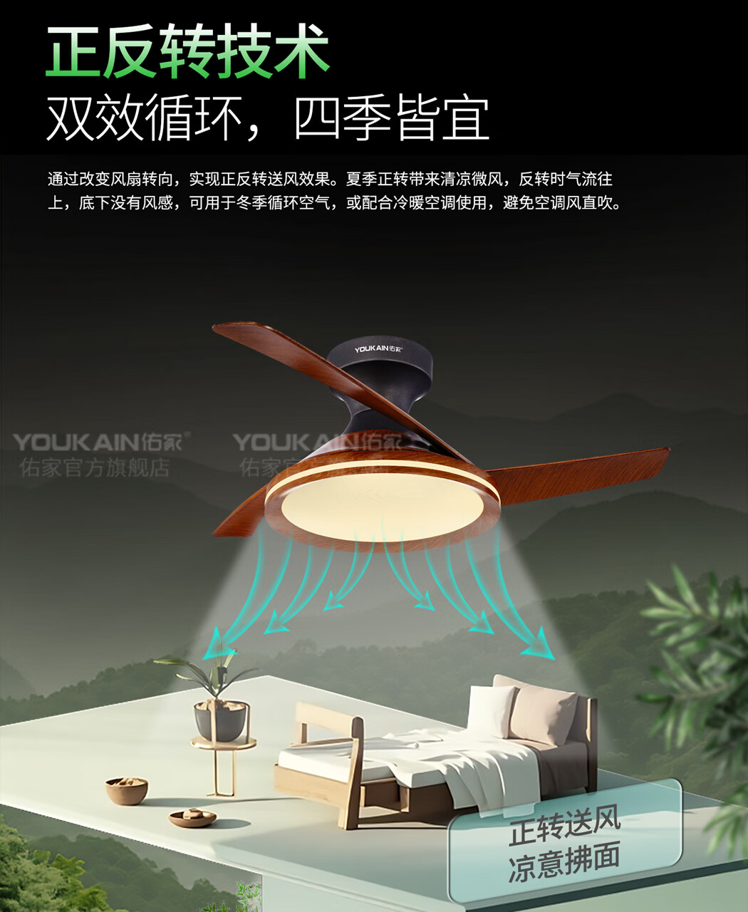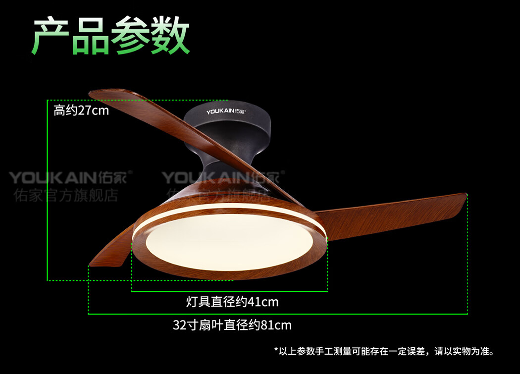 佑家(YOUKAIN)吸顶卧室静音风扇灯房间三防吊扇灯小餐厅变频遥控吊扇 32寸吸顶 铝制三防38w全光谱