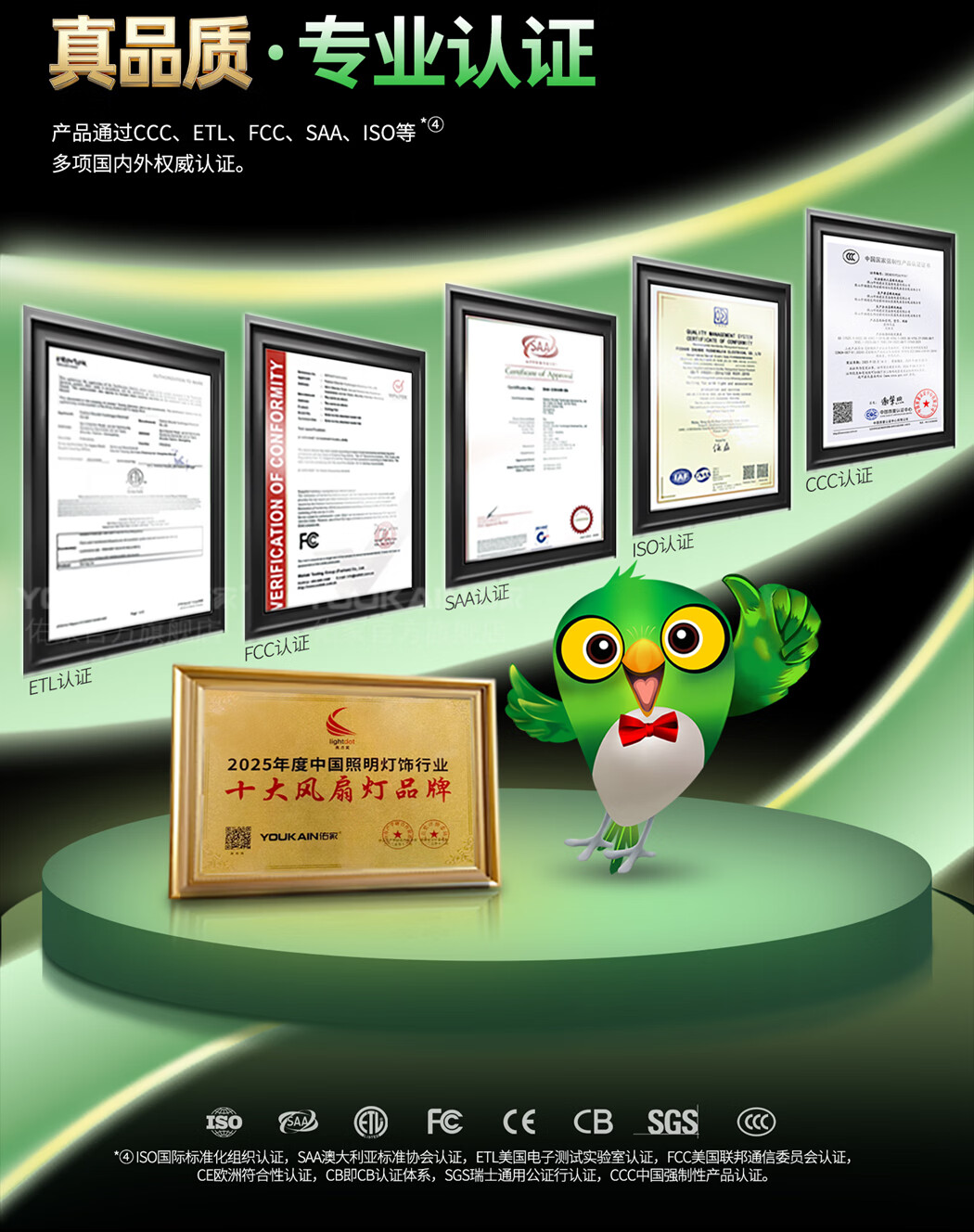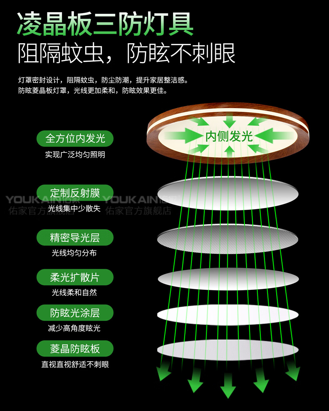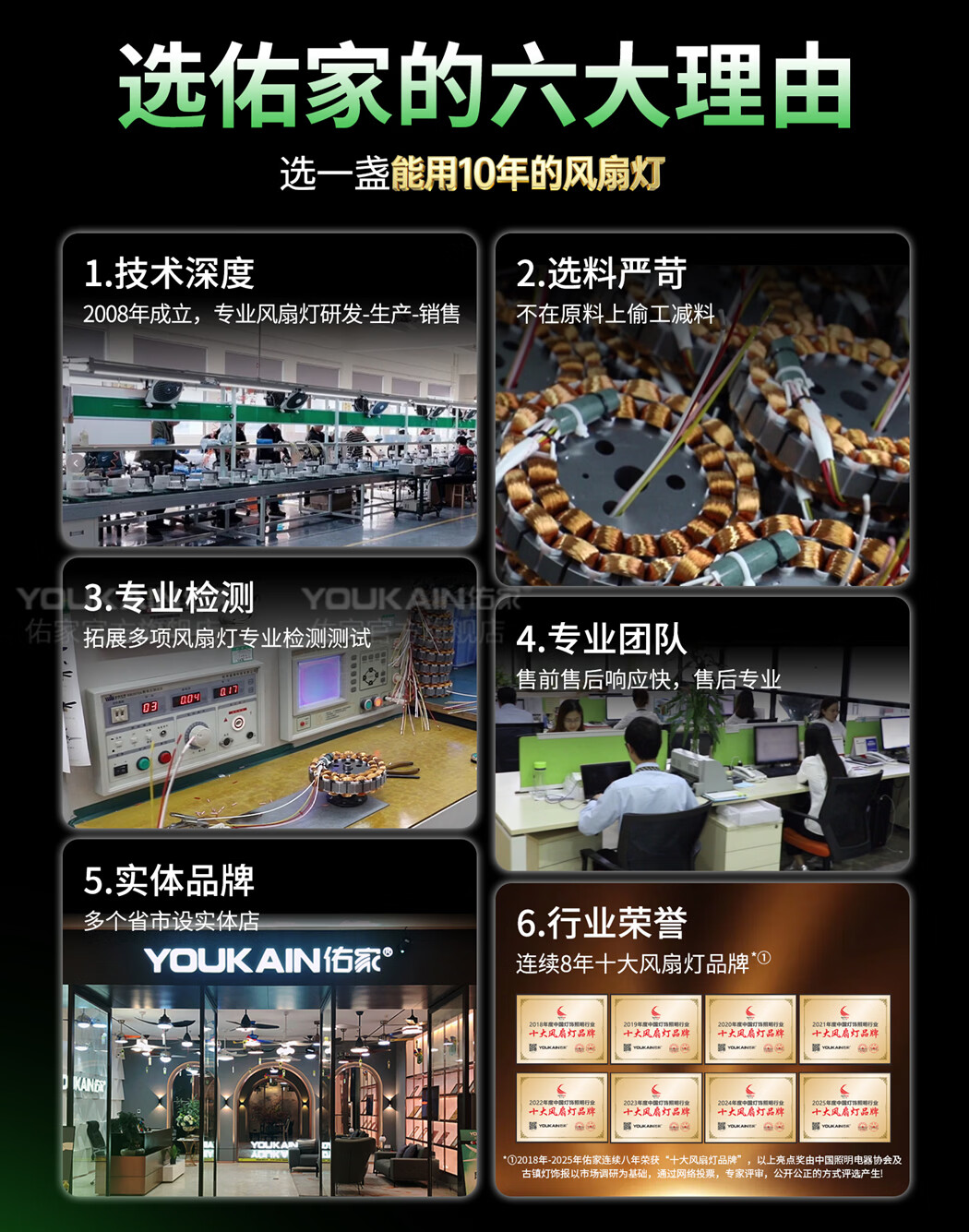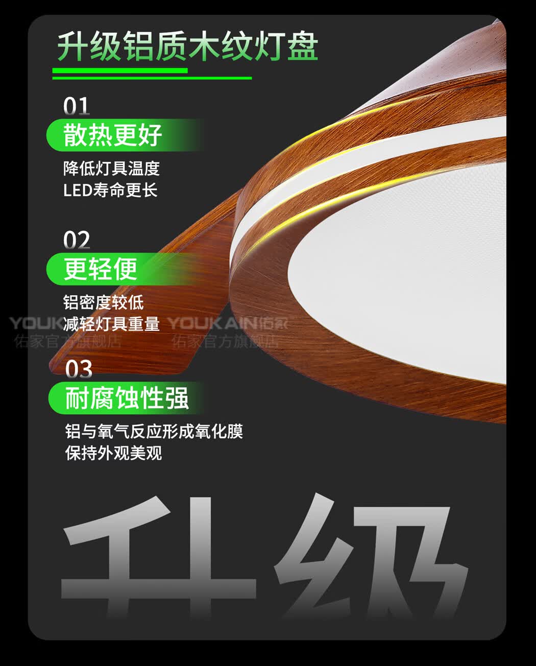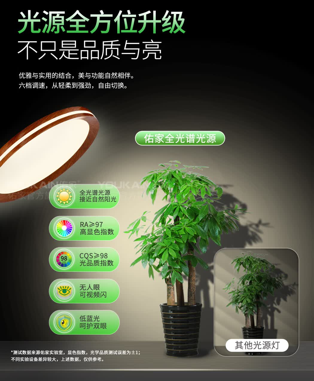 佑家(YOUKAIN)吸顶卧室静音风扇灯房间三防吊扇灯小餐厅变频遥控吊扇 32寸吸顶 铝制三防38w全光谱