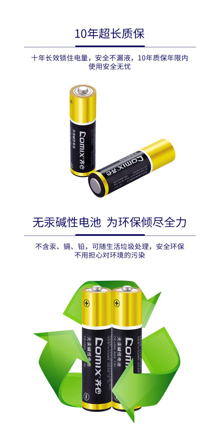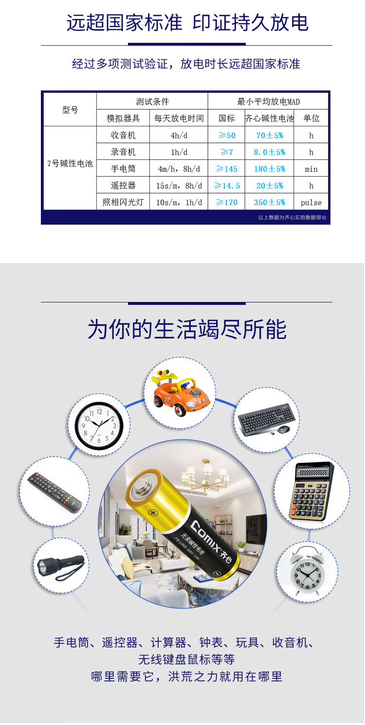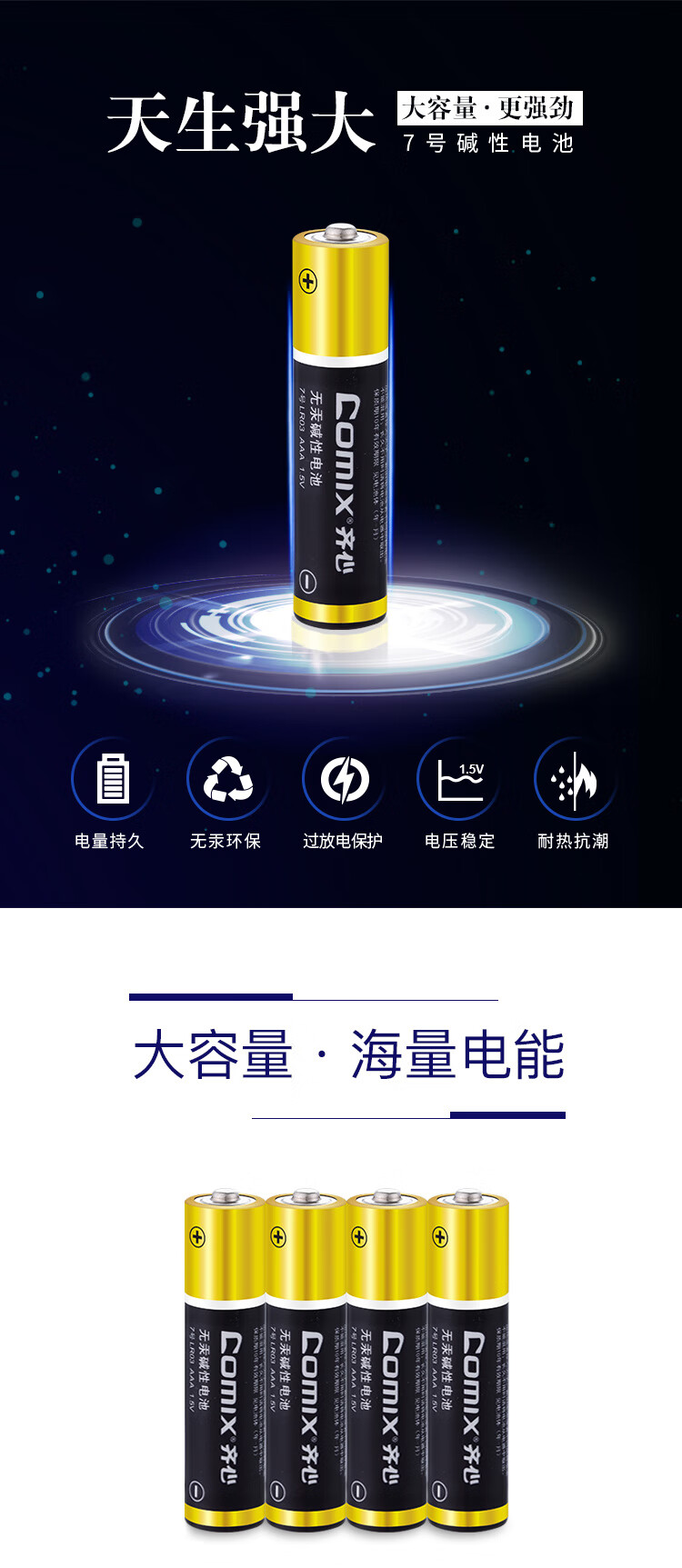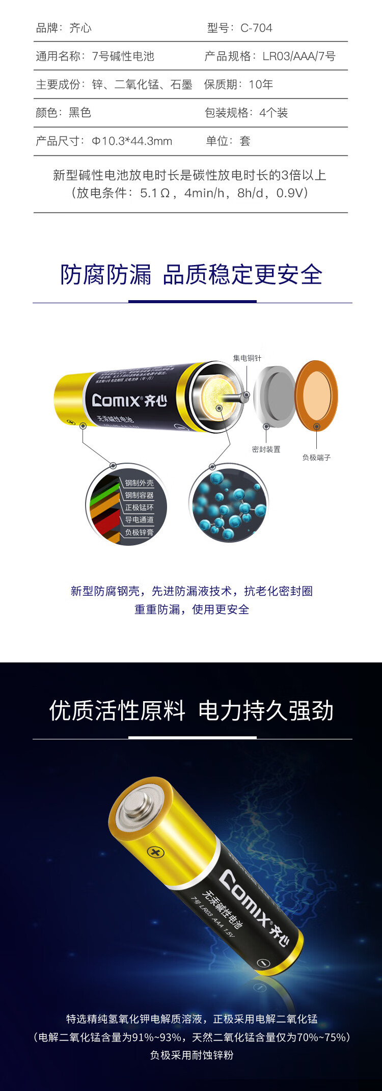 齐心(COMIX)7号碱性电池 适用于儿童玩具/血压计/血糖仪/挂钟/键盘/遥控器等(4粒装)办公文具 C-704