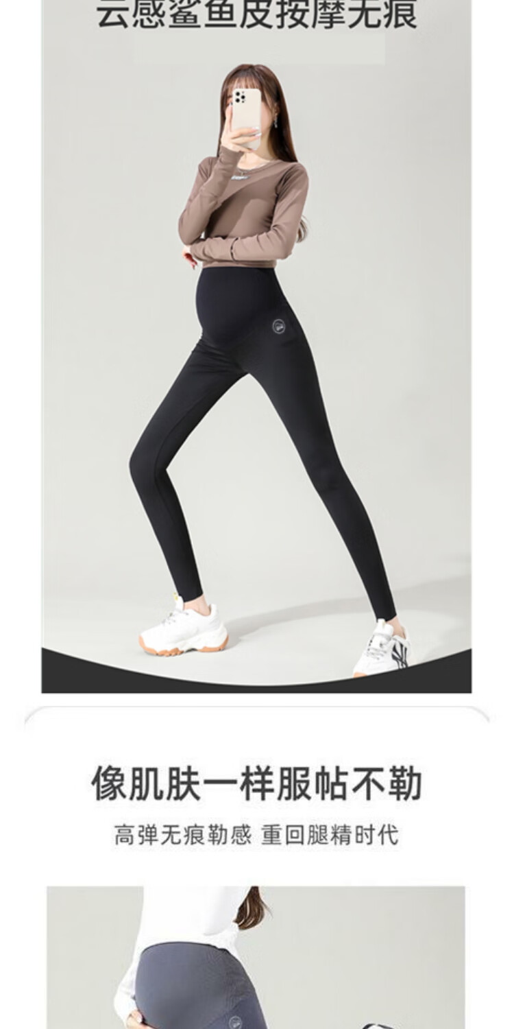 孕妇鲨鱼裤春秋冬款长裤新款外穿瑜伽打底裤休闲托腹裤子加绒加厚 黑色特厚绒款(500克左右) XL【120-145斤】