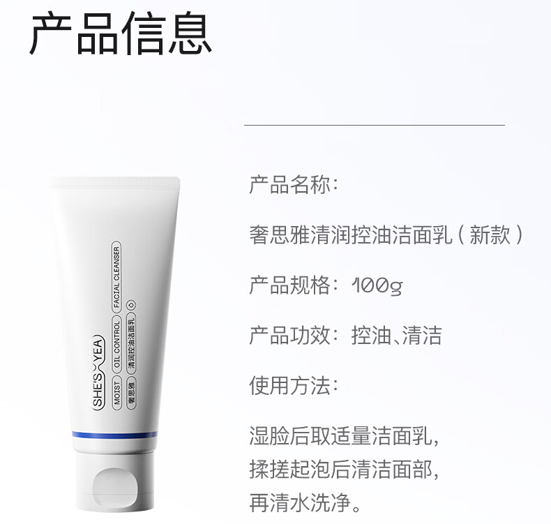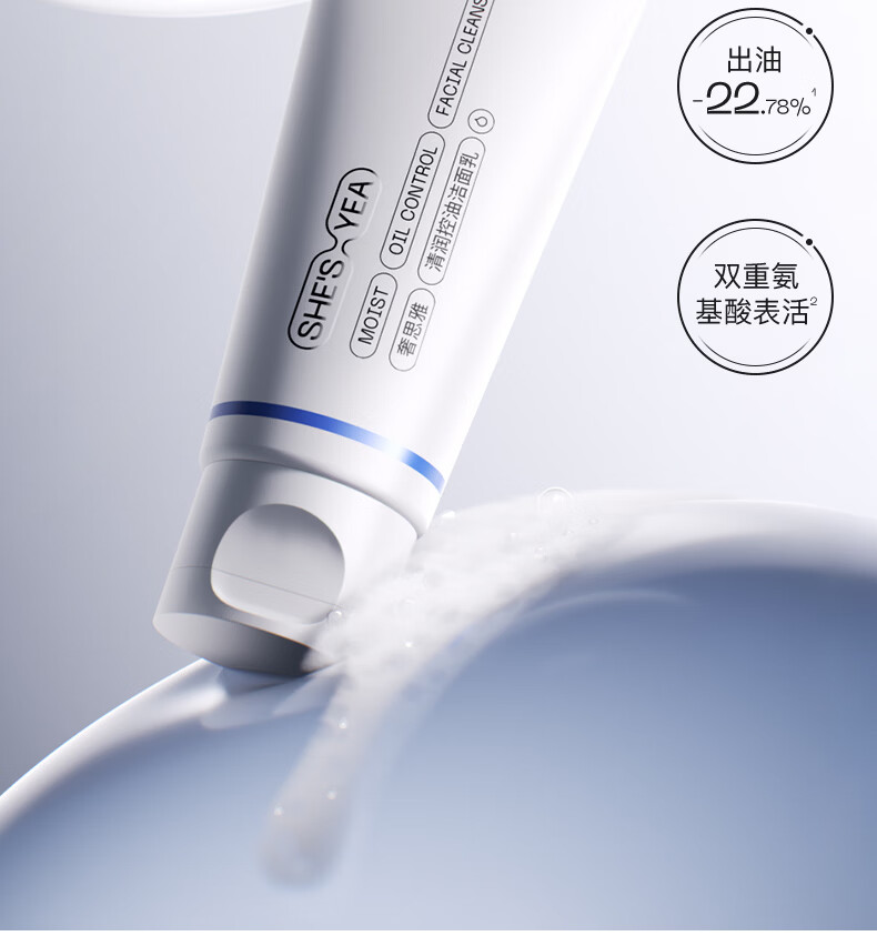 奢思雅(SHESYEA)氨基酸控油洁面乳深层清洁温和油敏肌洗面奶洁面乳2.0 2支
